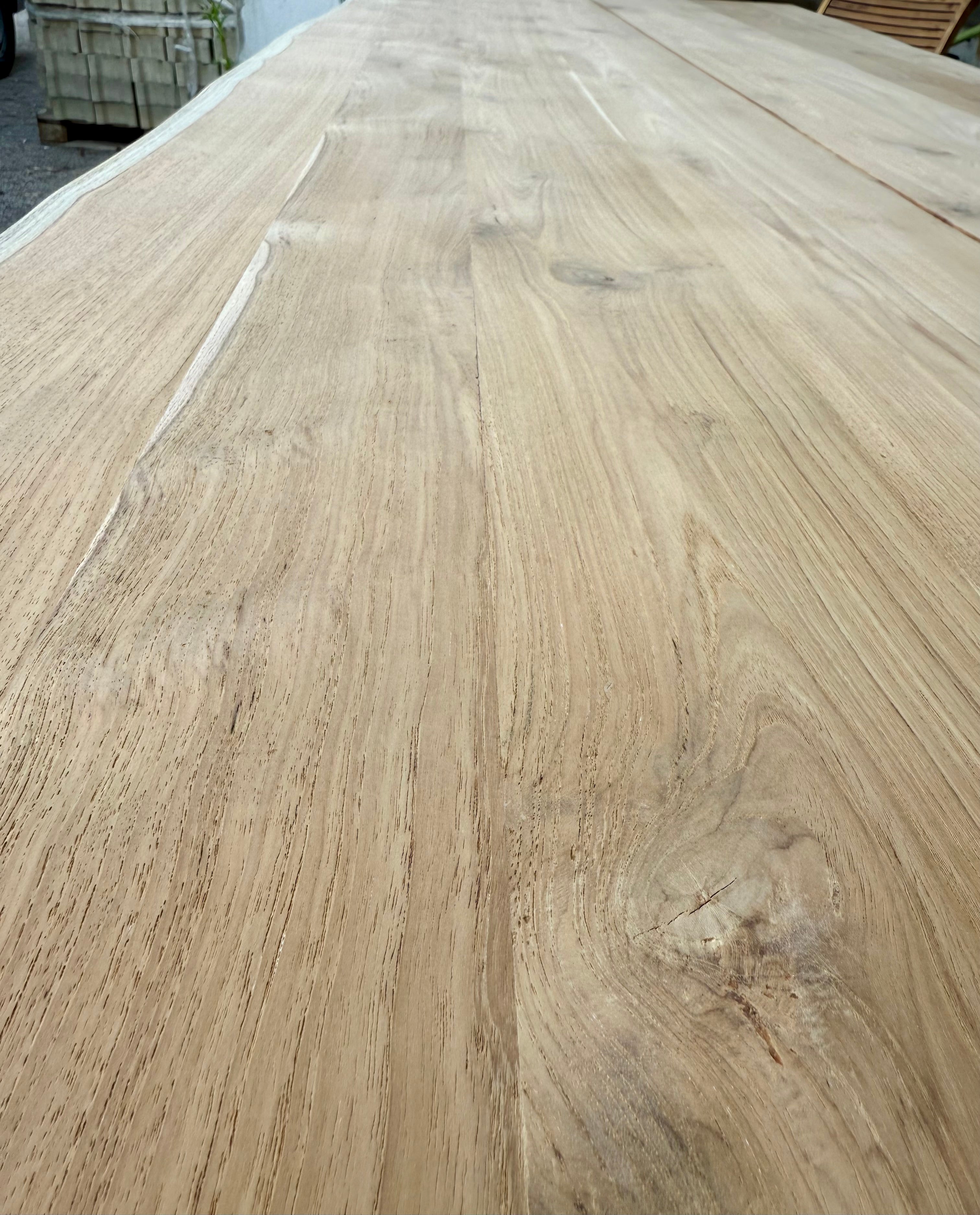 Alle Teakholzplatten haben eine natürliche Baumkante und sind vollmassiv.