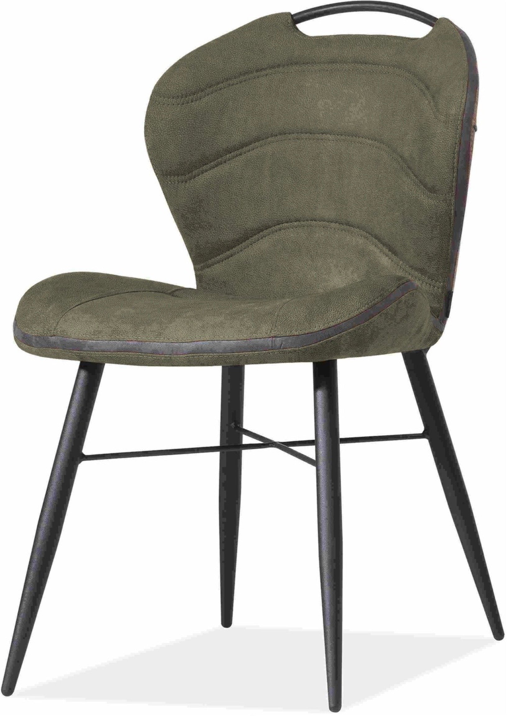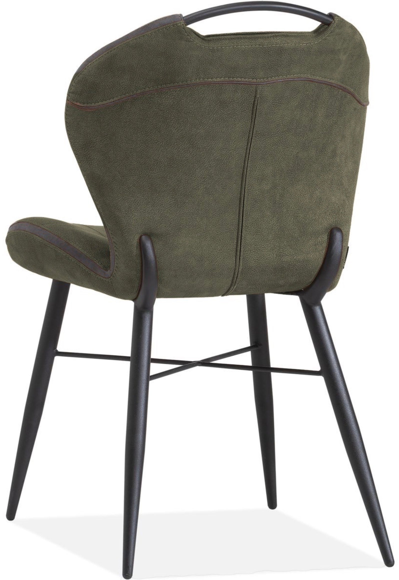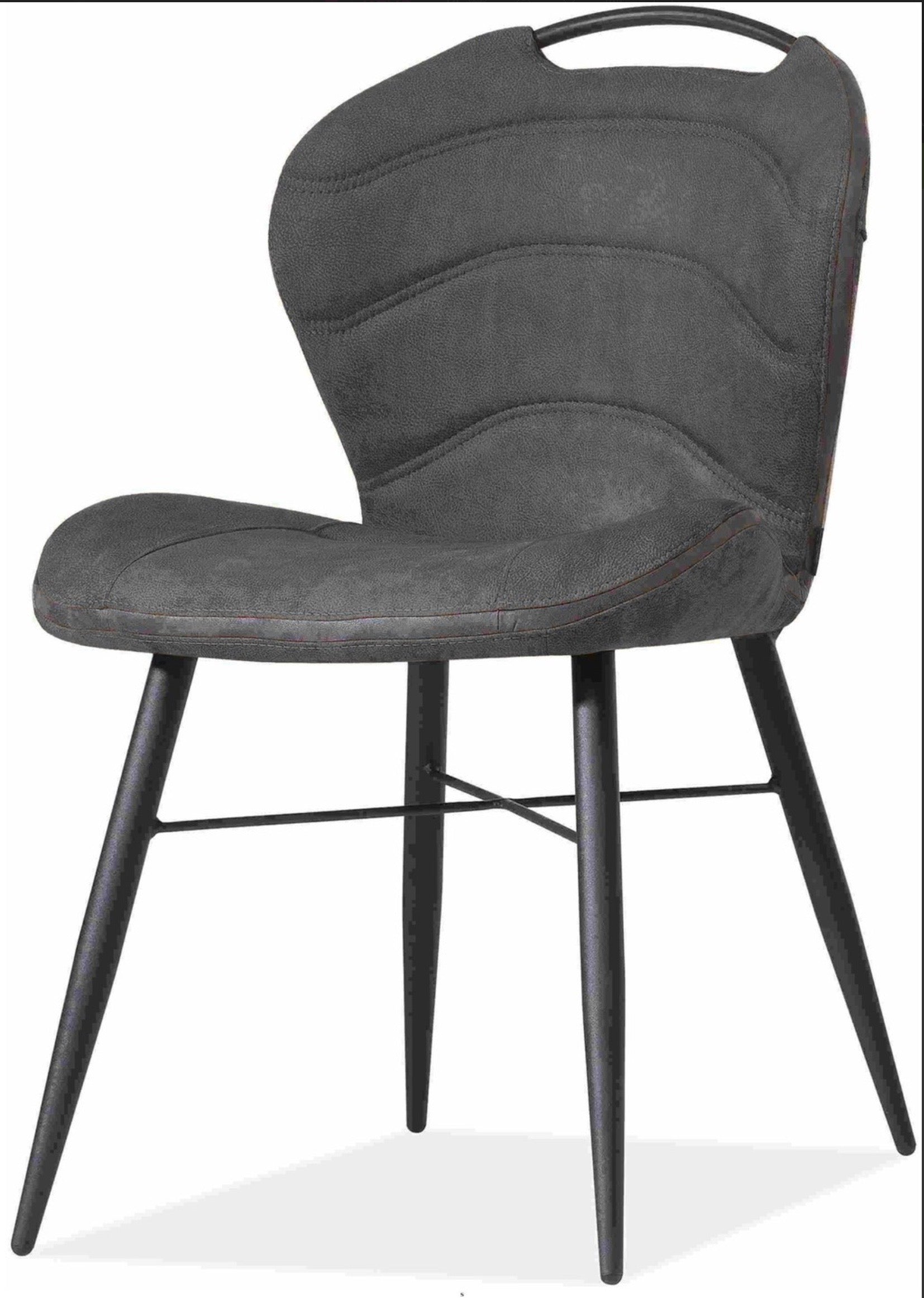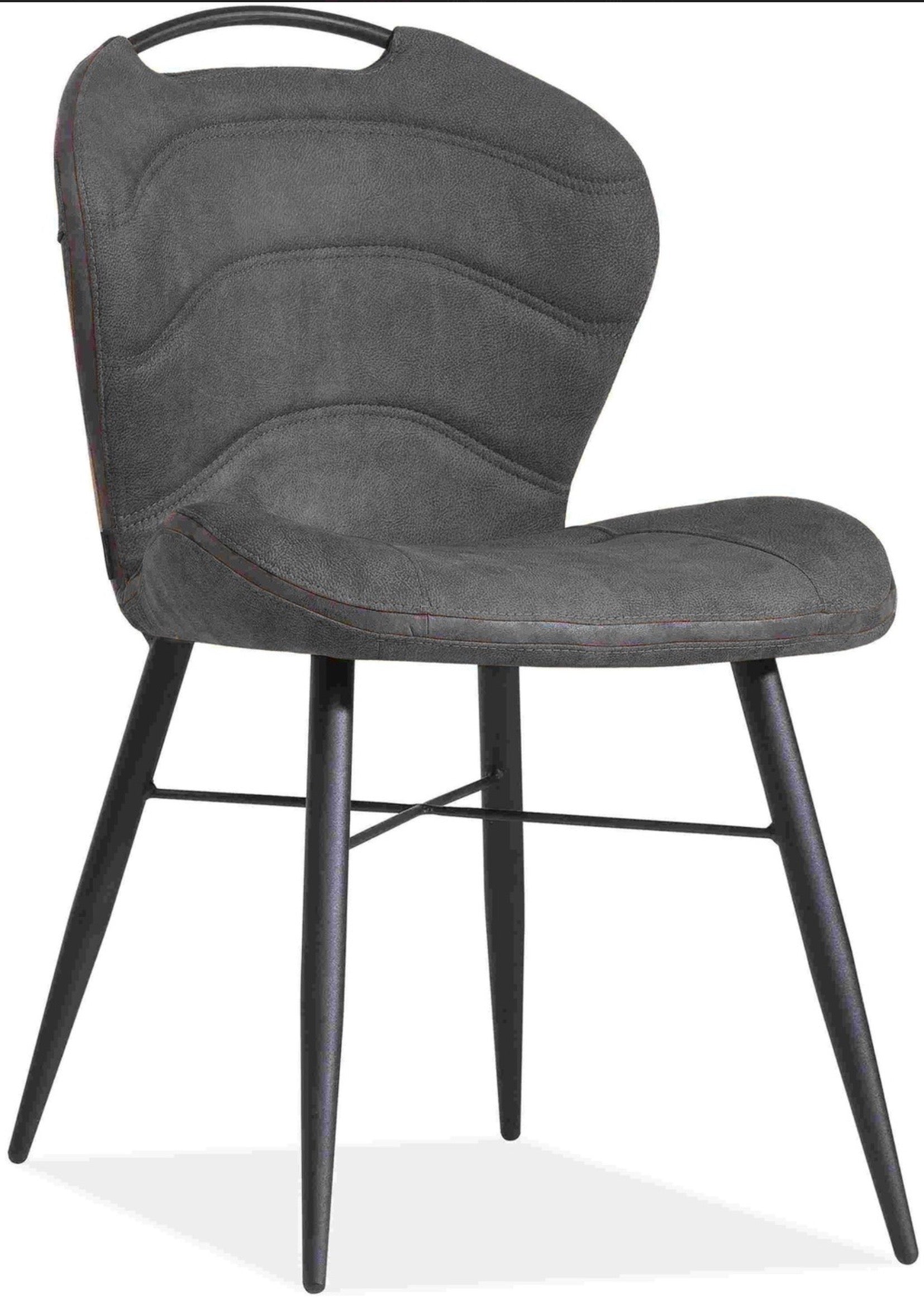 Zusätzlich hat der Küchen Stuhl einen schwarzen Rückenlehnengriff aus Metall. Ausserdem hat der gemütliche Stuhl eine Dekonaht, die von der Rückenlehne bis zur Sitzlehne geht.