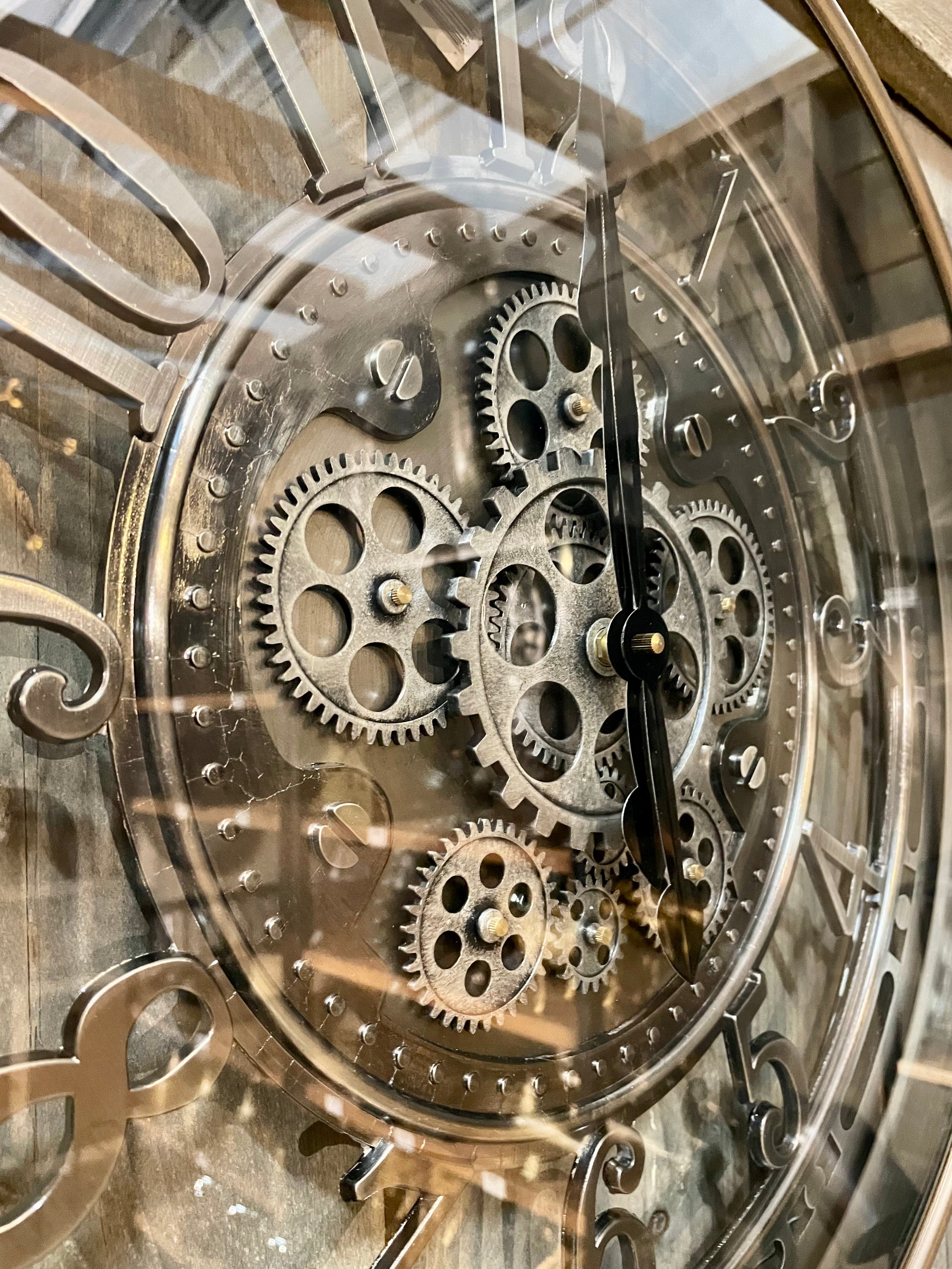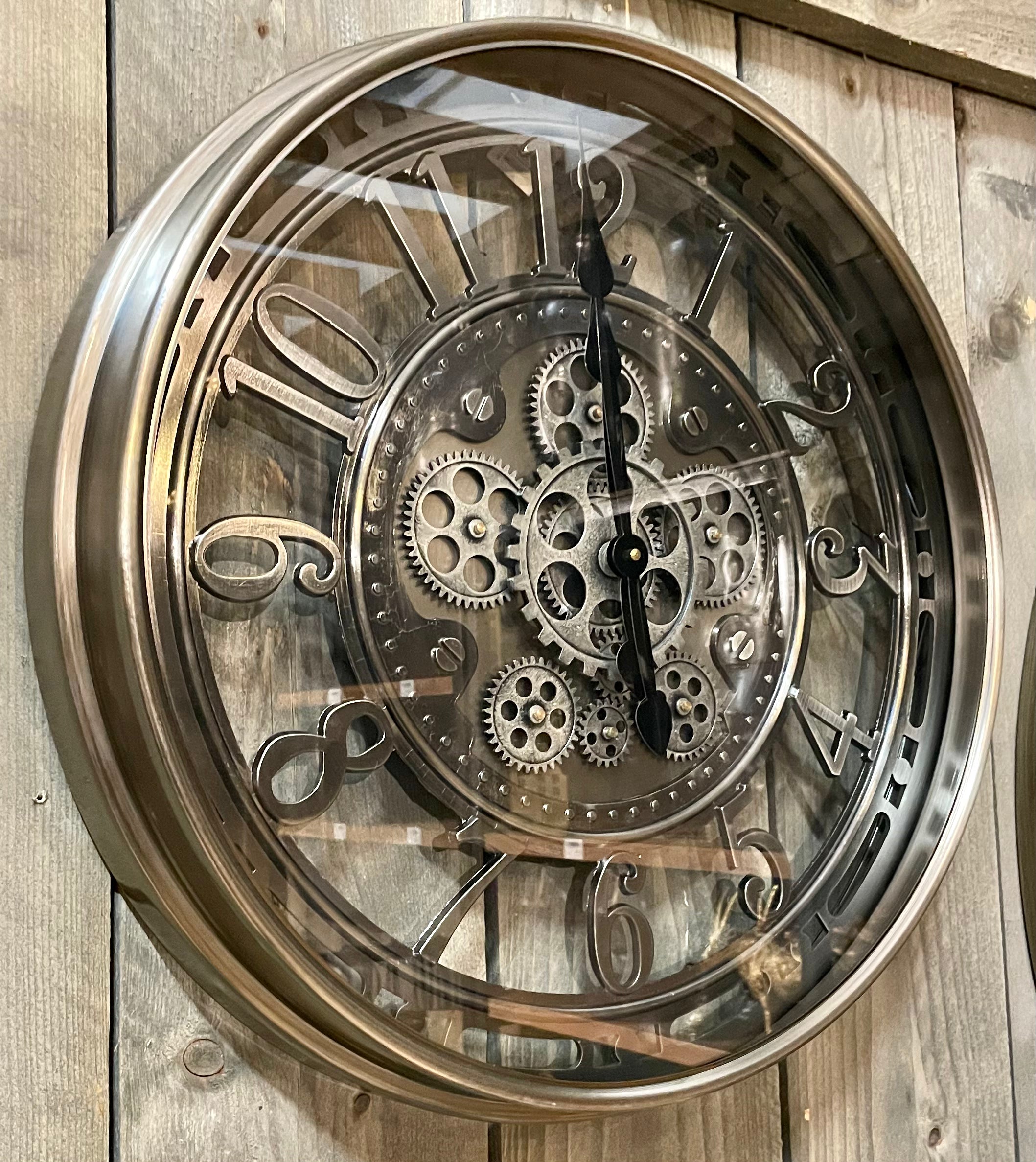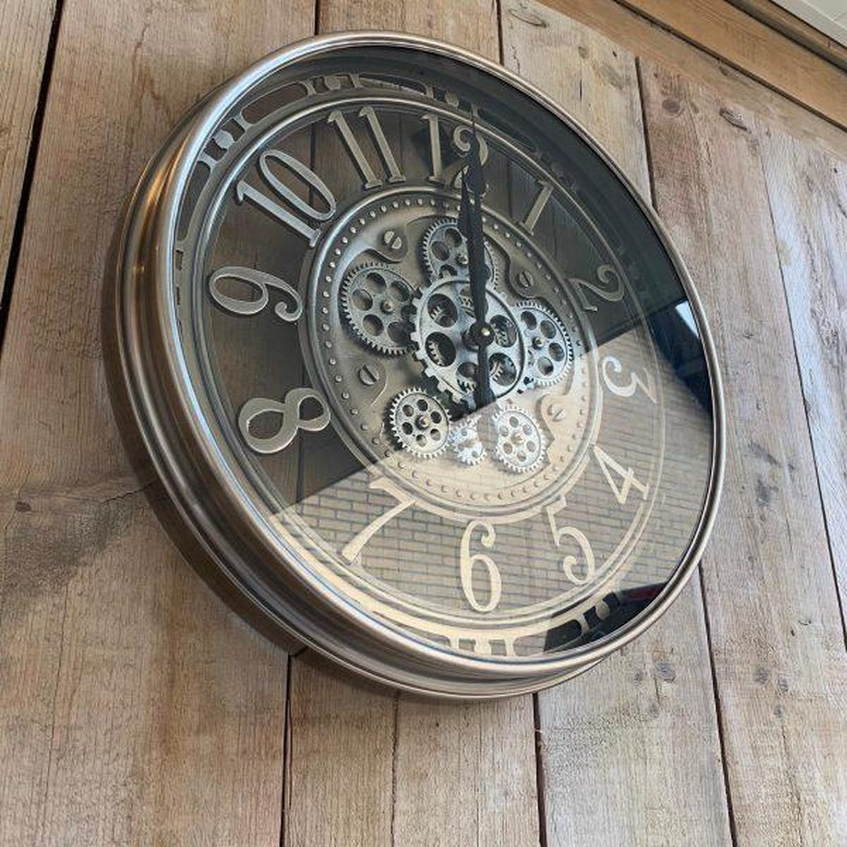 Wanduhr Zahnrad Berlin Zählwerk Animation silber grau 55 cm outdorrfähig
