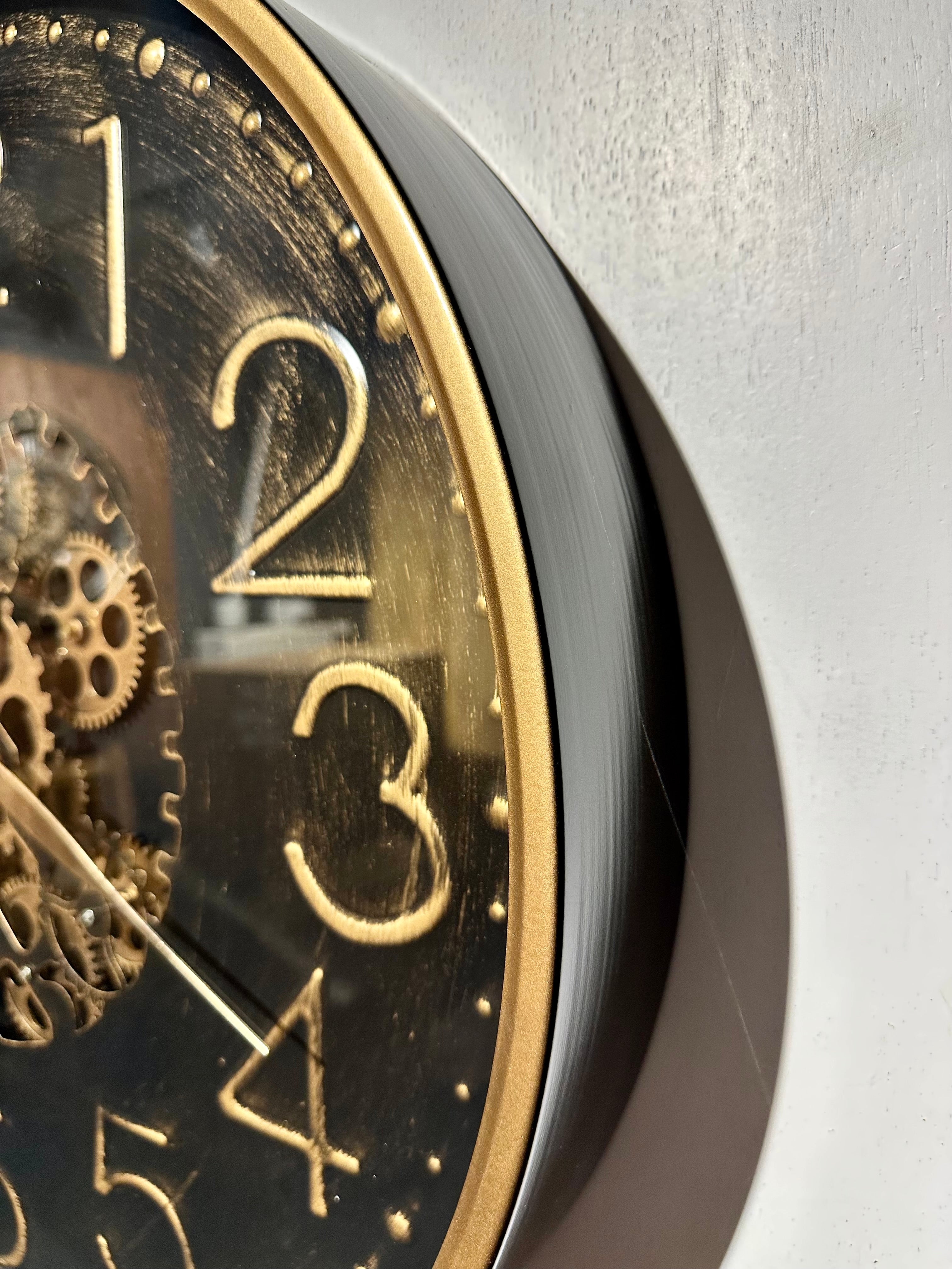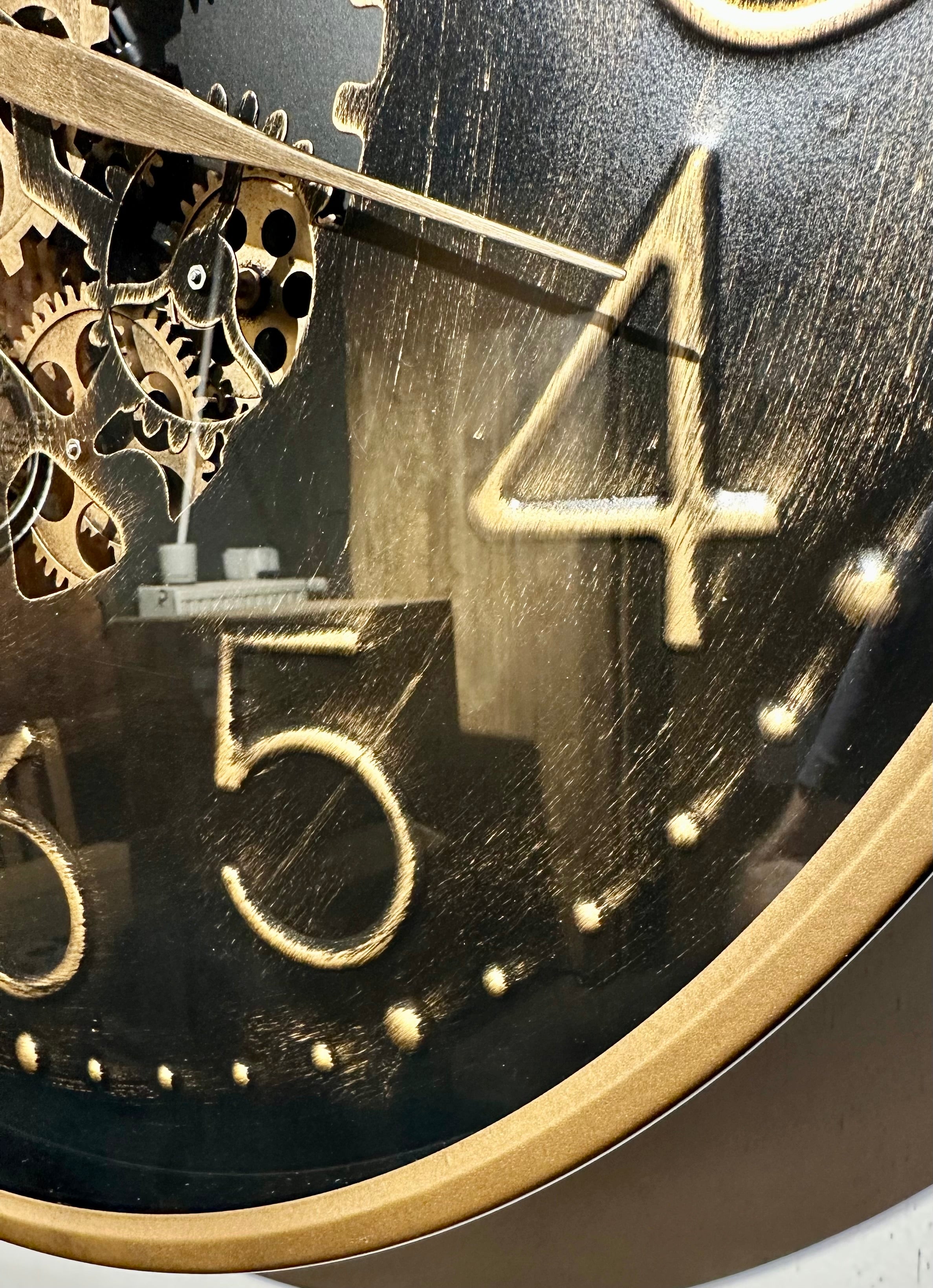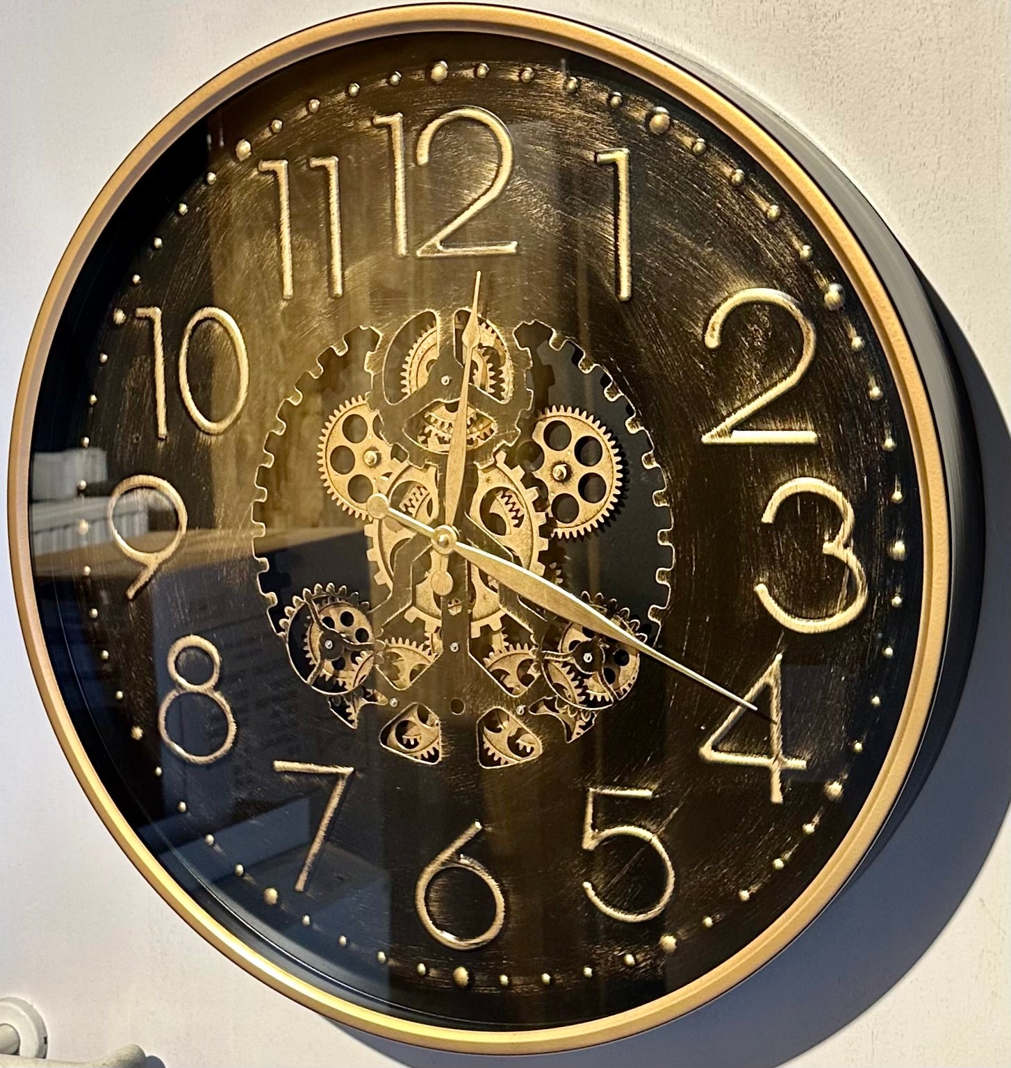 60 cm Genf Vintage Wanduhr mit Zahnrädern altgold schwarz