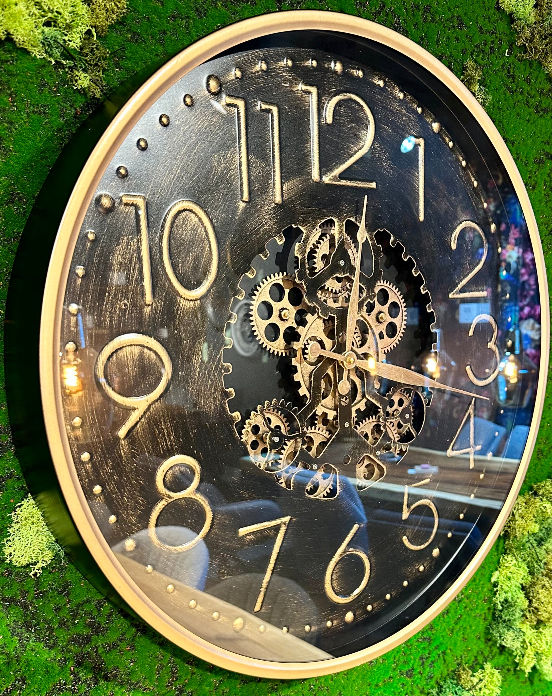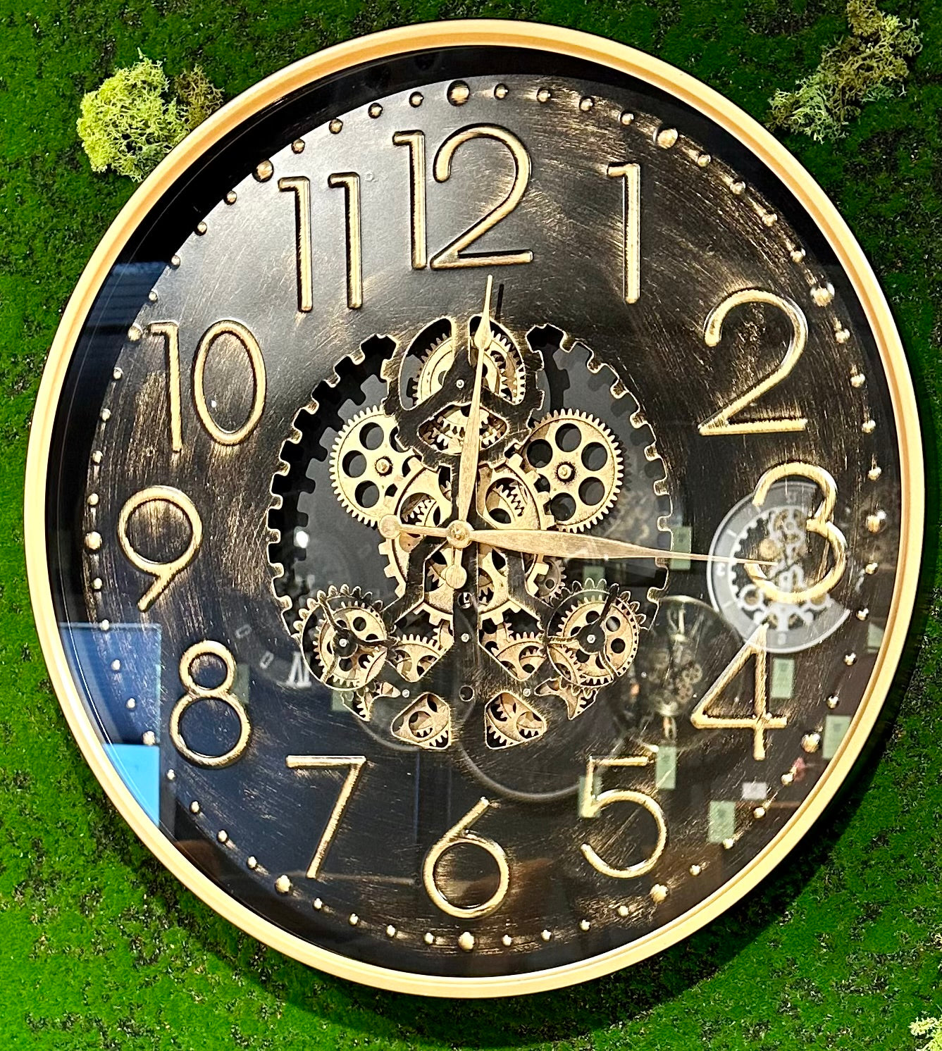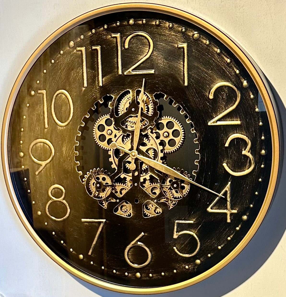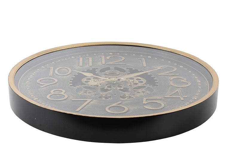60 cm Genf Vintage Wanduhr mit Zahnrädern altgold schwarz
