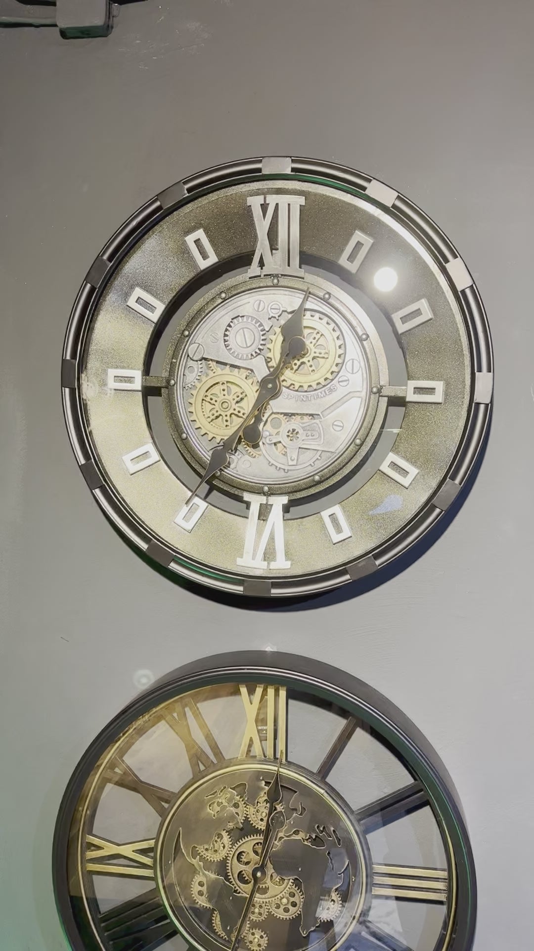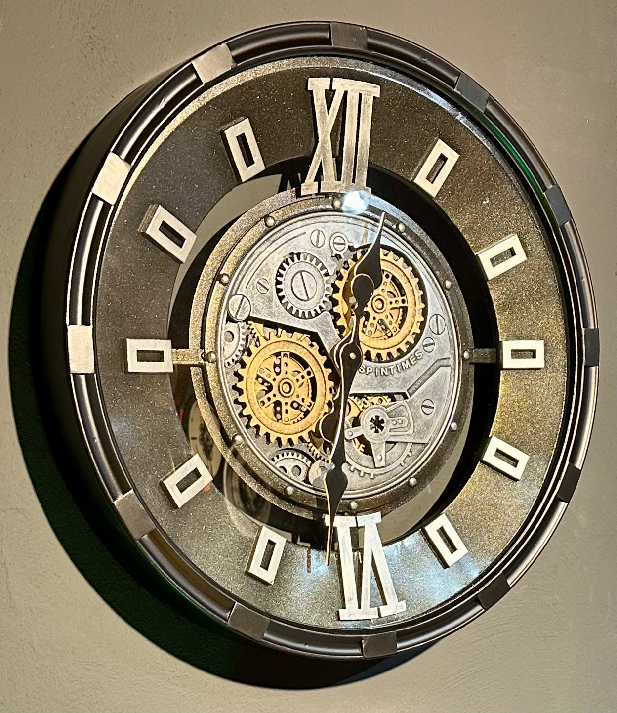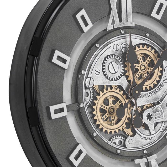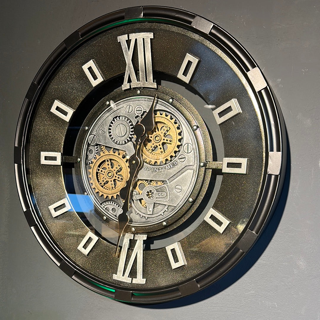60 cm Industrial Belfast Wanduhr mit Zahnrad Silber Schwarz gold