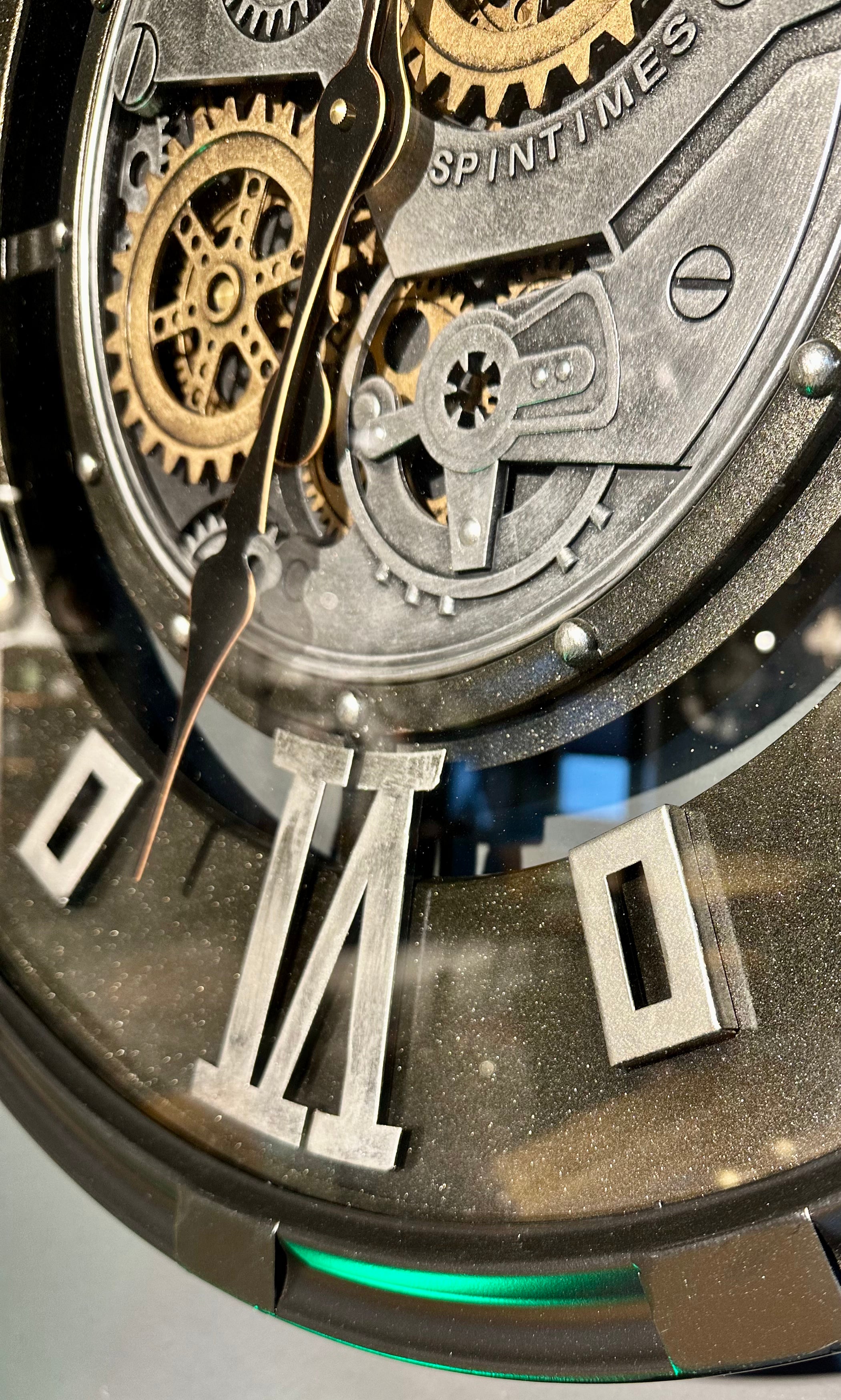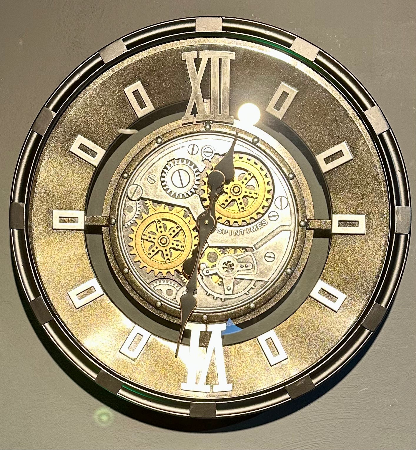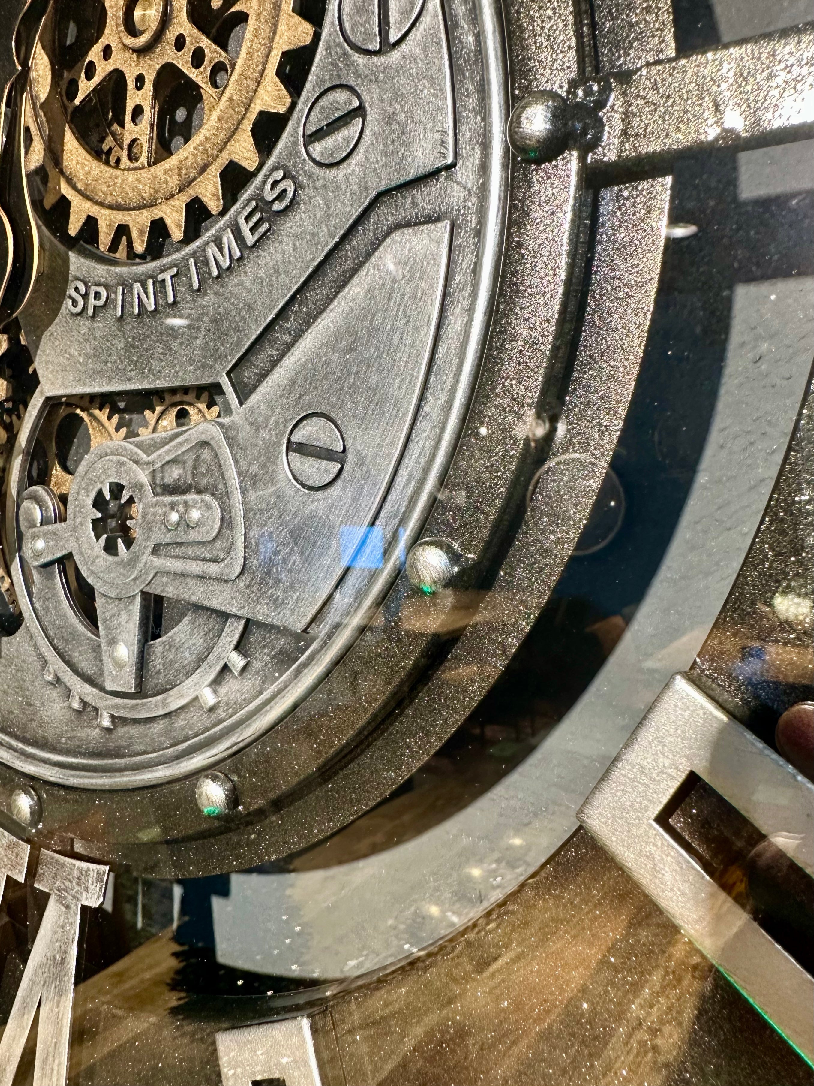 Die Annimationsuhr mit Zahnrädern hat eine Glasscheibe und ein Zifferblatt mit zwei römischen Zahlen - ansonsten sind Rechtecke angebracht. Sie ist sehr schön und passt in eine Umgebung, die im Industrielook gestaltet ist, jedoch passt Sie bedingt auch in ein modernes Zimmer/ Wohnung oder Haus.
