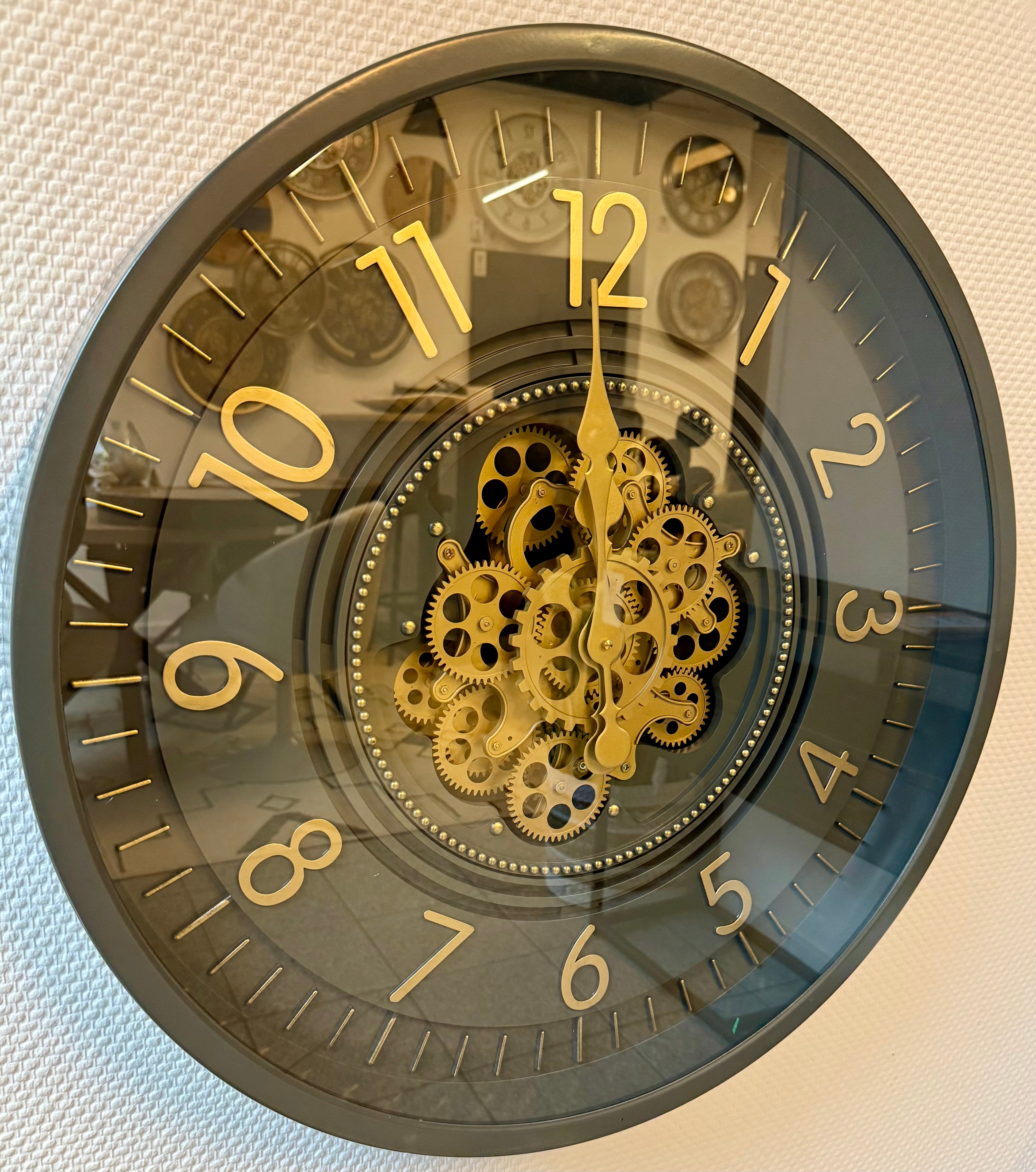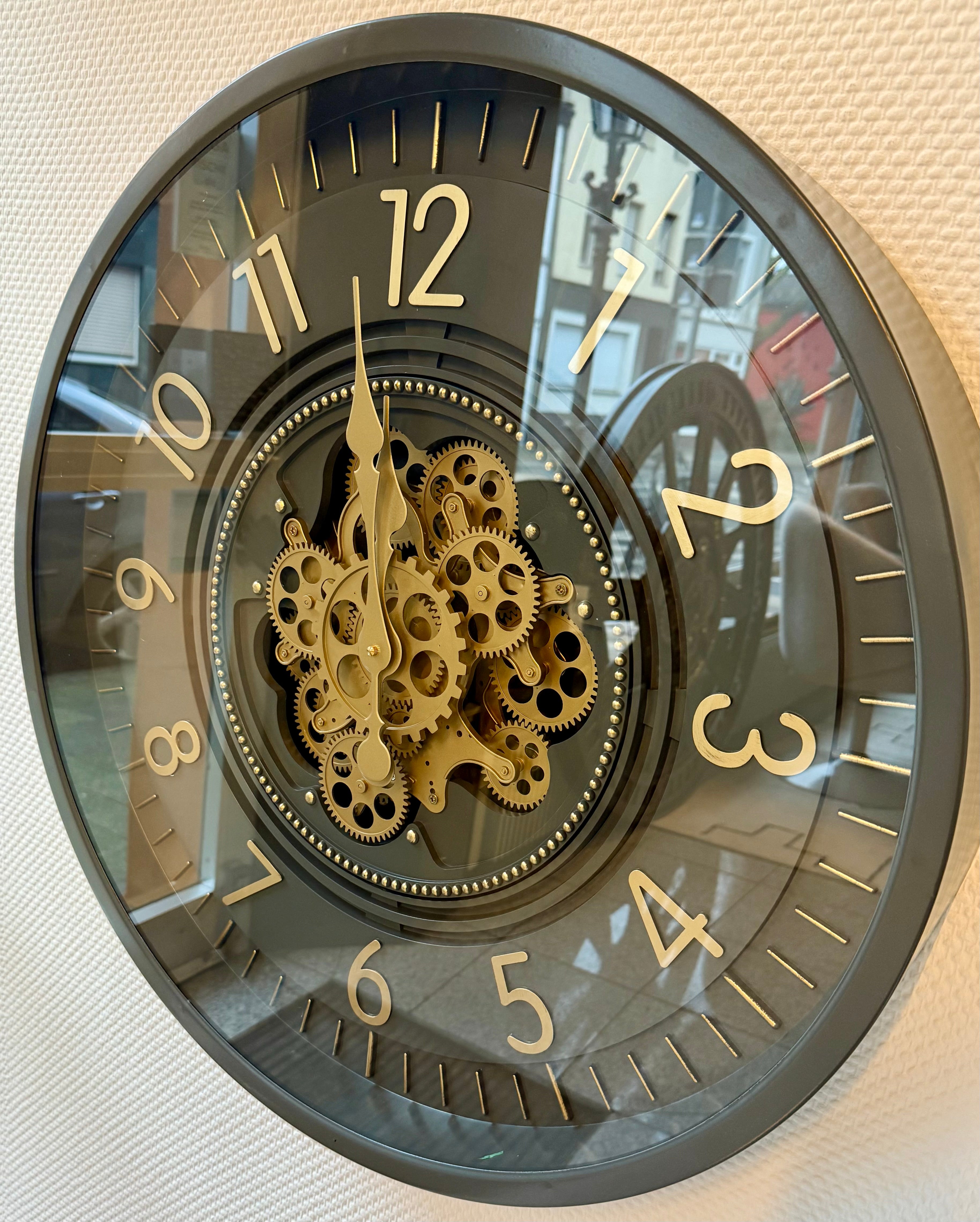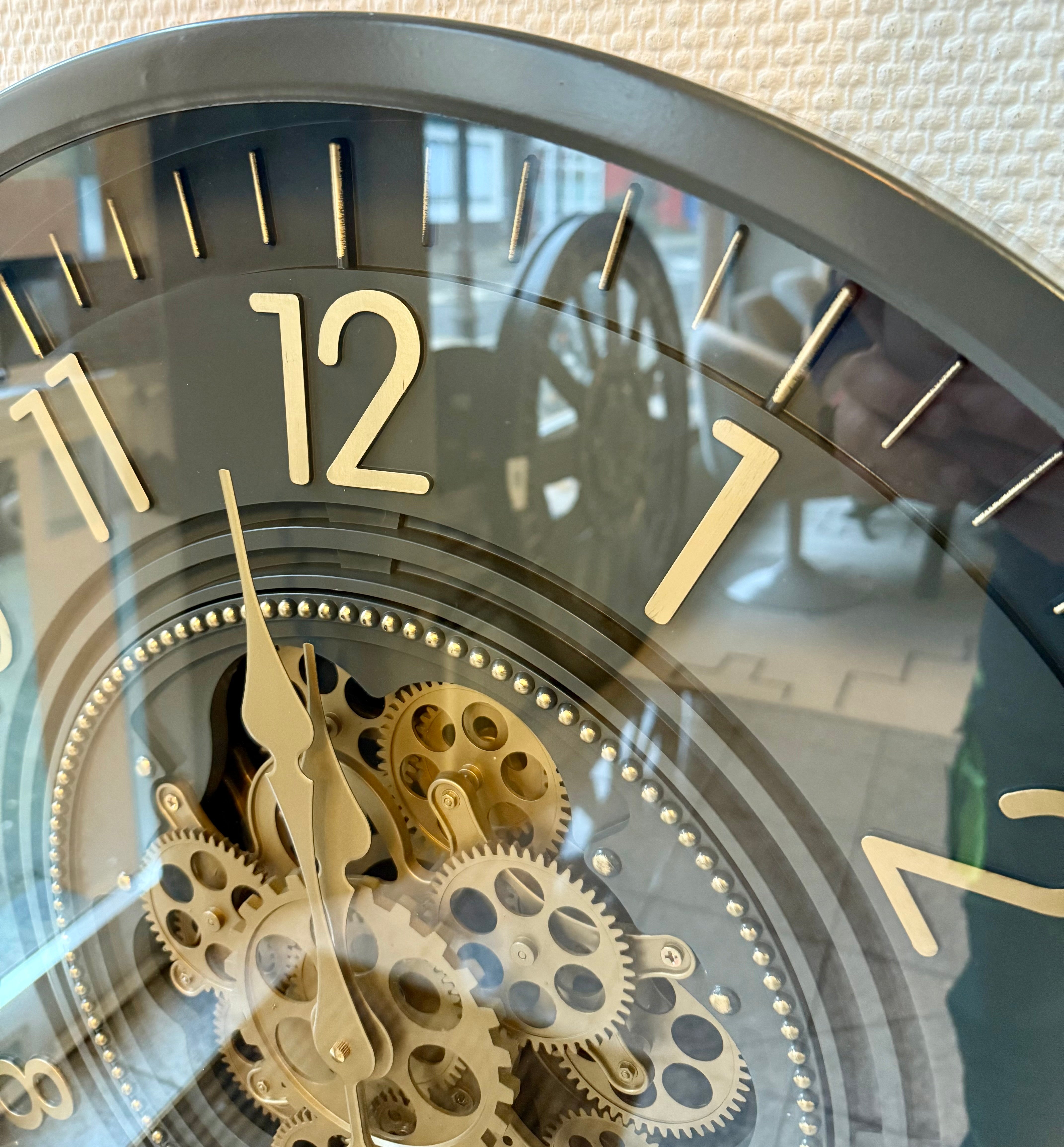 65 cm Zürich Vintage Wanduhr mit Zahnrädern anthrazit gold