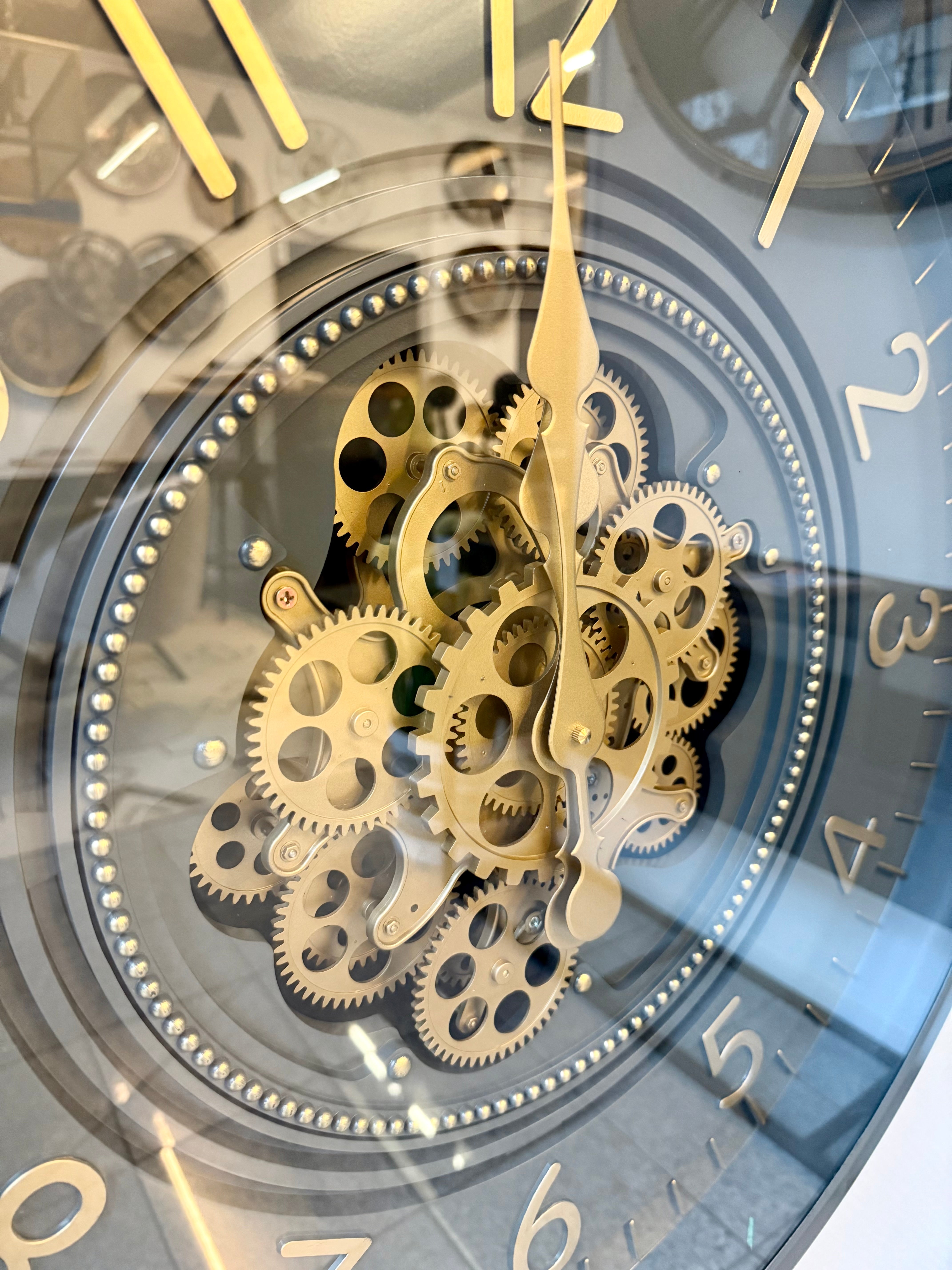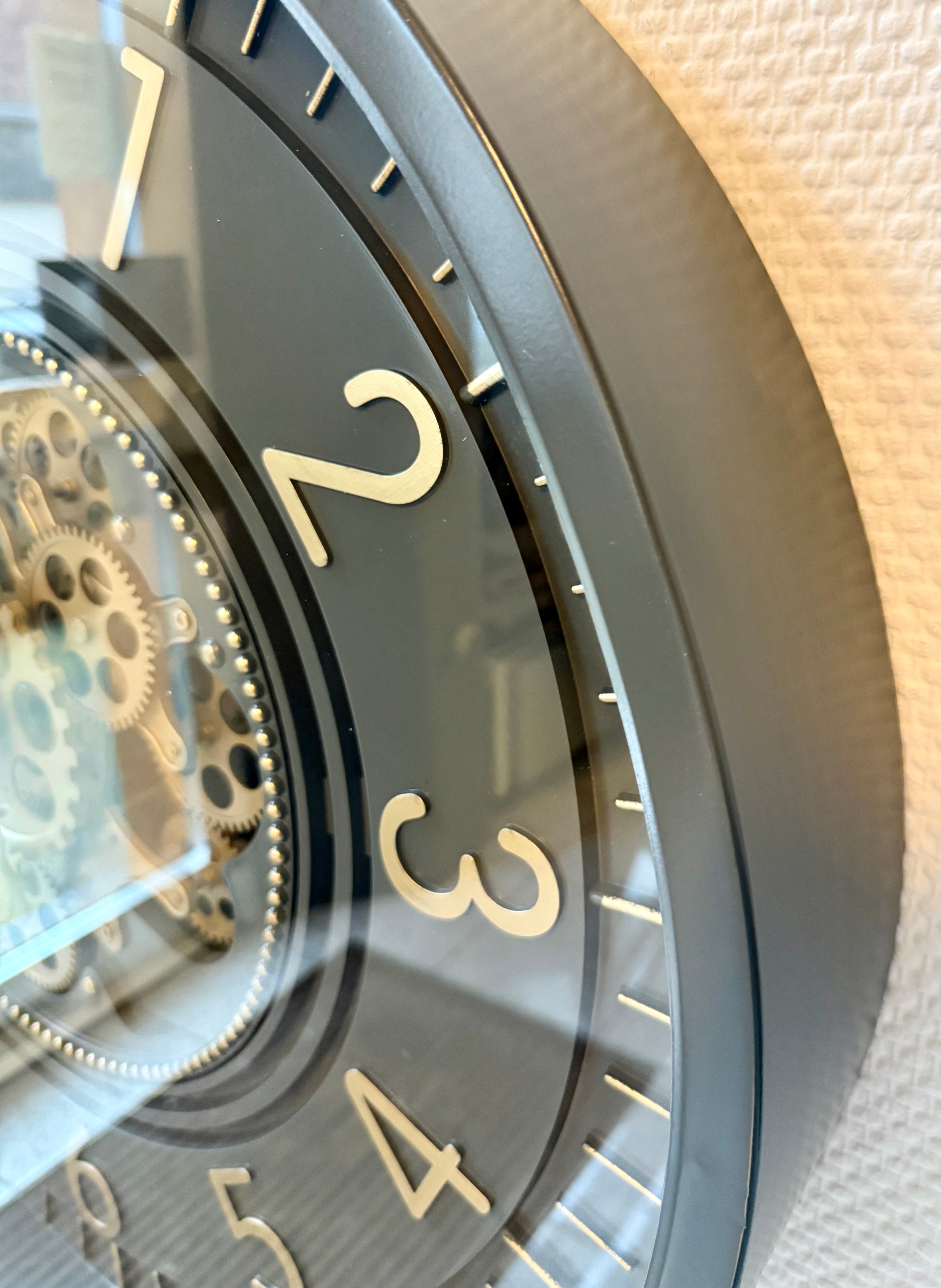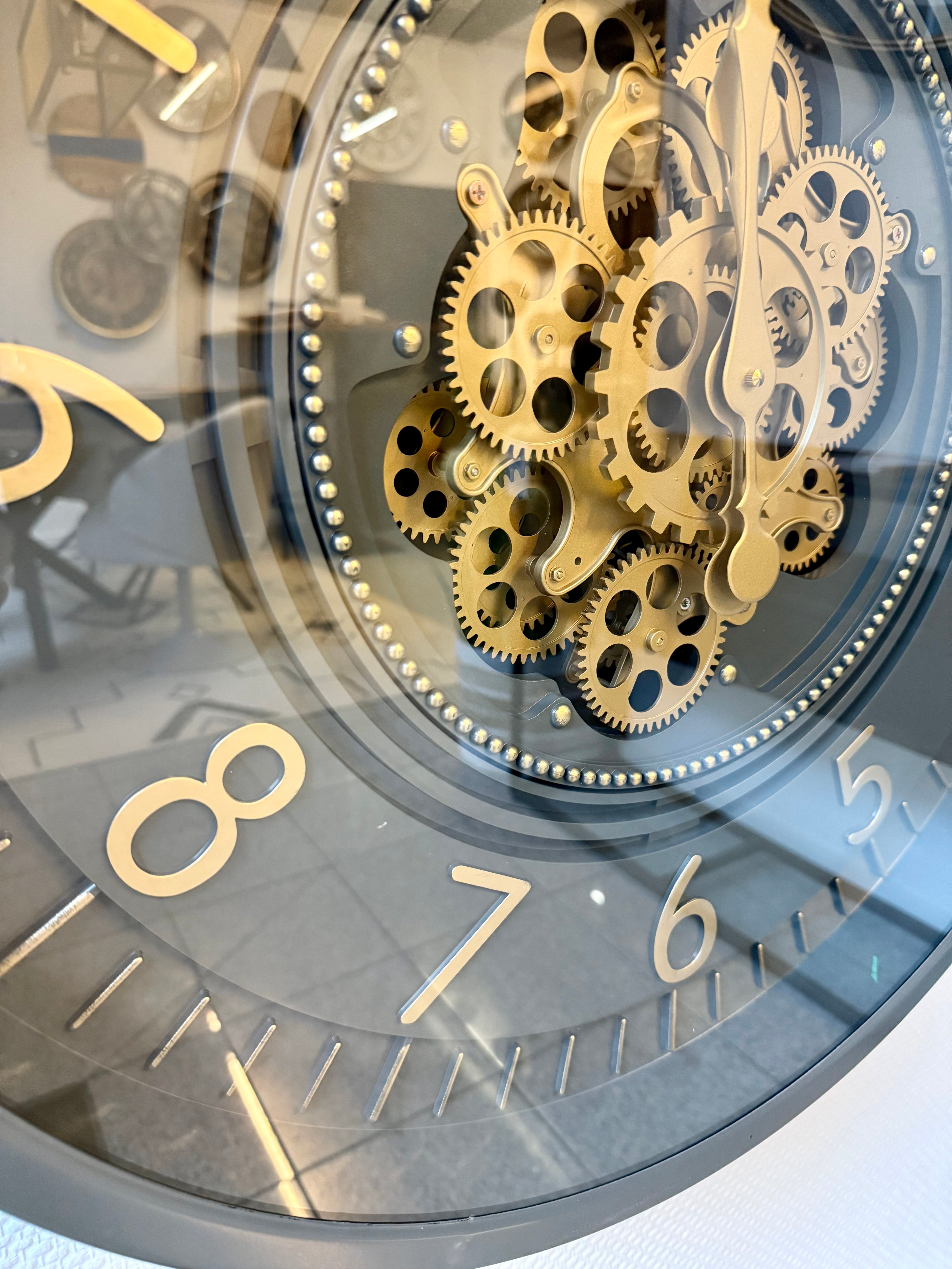 65 cm Zürich Vintage Wanduhr mit Zahnrädern anthrazit gold