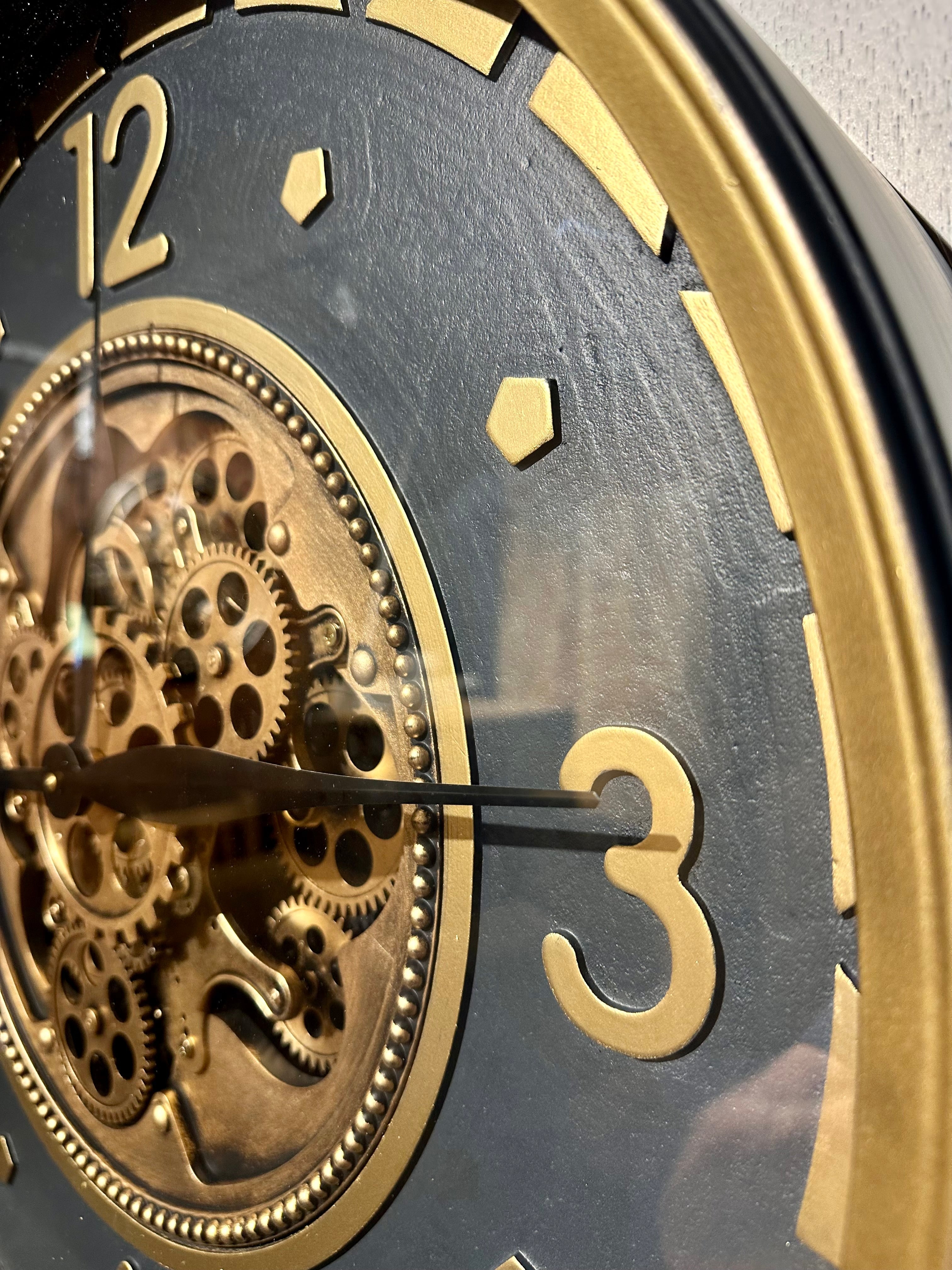 70 cm Wien XL Vintage Wanduhr mit Zahnrädern gold anthrazit