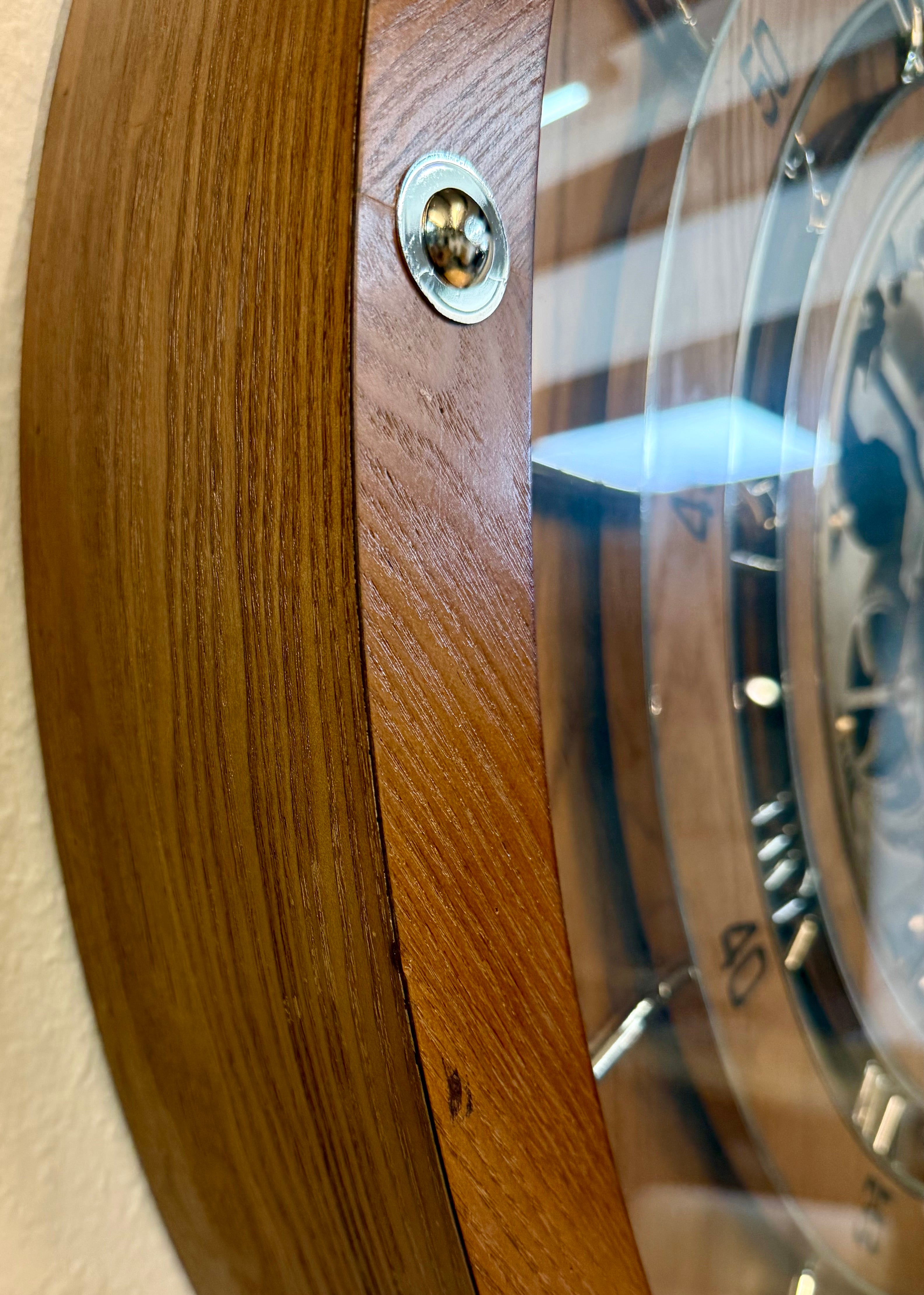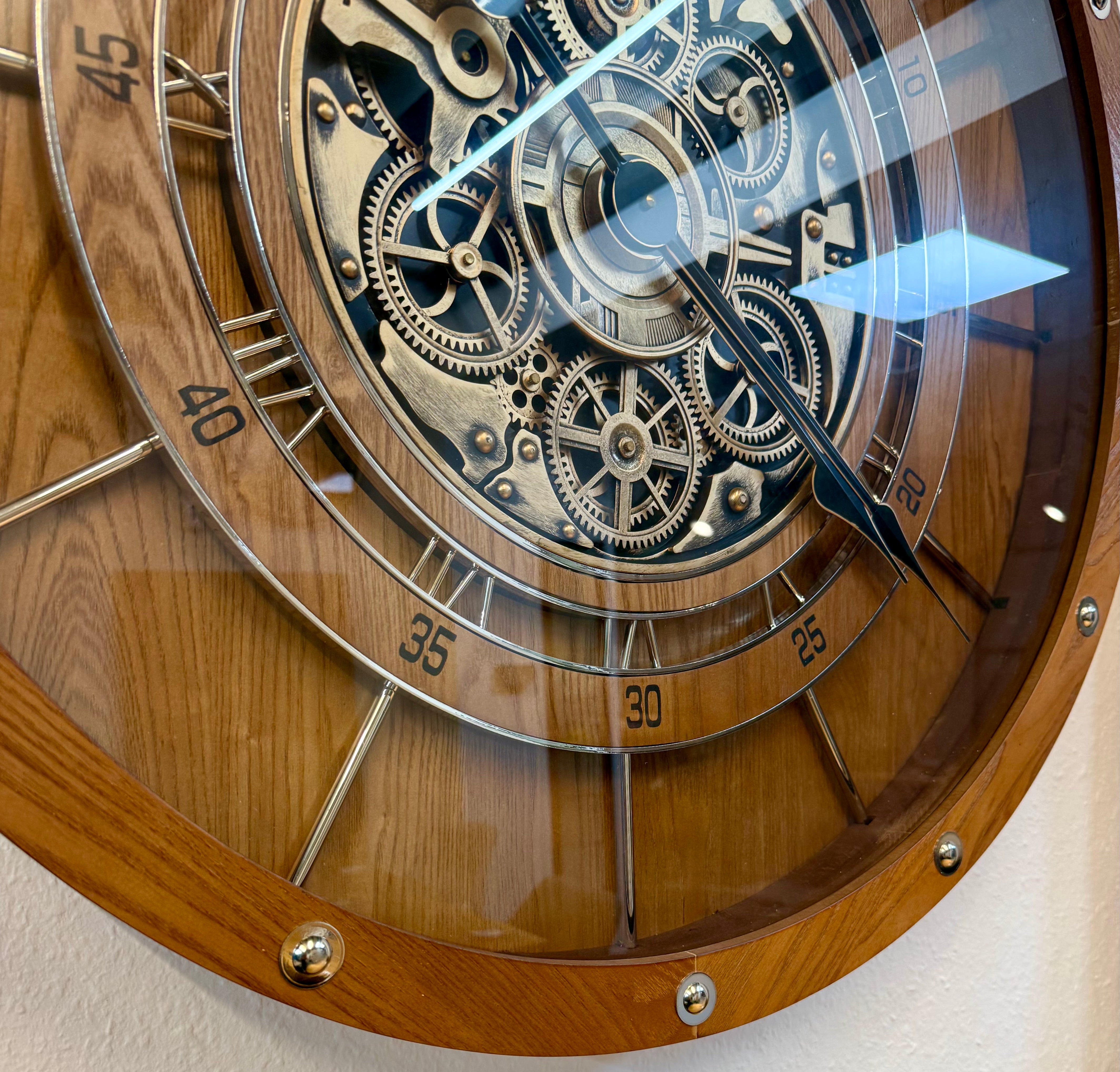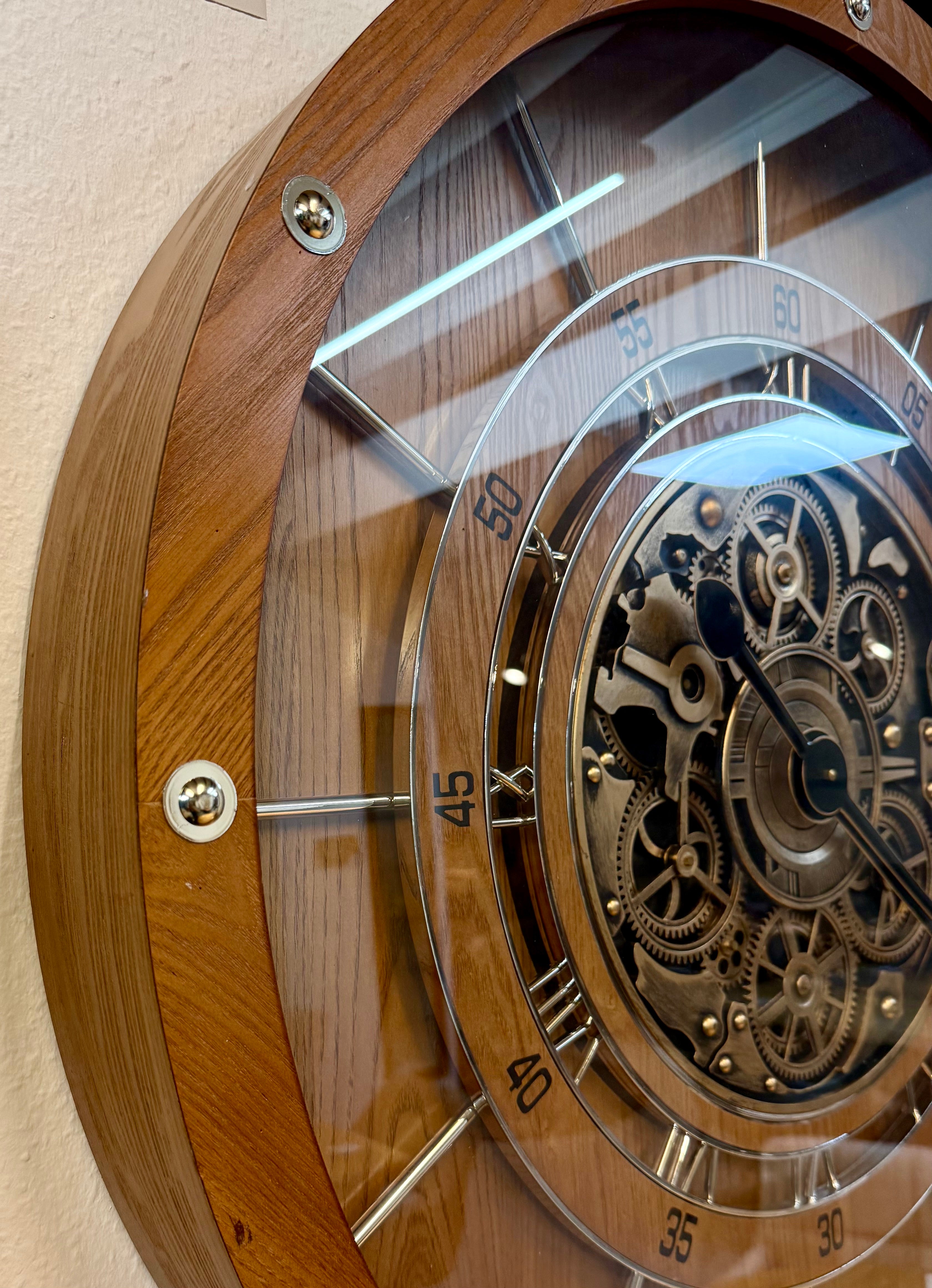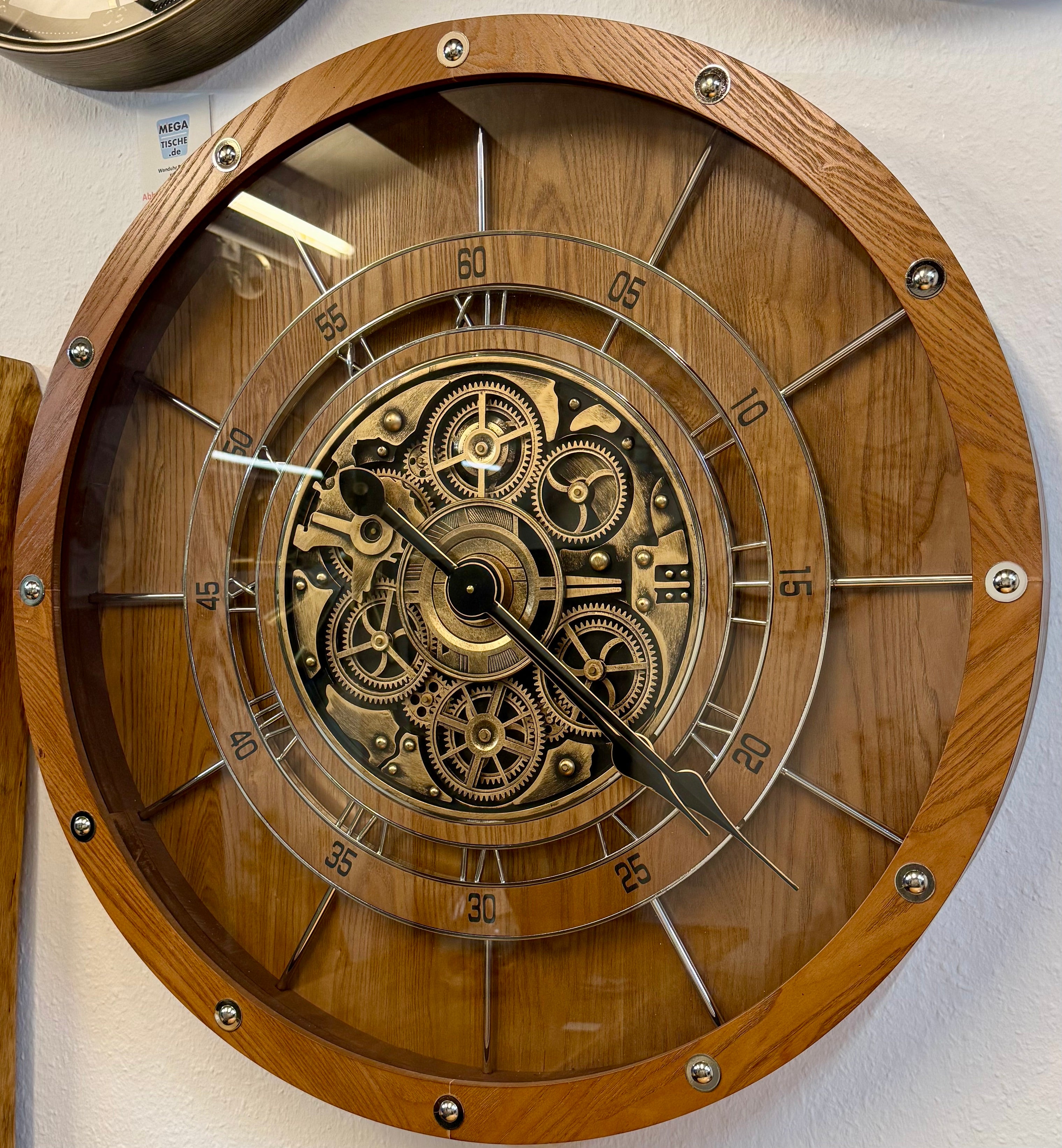 80 cm Zahnrad Wanduhr Bodensee aus Holz dunkelbraun animiert