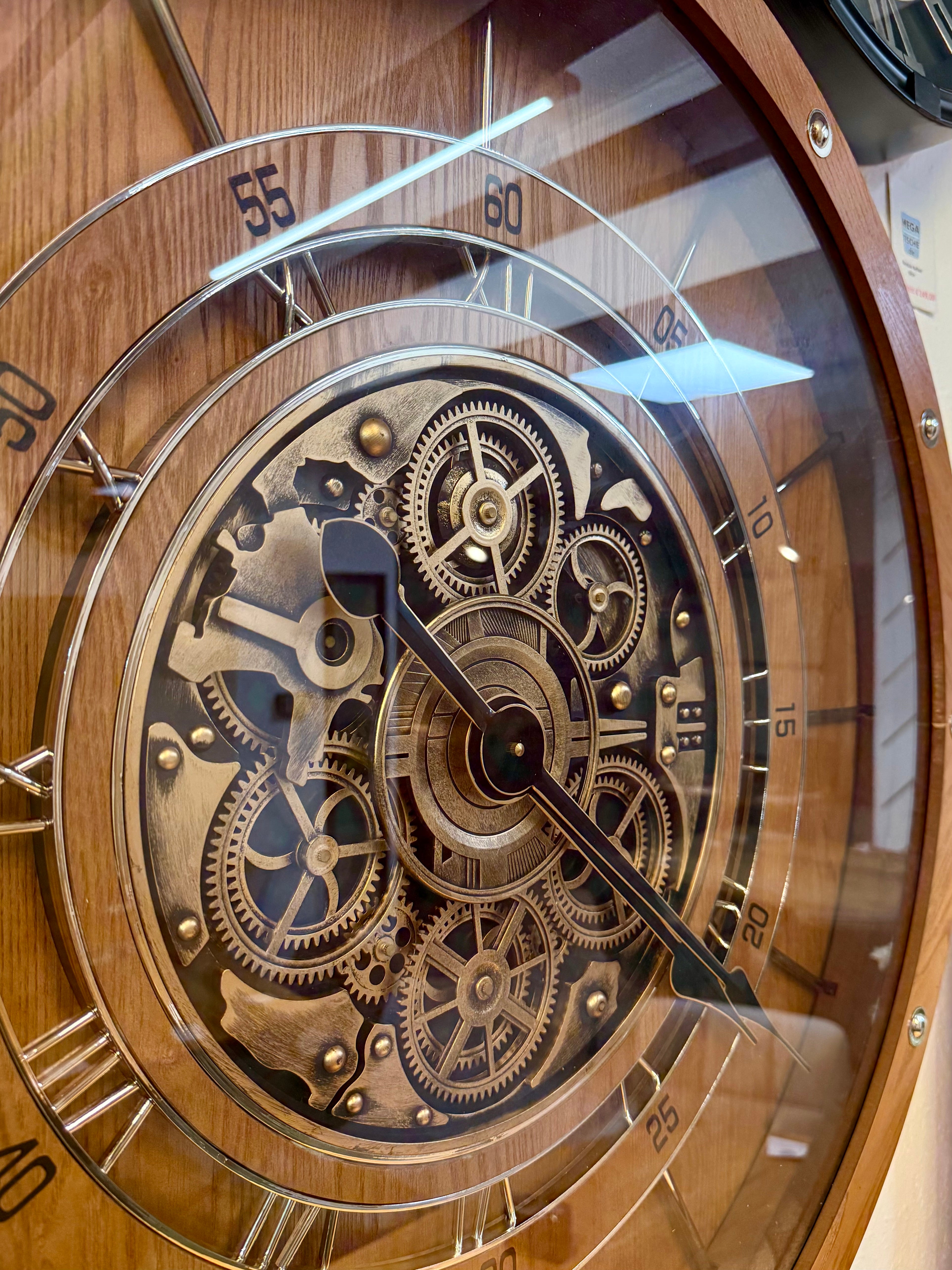 Eine sehr schöne animierte Zahnrad Wanduhr im modischen und hochwertigen Landhausstil.