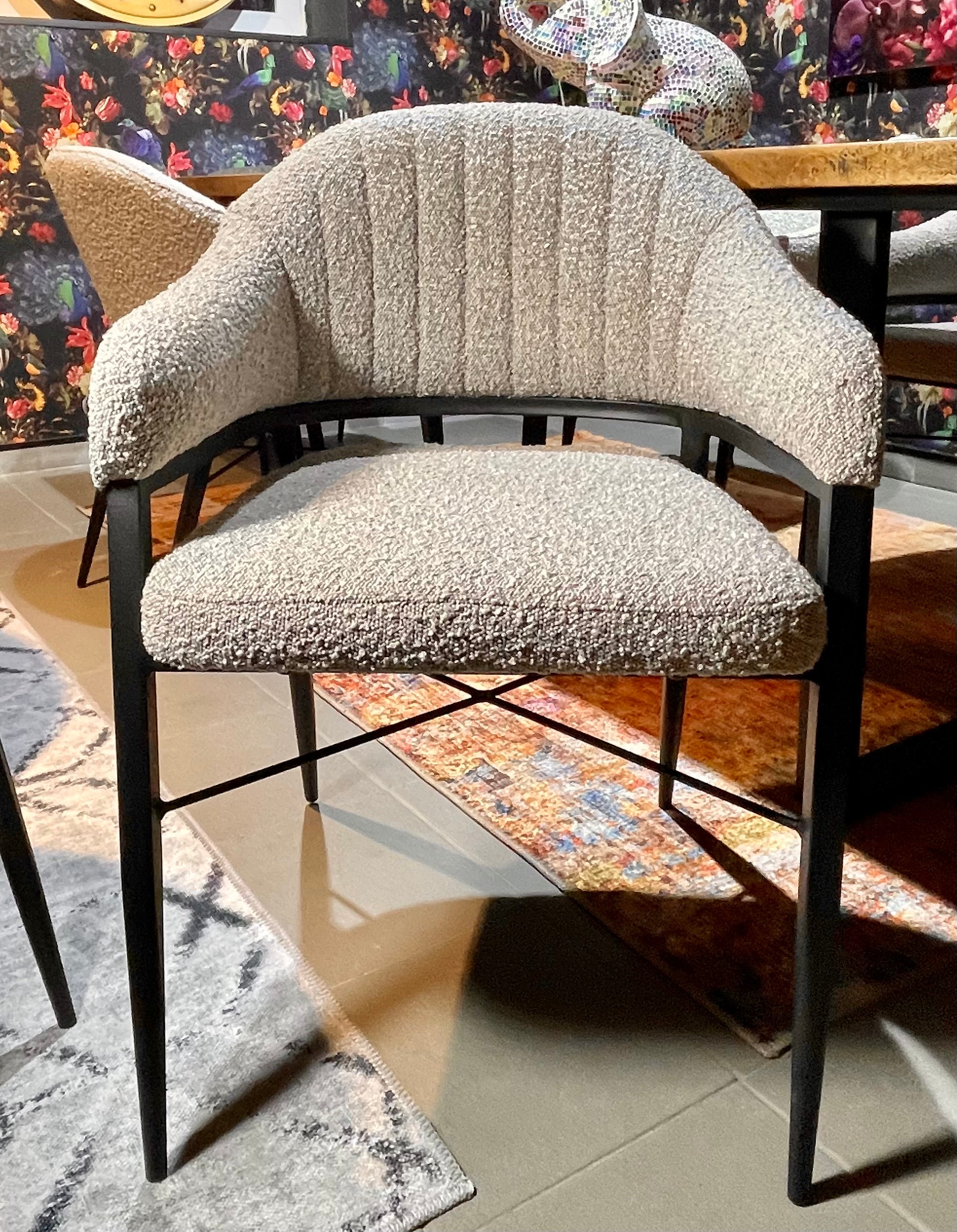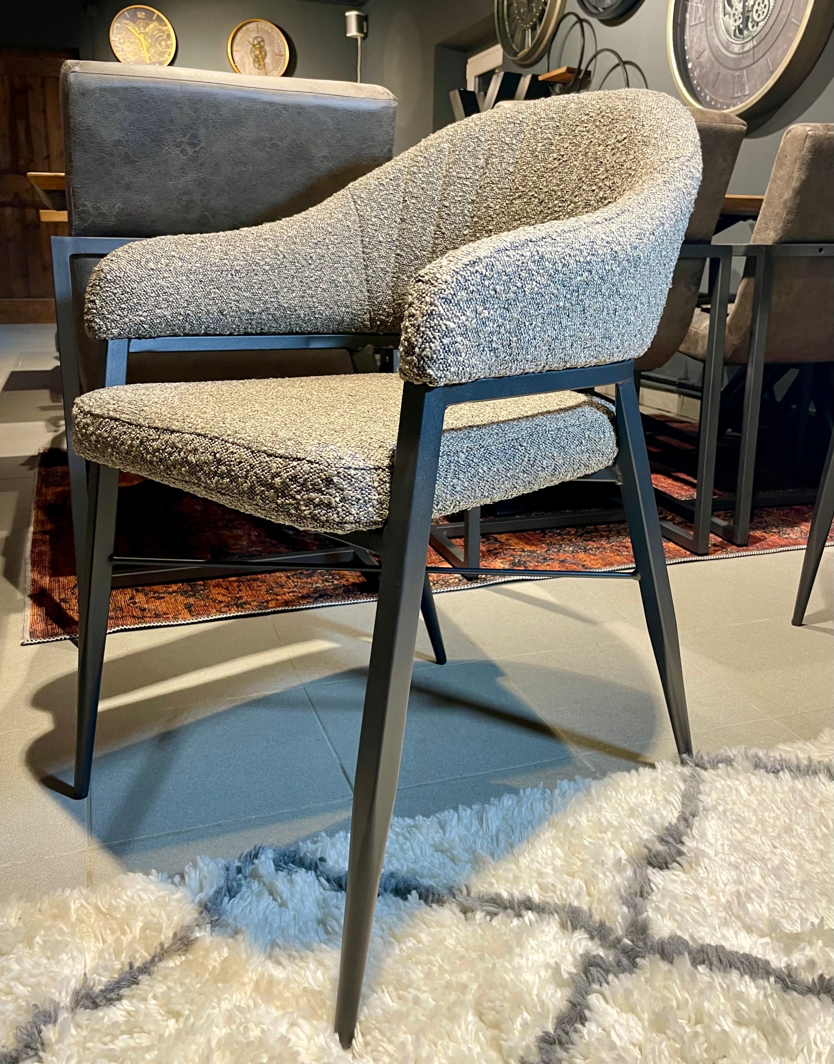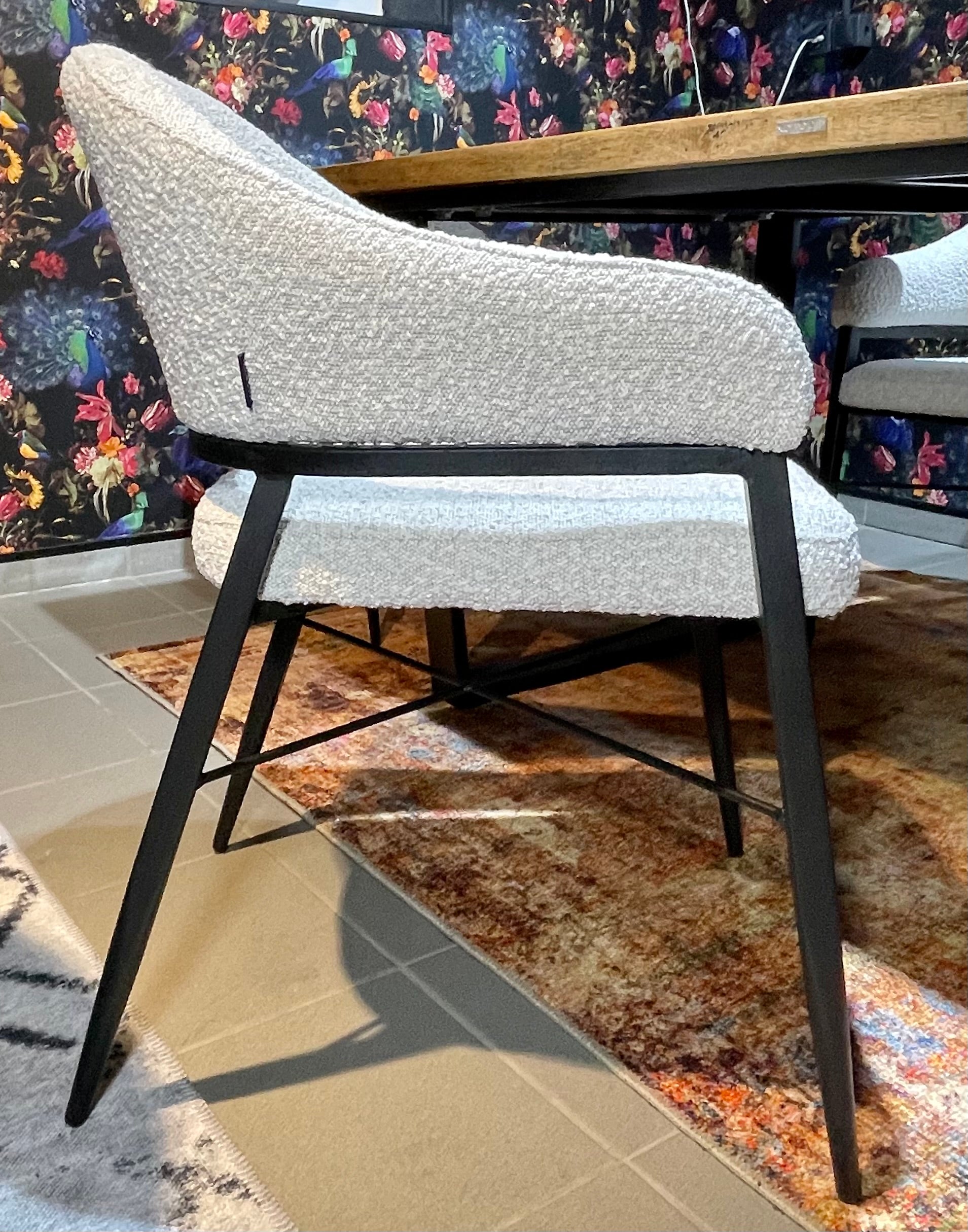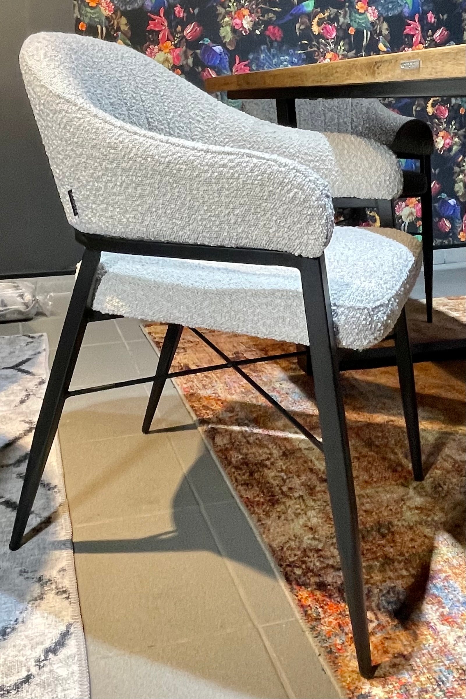 Armlehnen Stuhl Roman Teddy Stoff in 3 Farben weiß hellgrau anthrazit-grau mit Metallgestell
