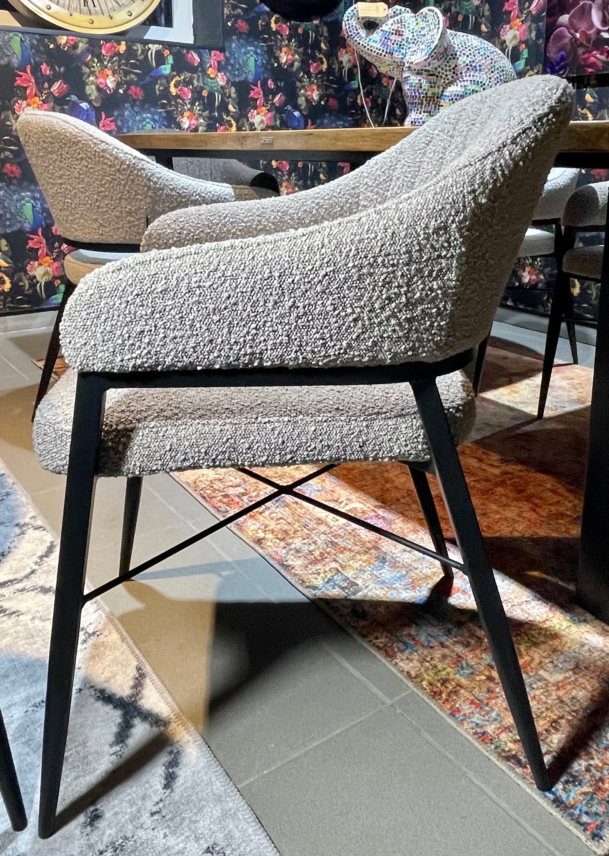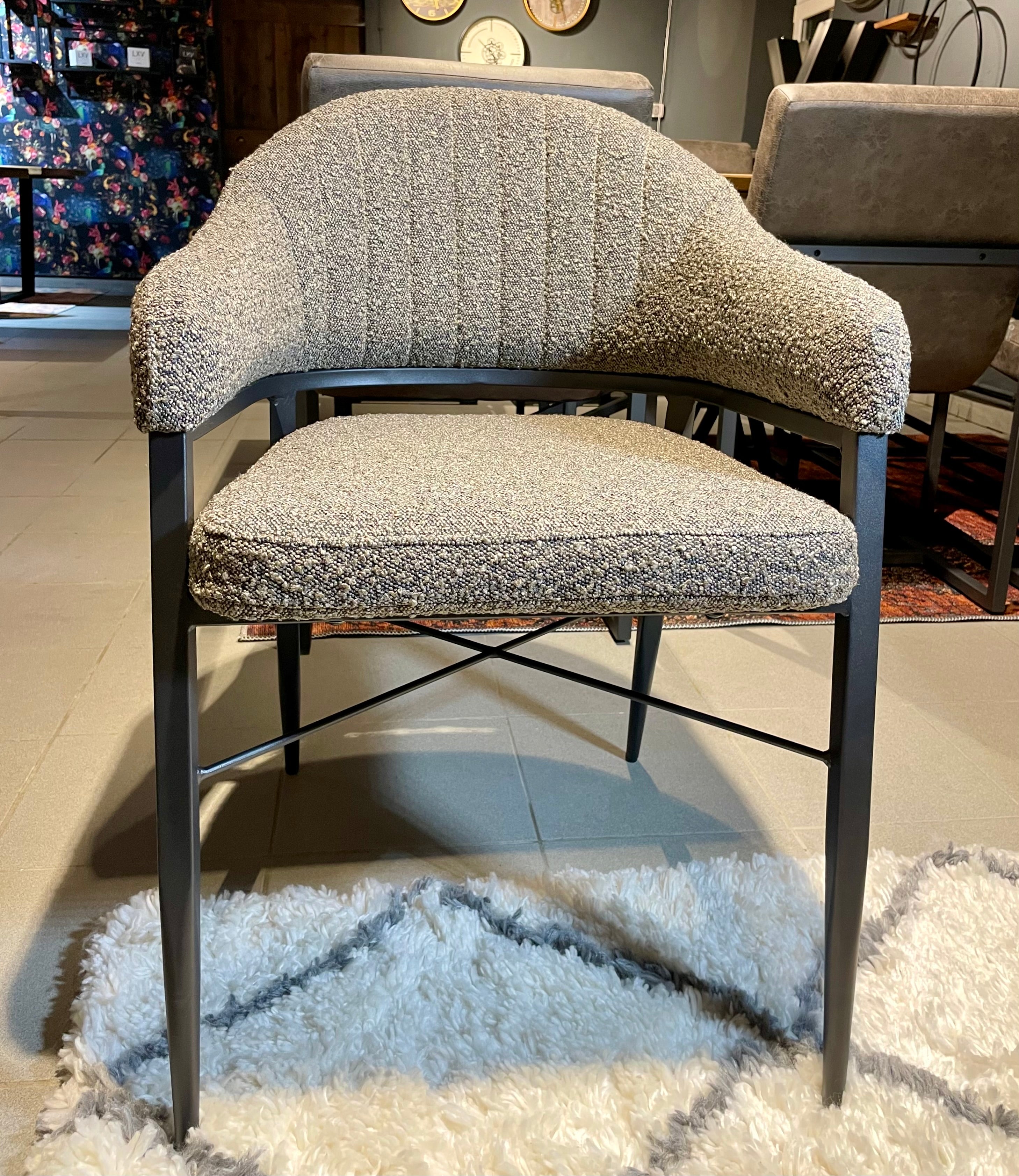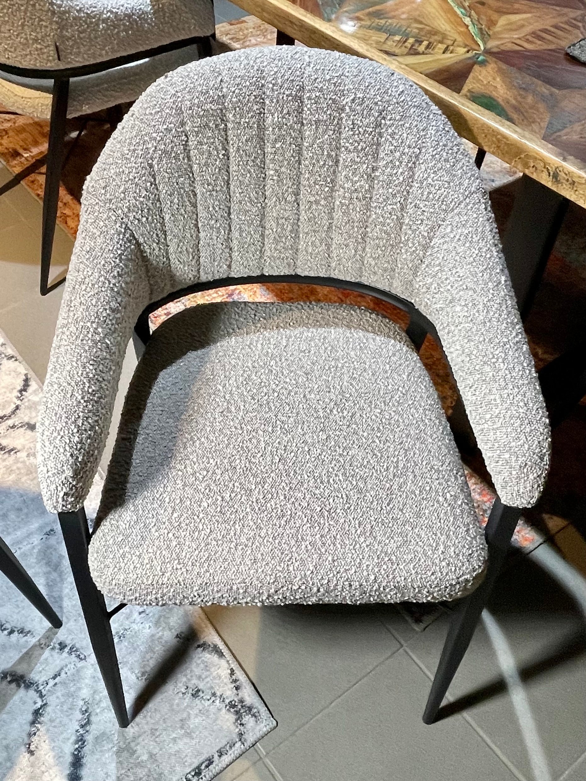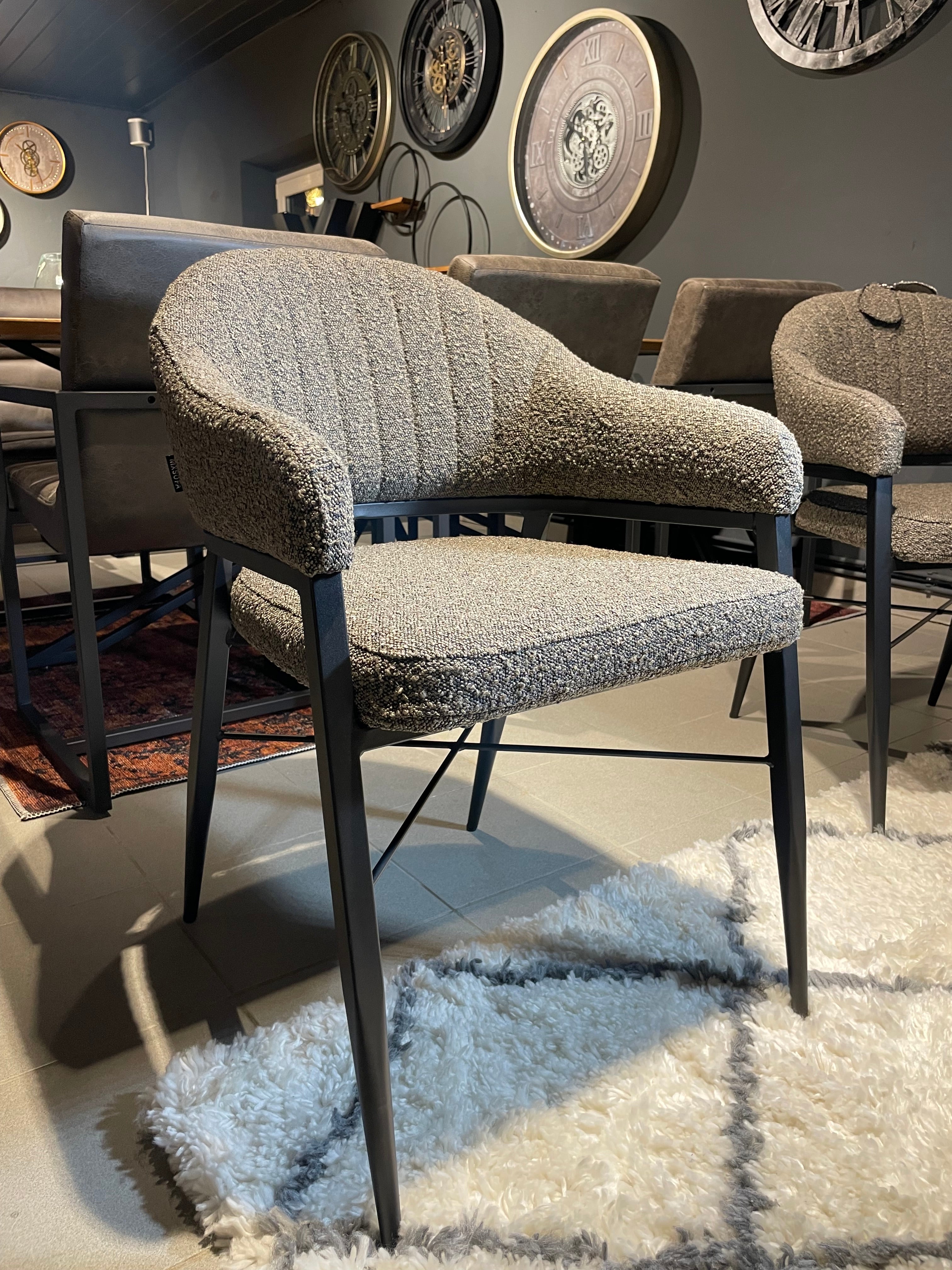 Armlehnen Stuhl Roman Teddy Stoff in 3 Farben weiß hellgrau anthrazit-grau mit Metallgestell