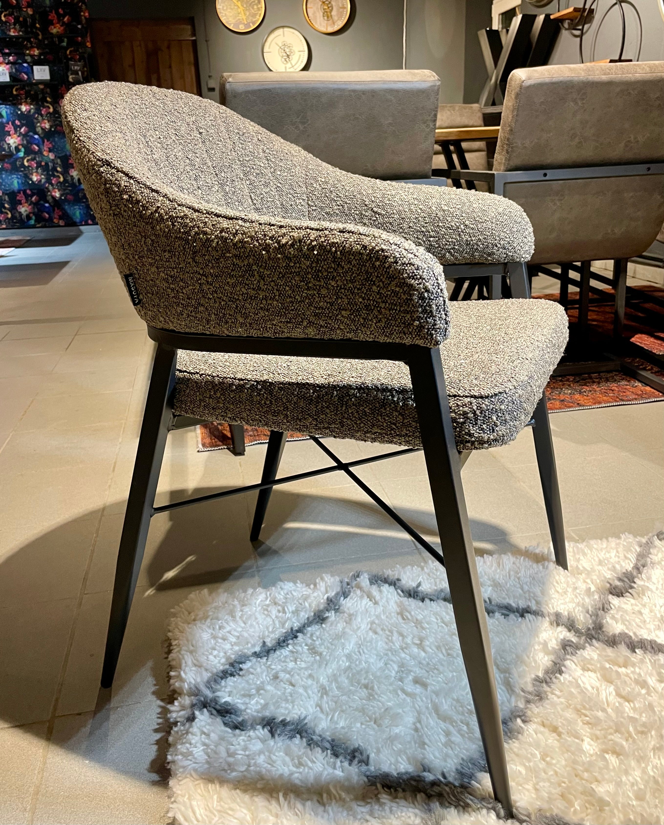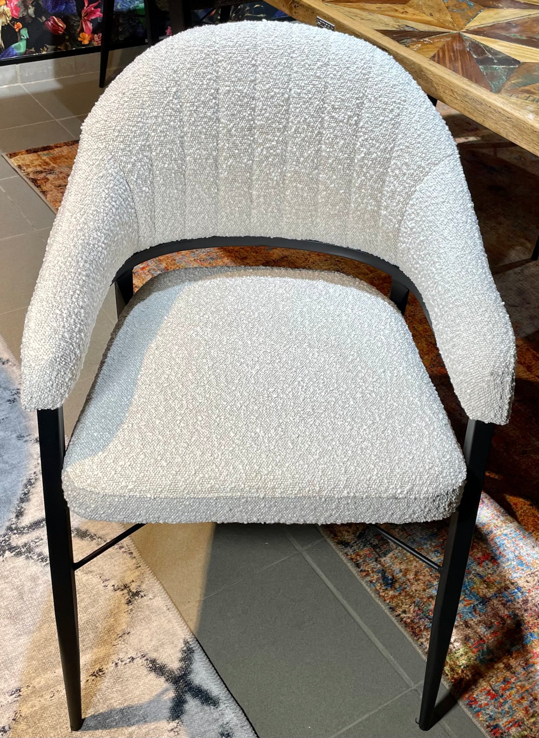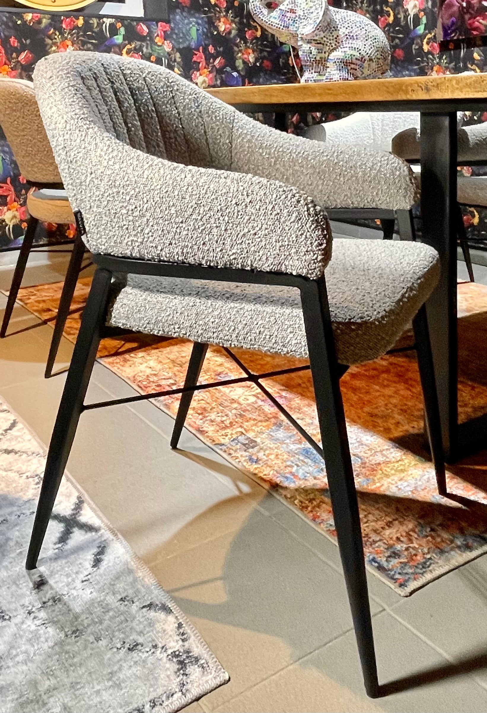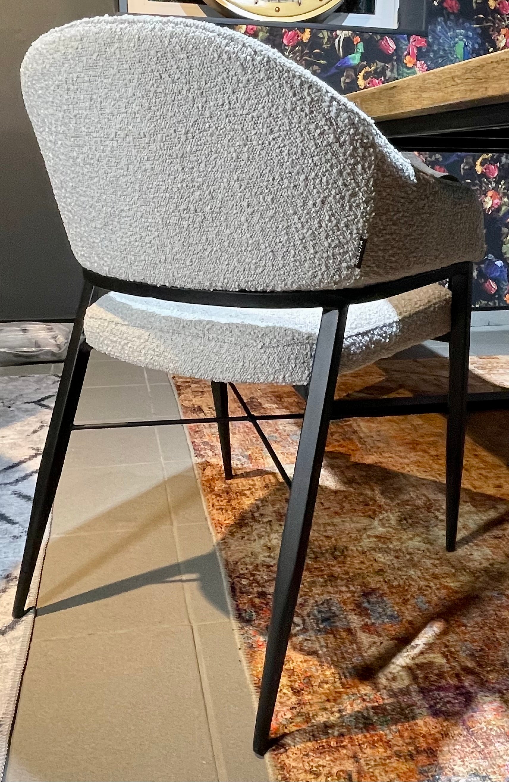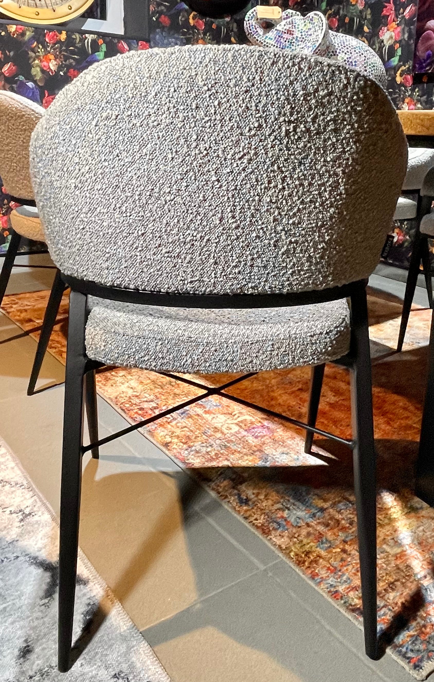 Armlehnen Stuhl Roman Teddy Stoff in 3 Farben weiß hellgrau anthrazit-grau mit Metallgestell