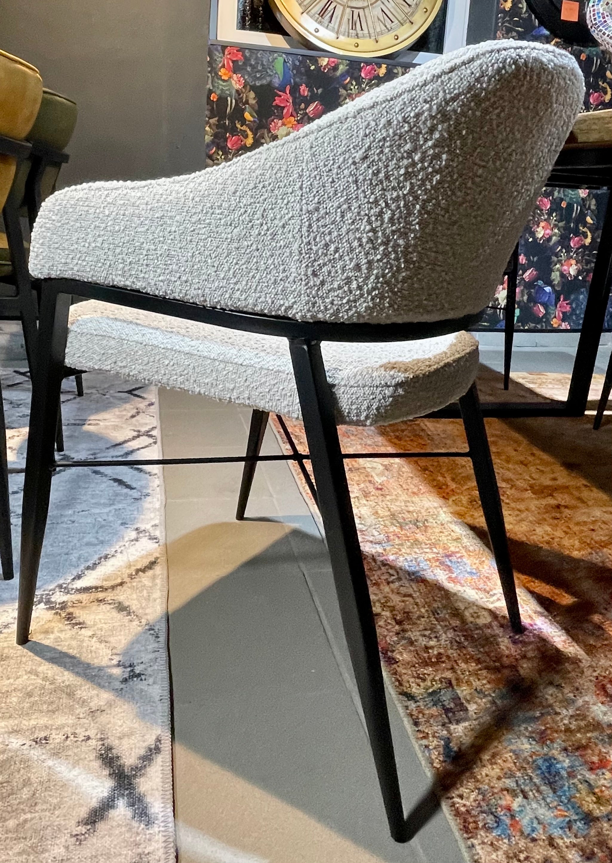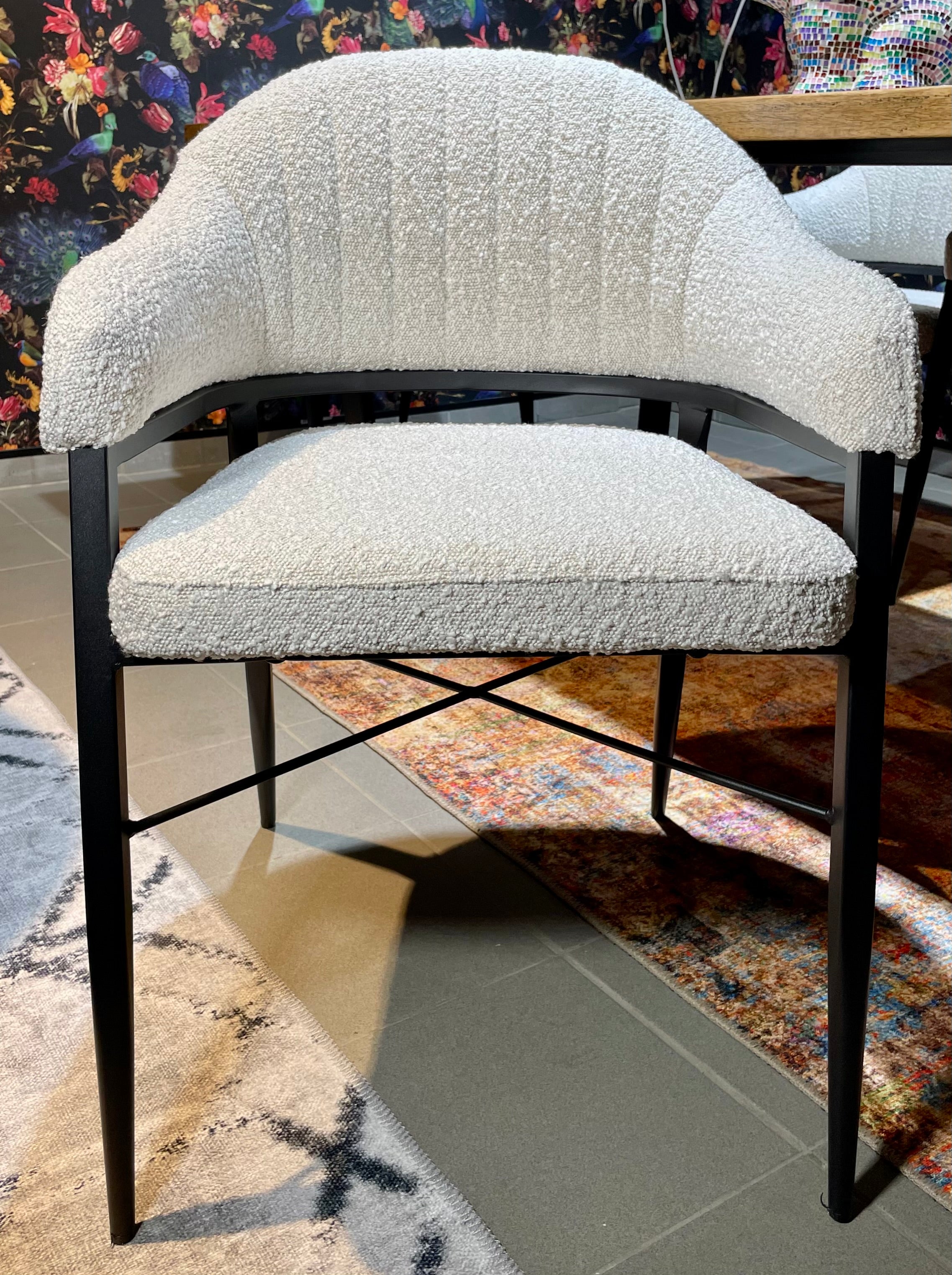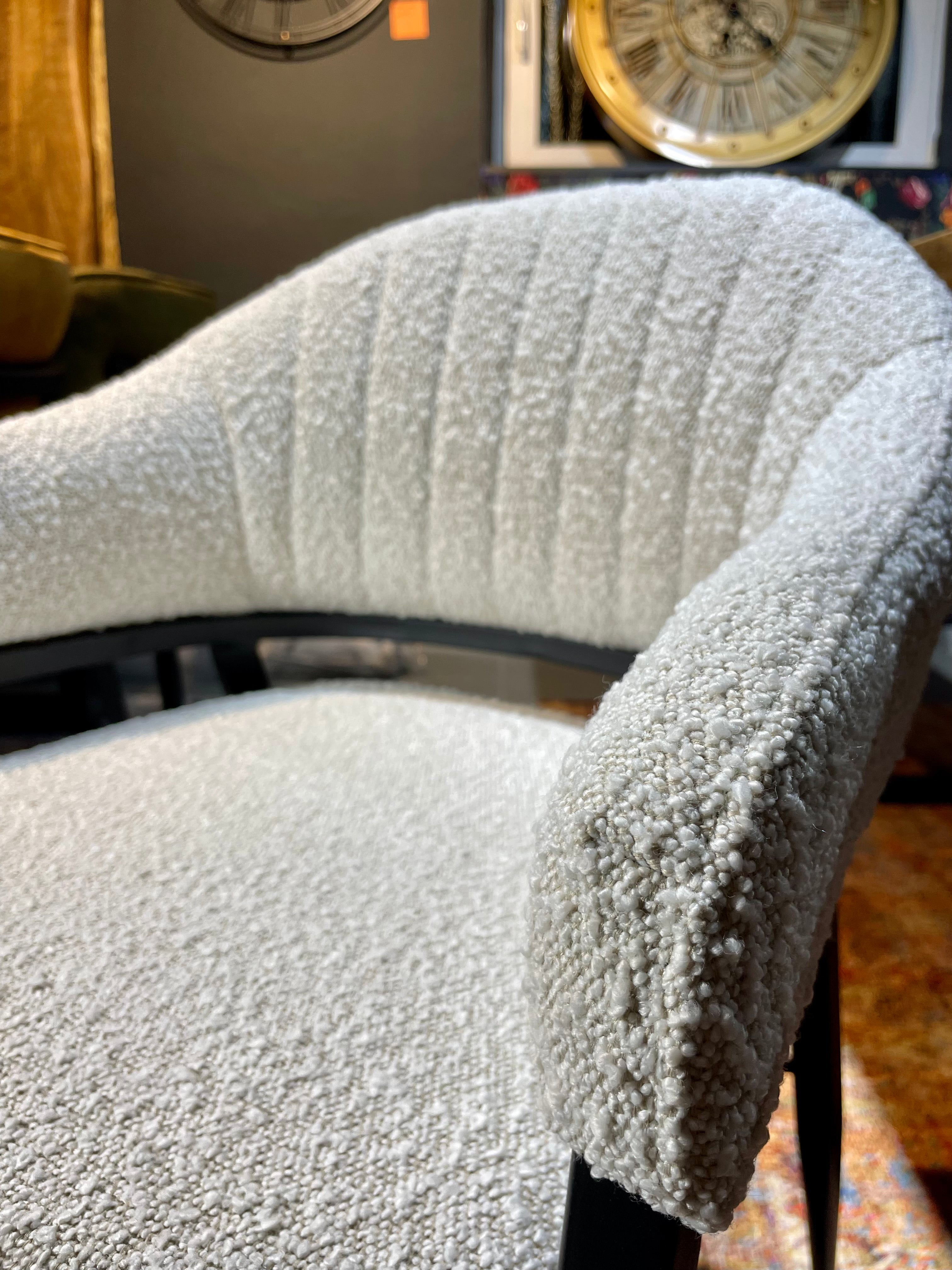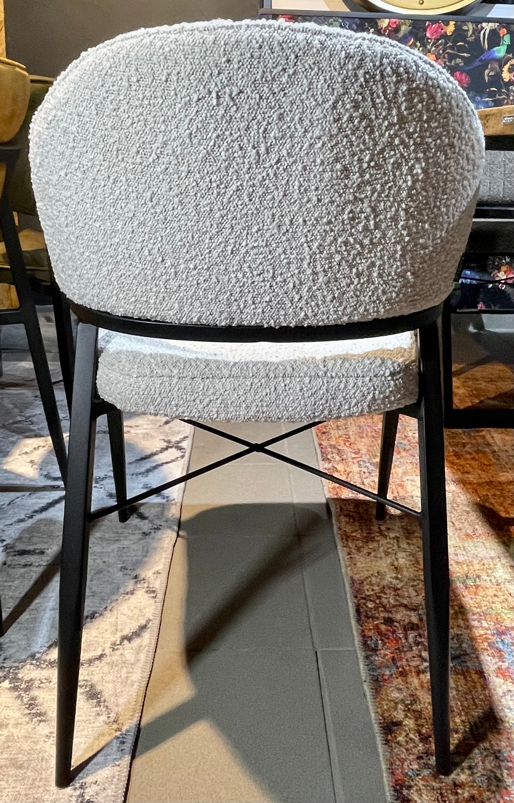 Armlehnen Stuhl Roman Teddy Stoff in 3 Farben weiß hellgrau anthrazit-grau mit Metallgestell