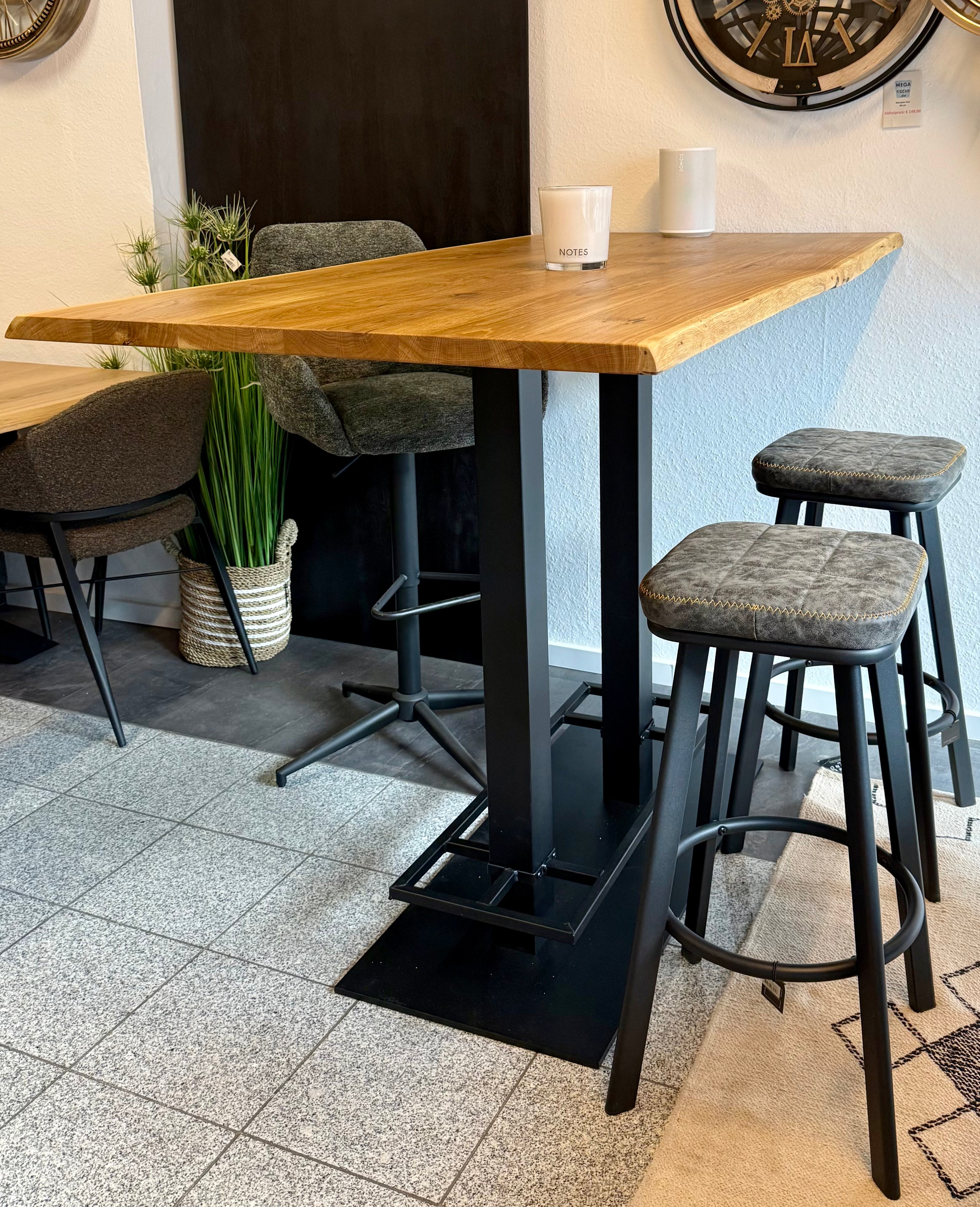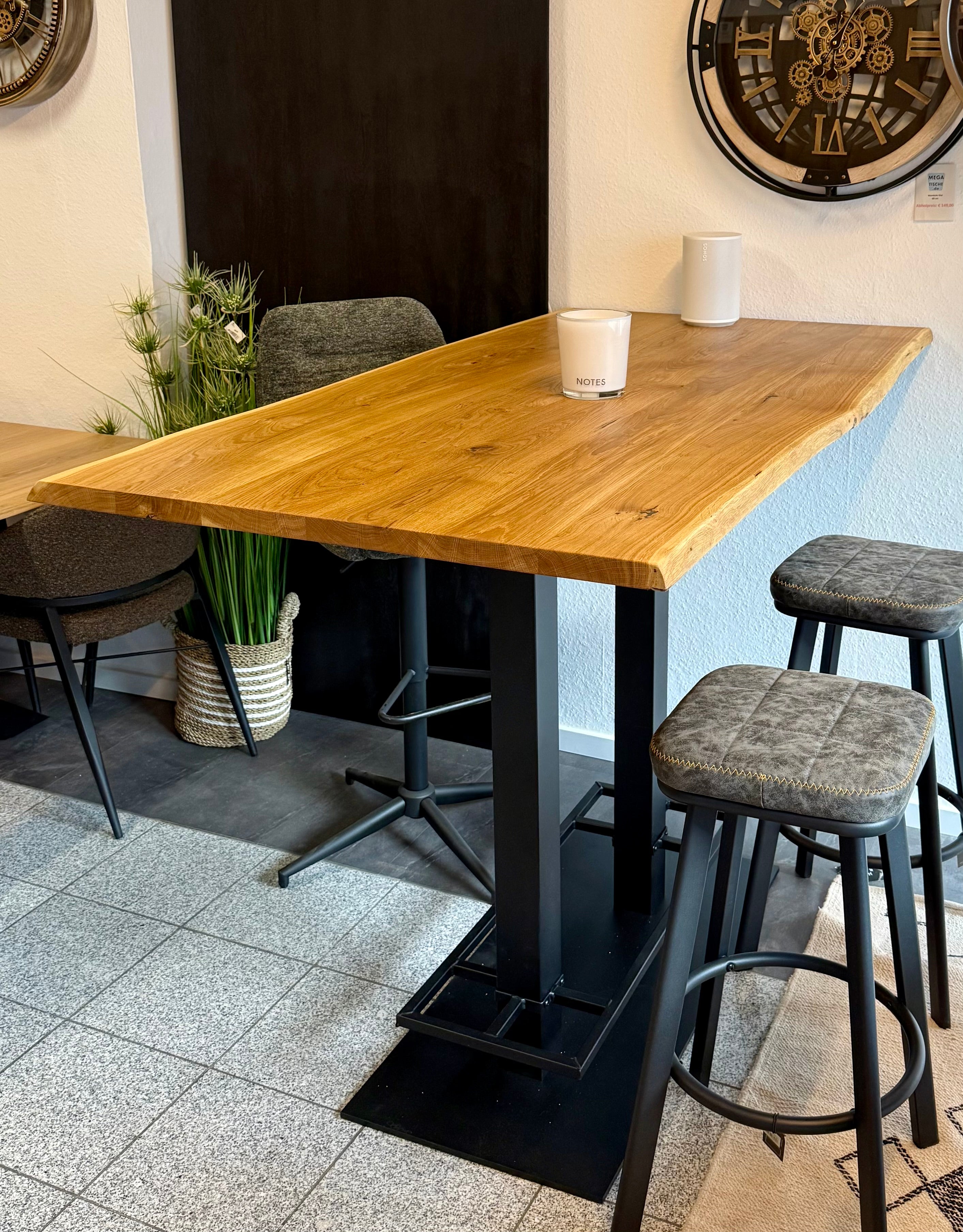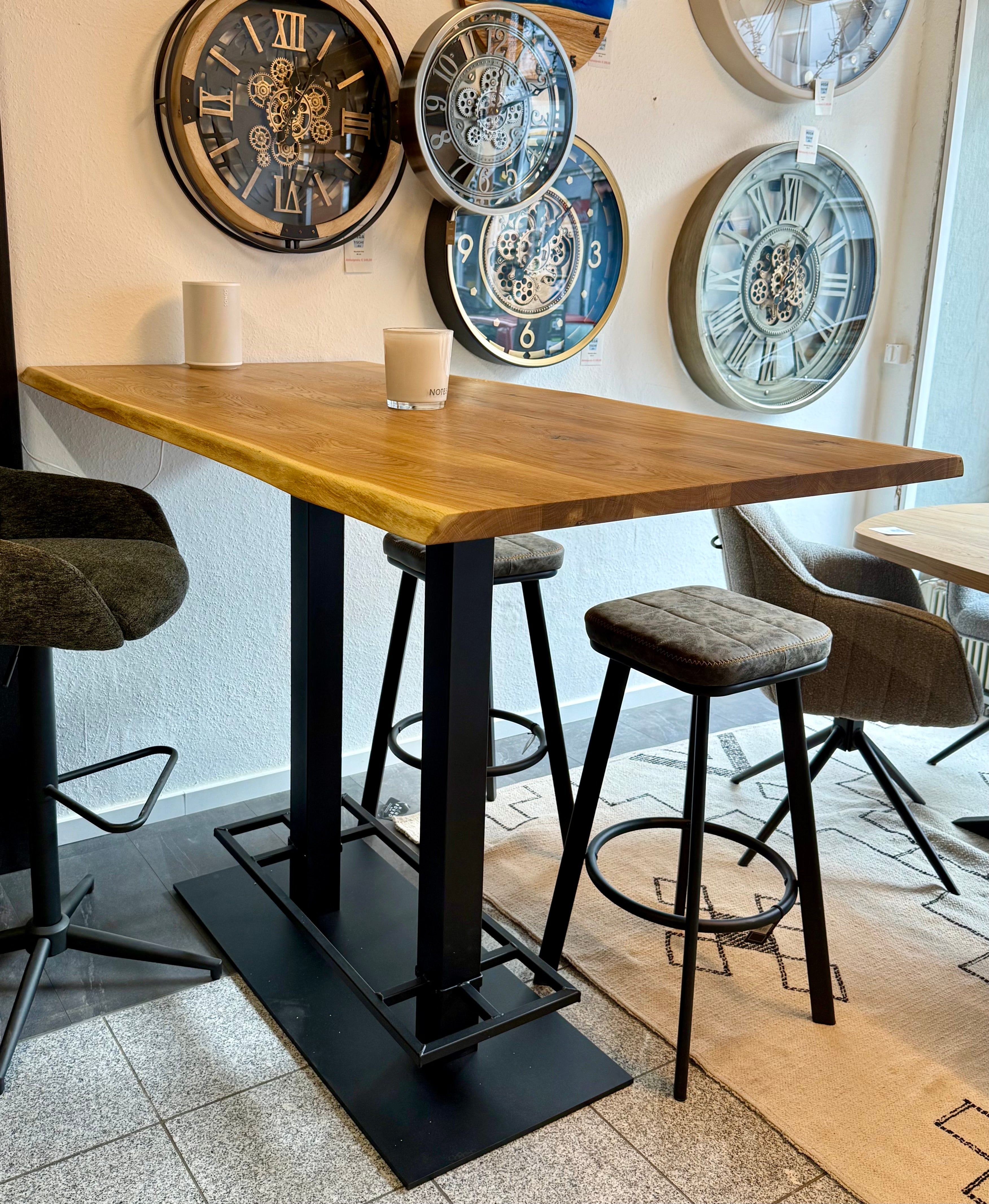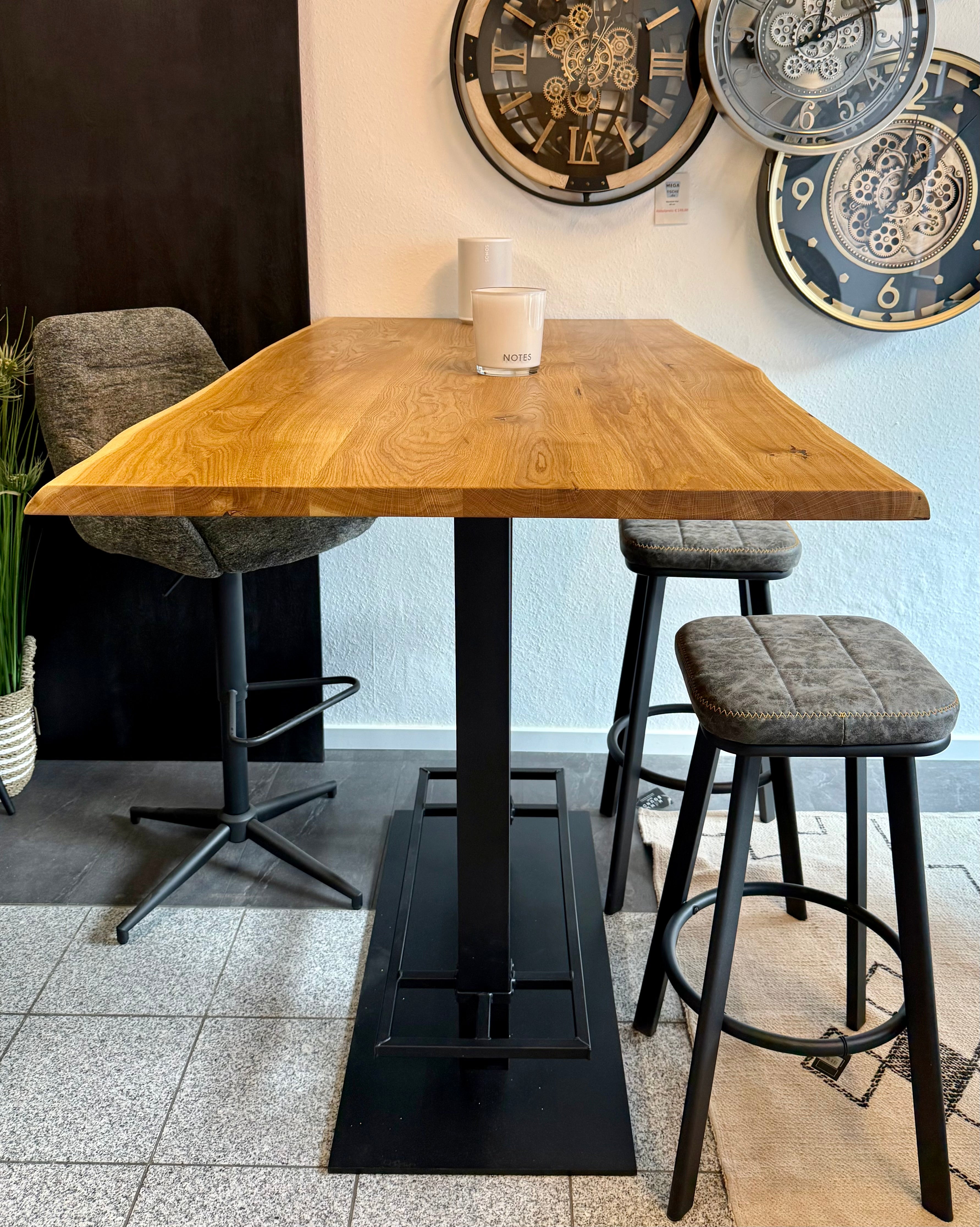 Bartisch Düsseldorf Pure Eiche massiv 160 bis 240 in 3 cm Dicke Holz geölt mit Metall Säule Gestell schwarz 5 Größen