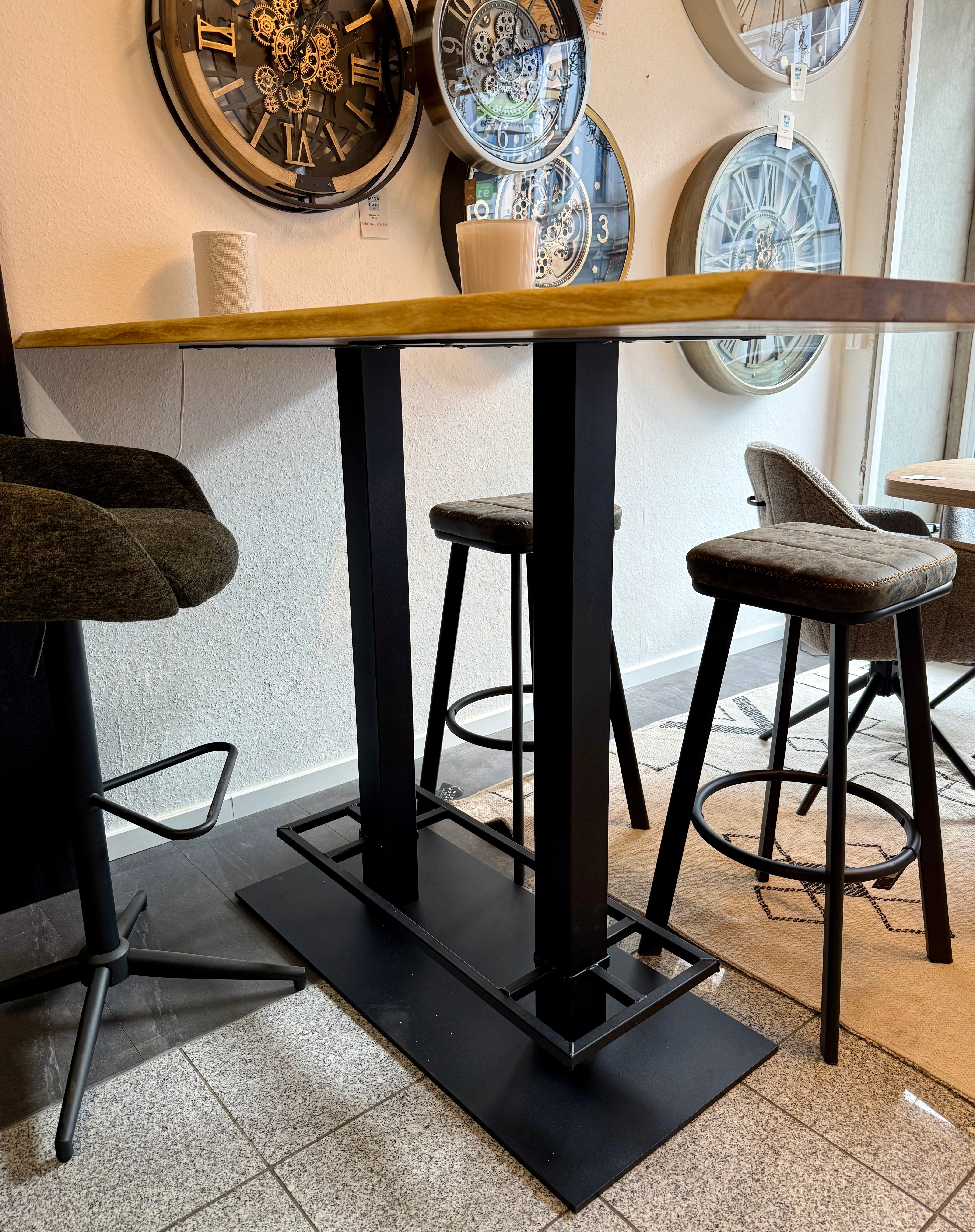 Der Holzbartisch hat ein schwarzes Säulen Gestell (schwarz pulverbeschichtet) und ist in 5 Größen erhältlich.