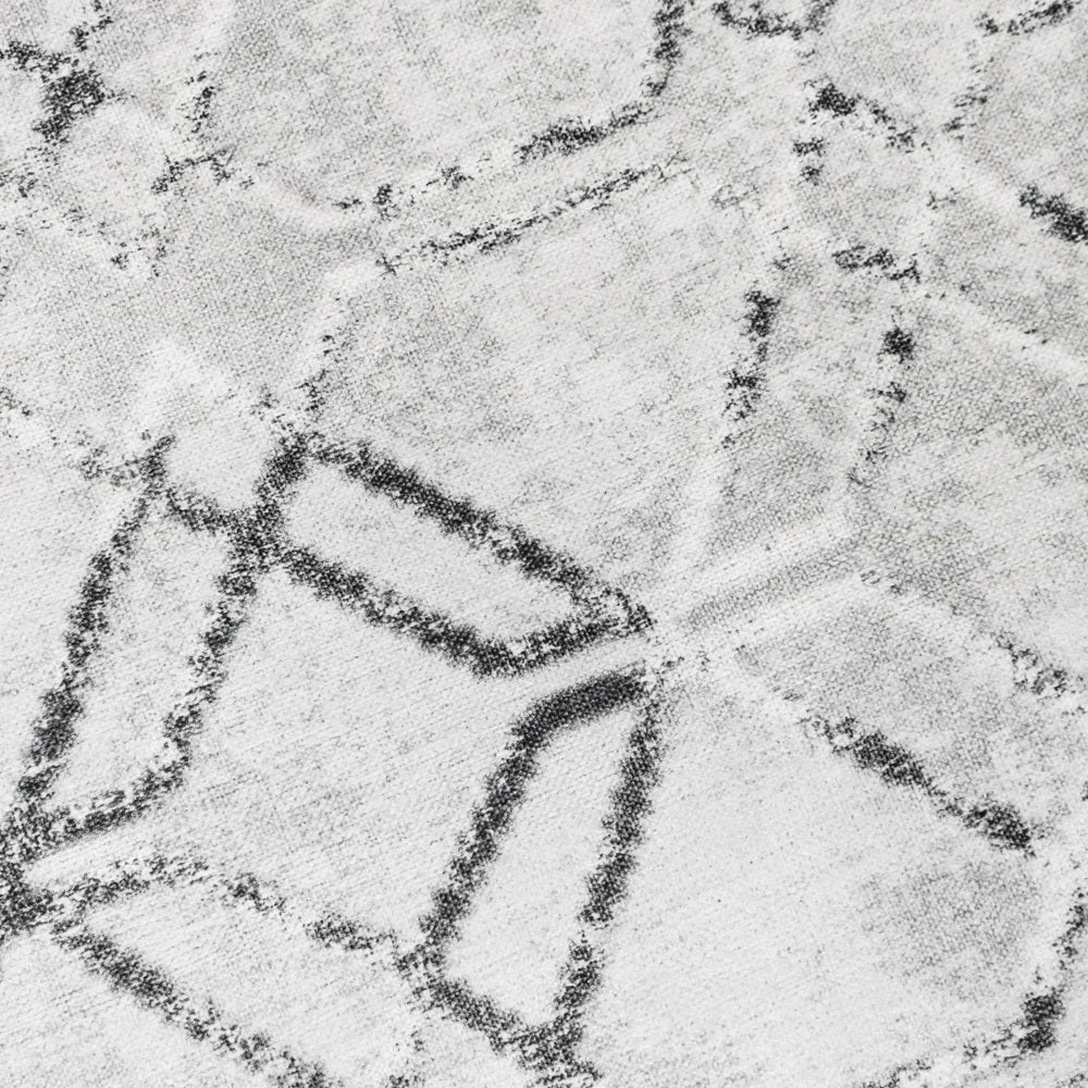Der Wohnzimmer- oder Esszimmer-Teppich ist in anthrazit-silbergrauer Farbe gehalten.