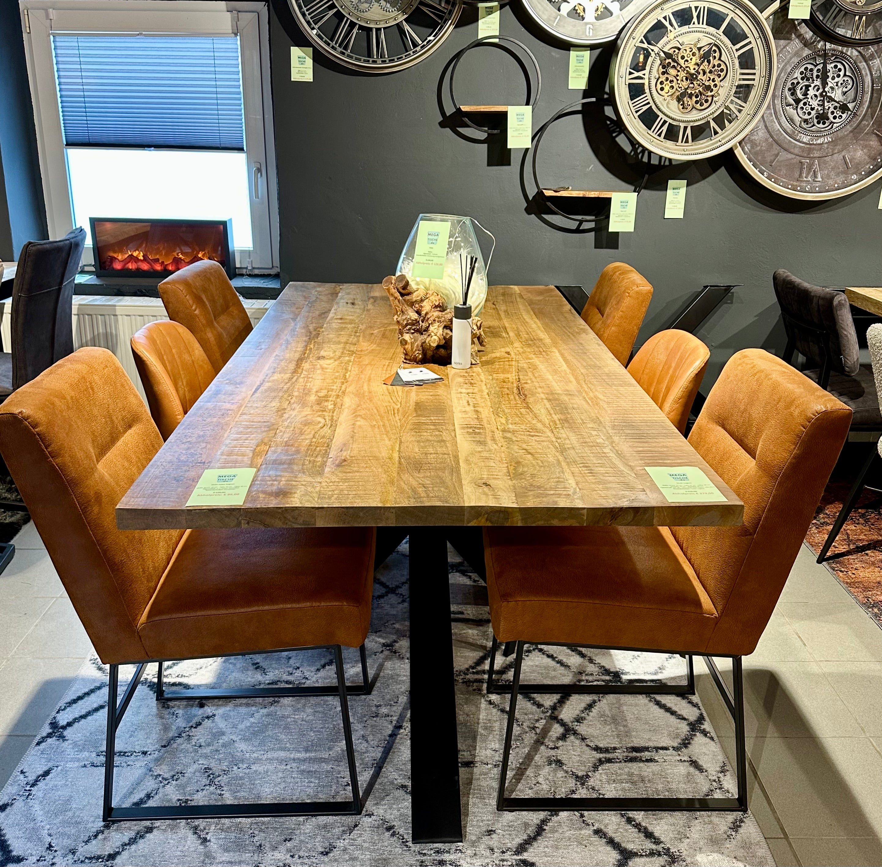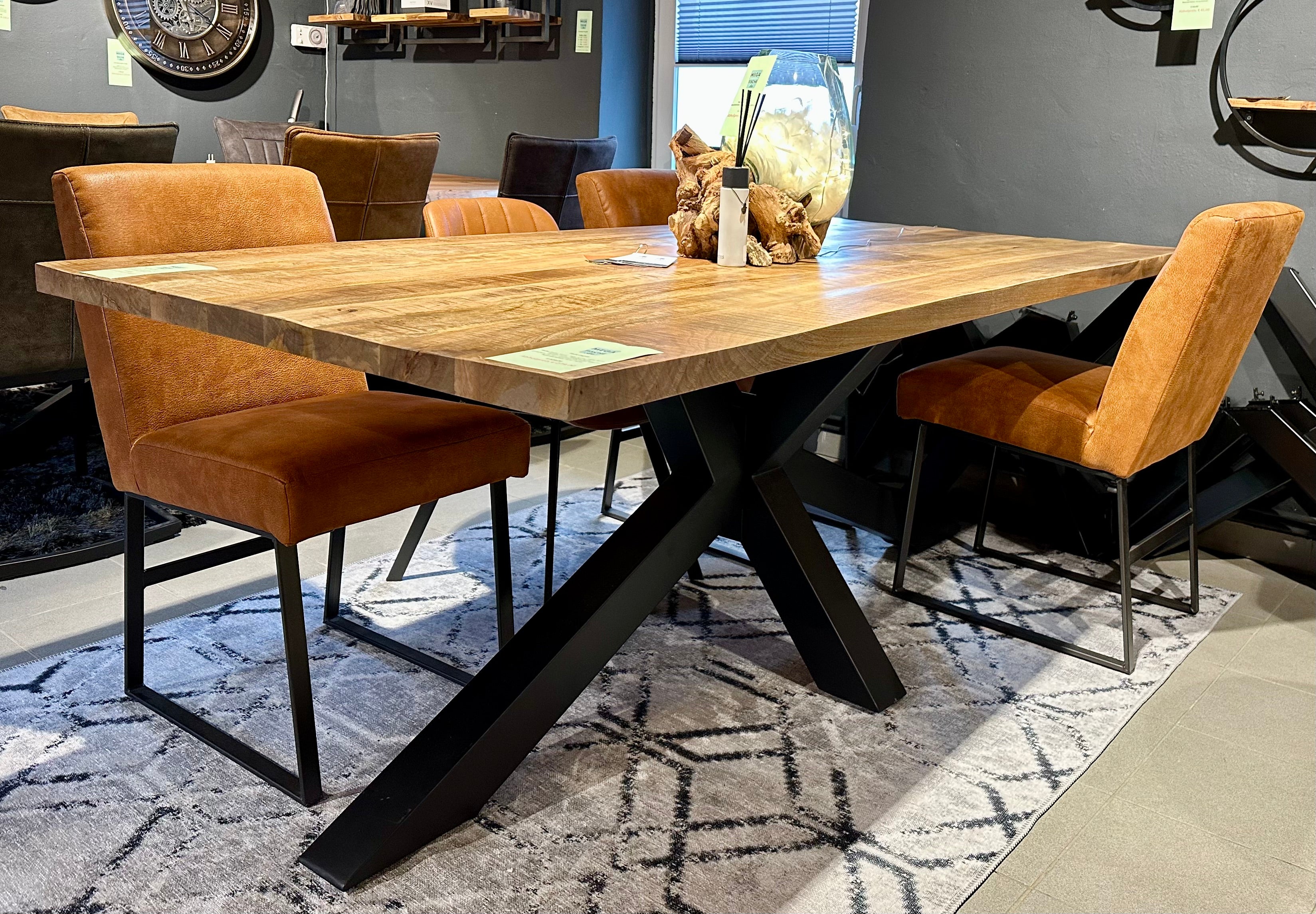 Esstisch Barutta Mango massiv 200 220 240 in 4 cm Holz Dicke mit 10x10 Spider Gestell in 3 Größen
