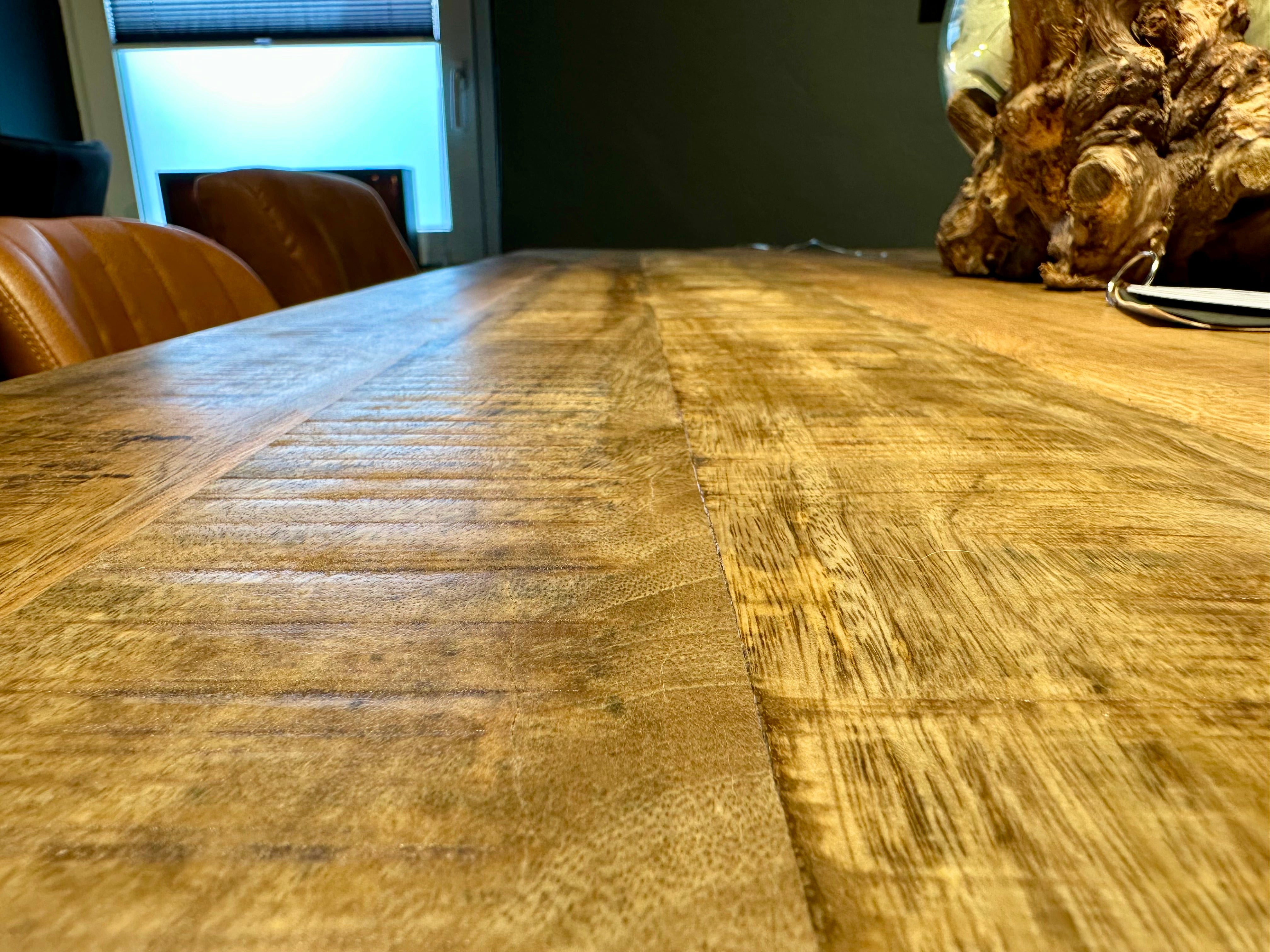 Dieser Esstisch Barutta - ist aus massiven Mangoholz gefertigt.