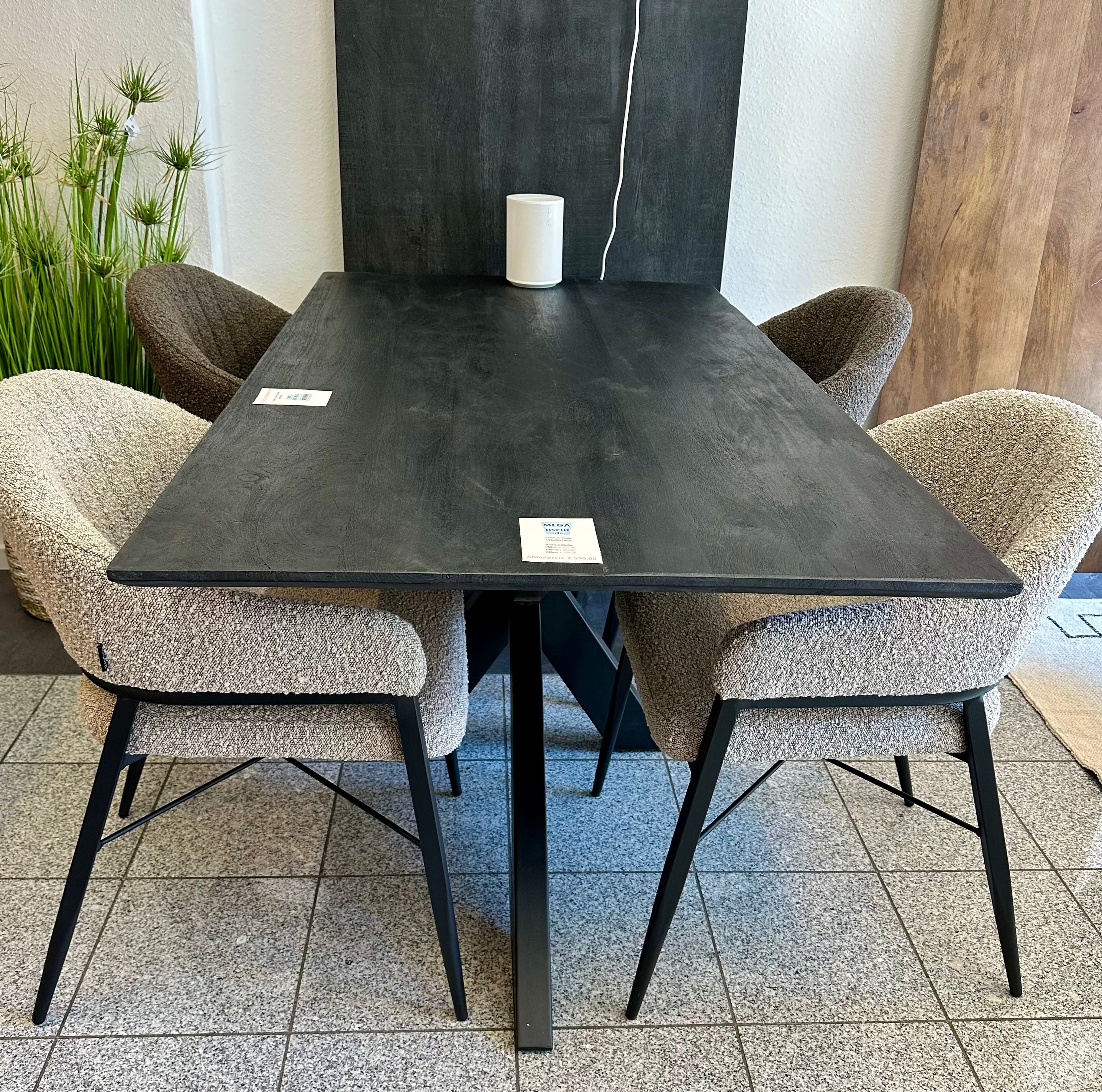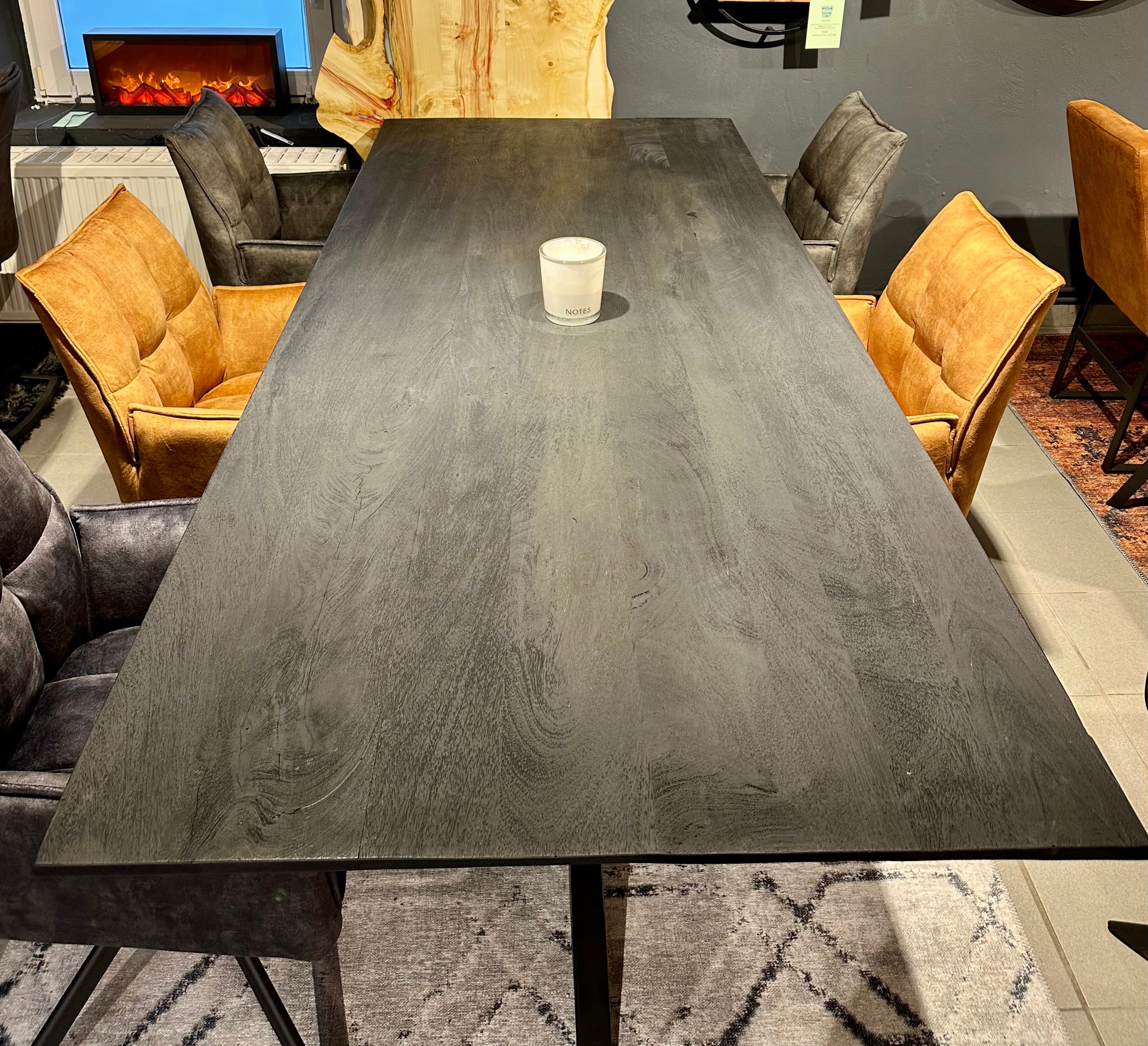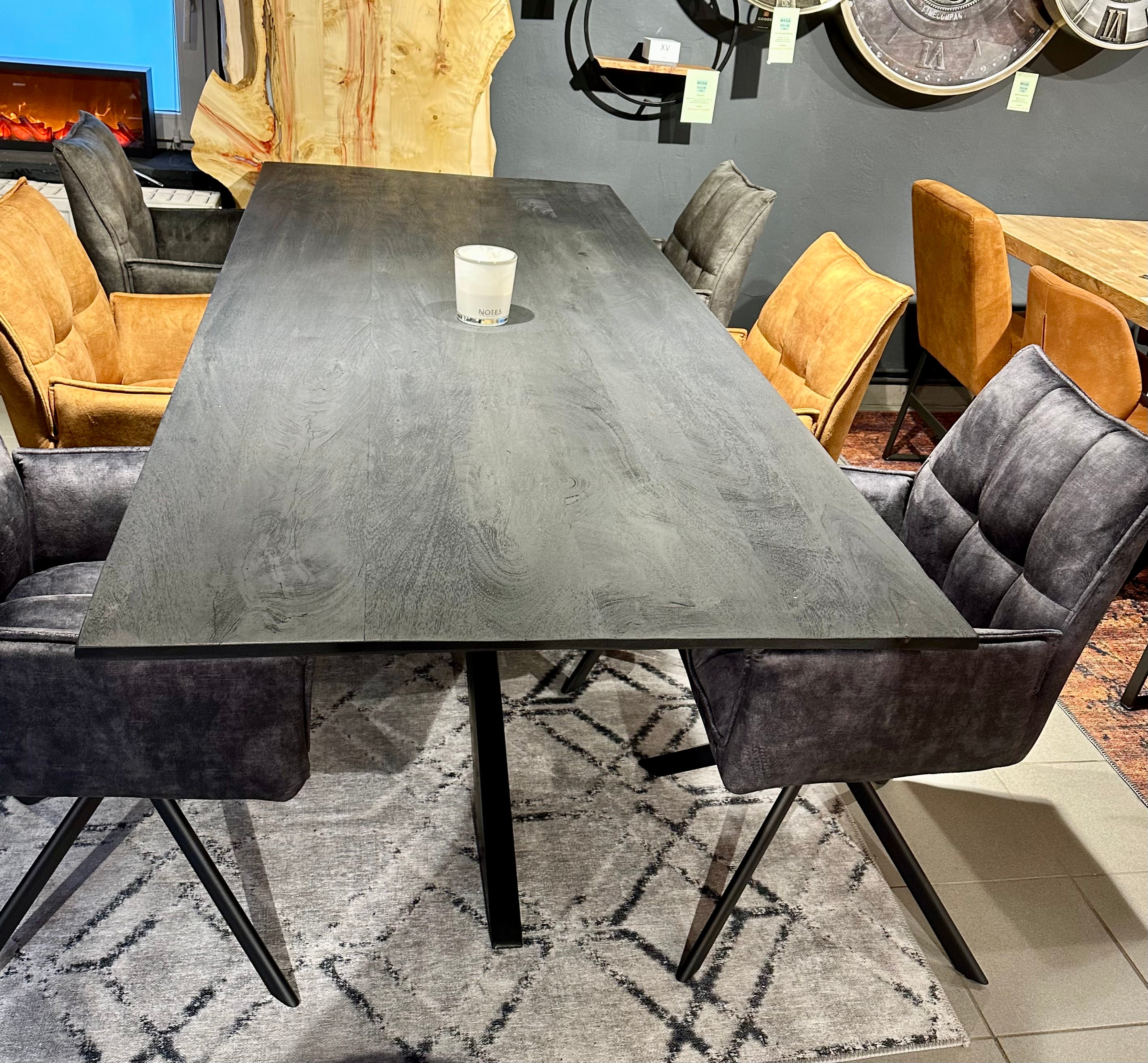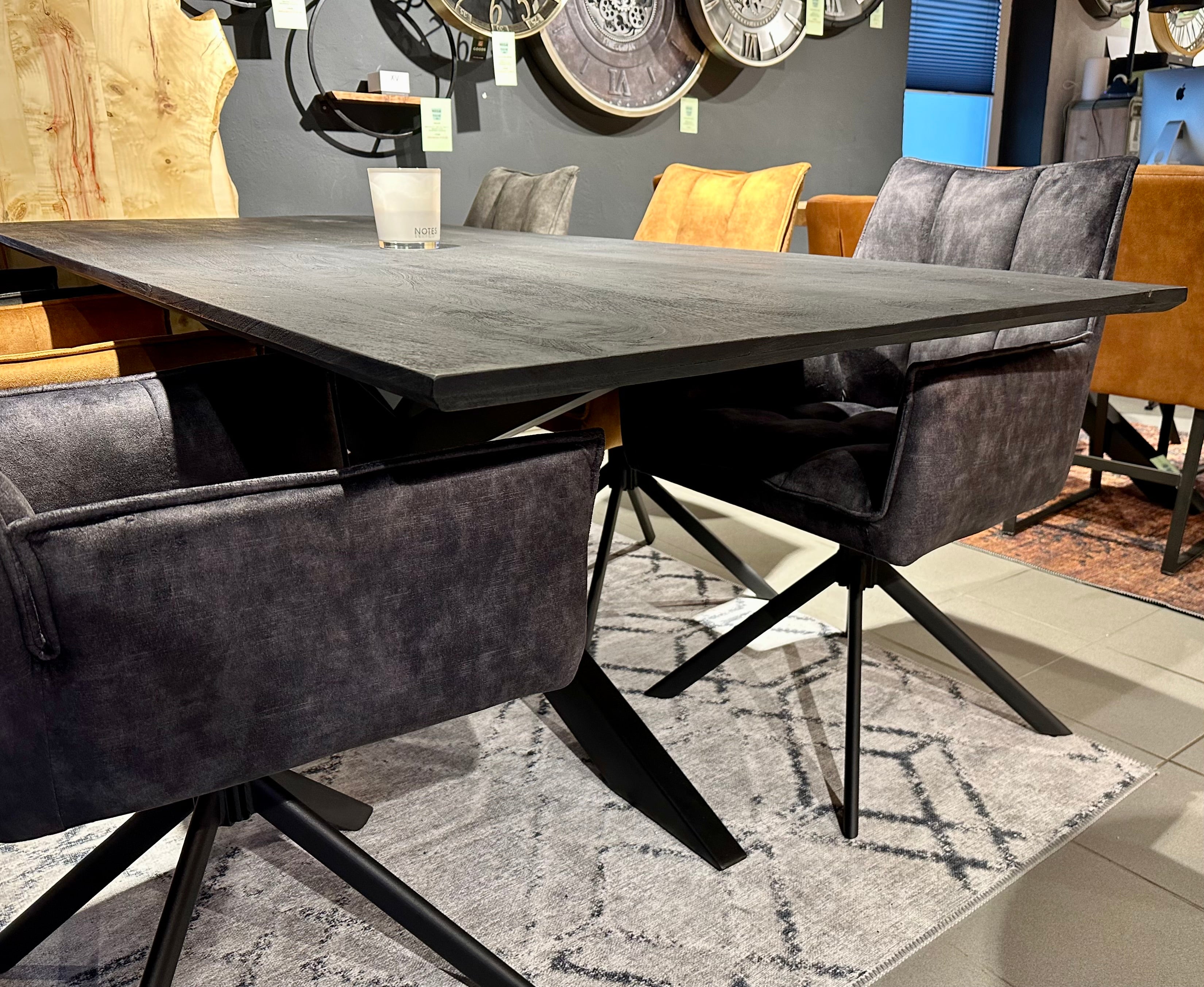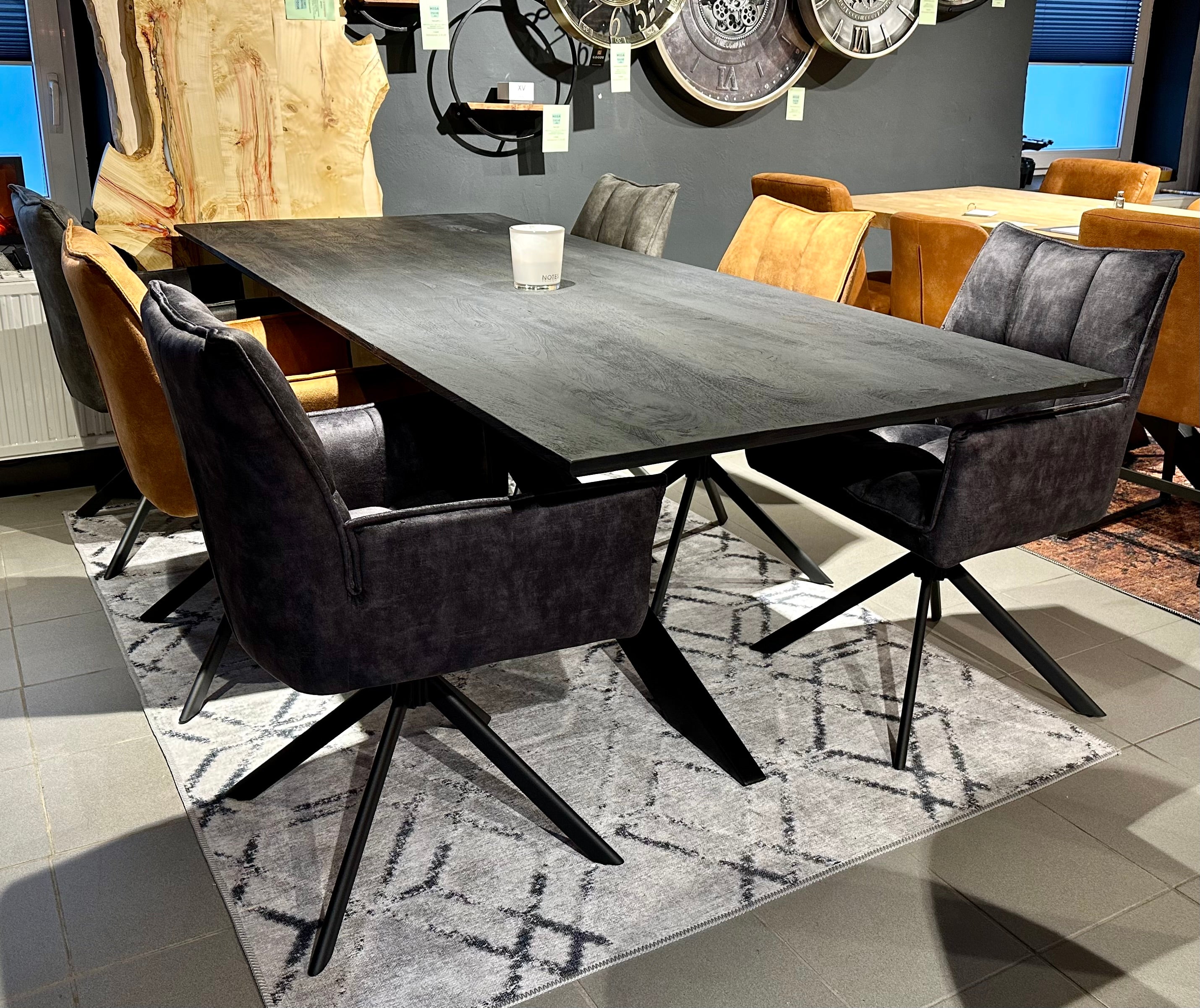 Esstisch York Mangoholz schwarz Schweizer Kante mit Spider Gestell 4 Größen