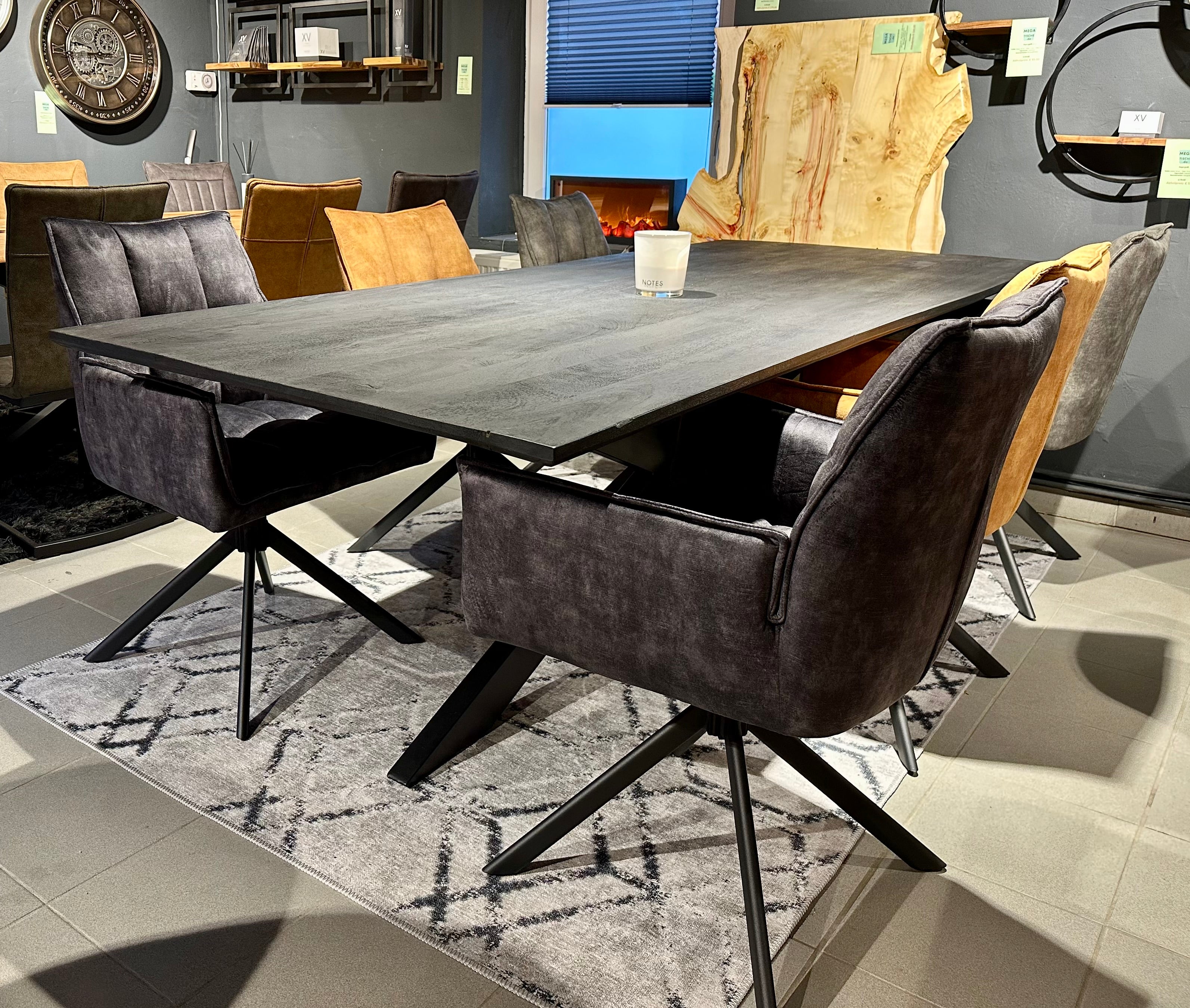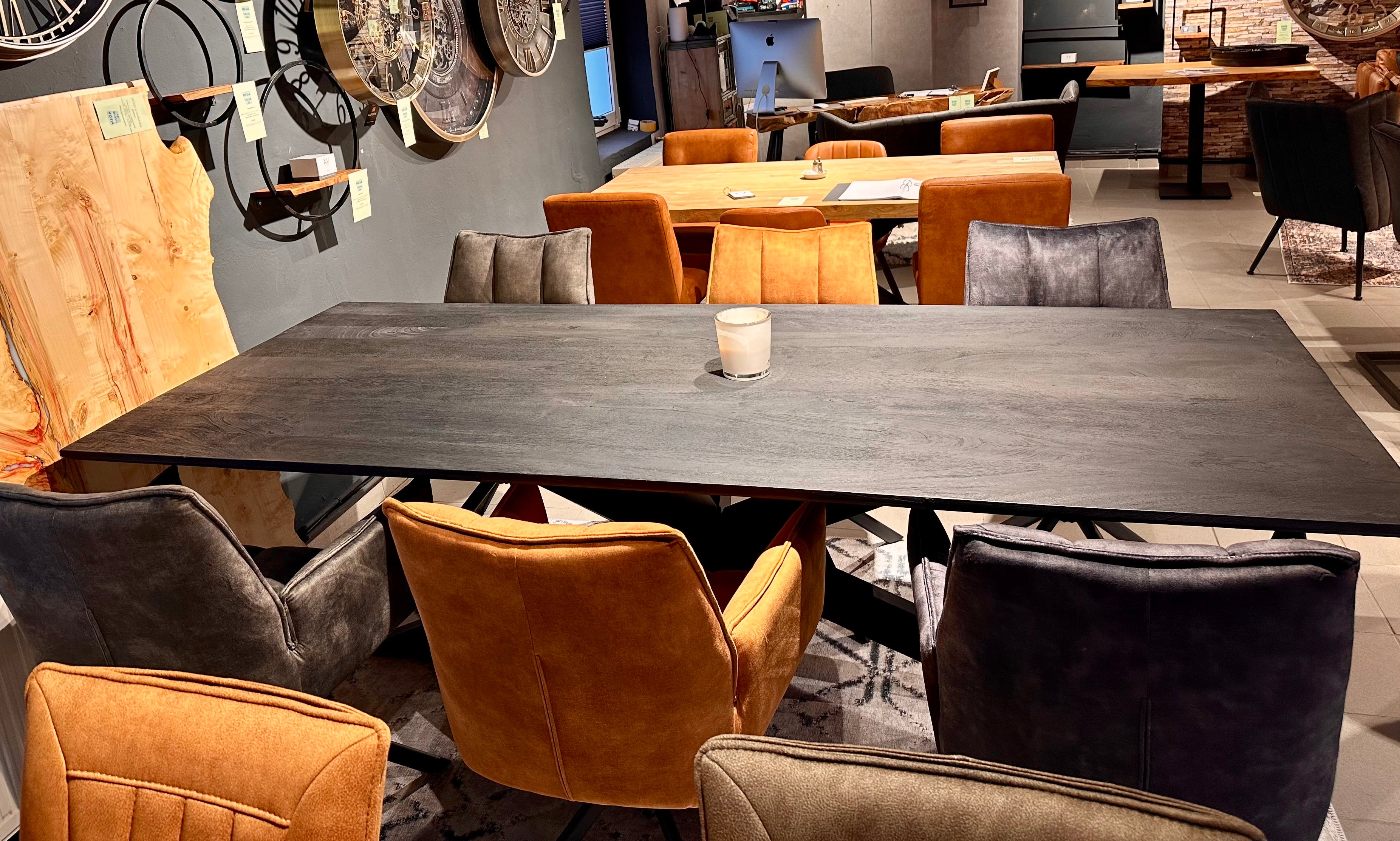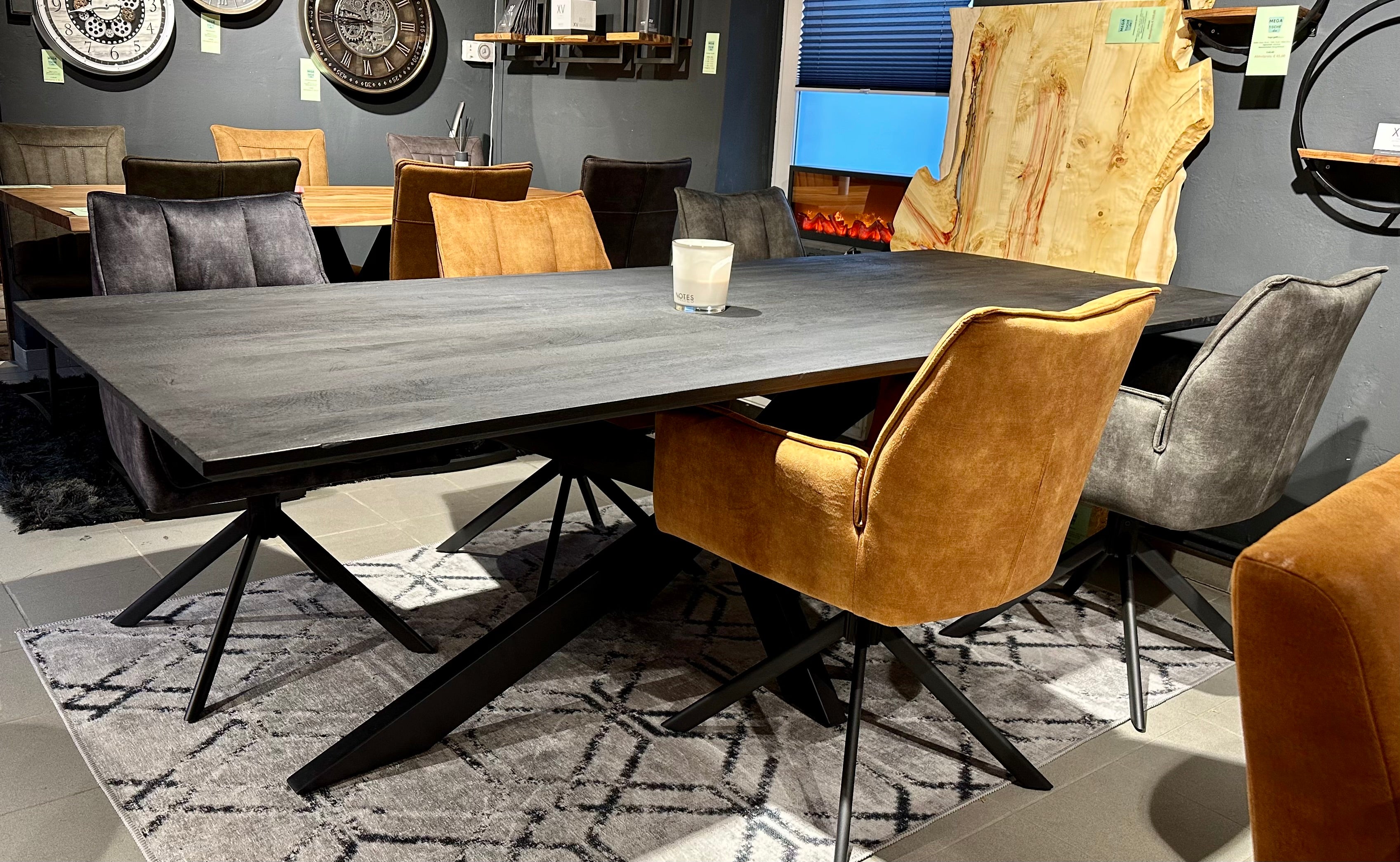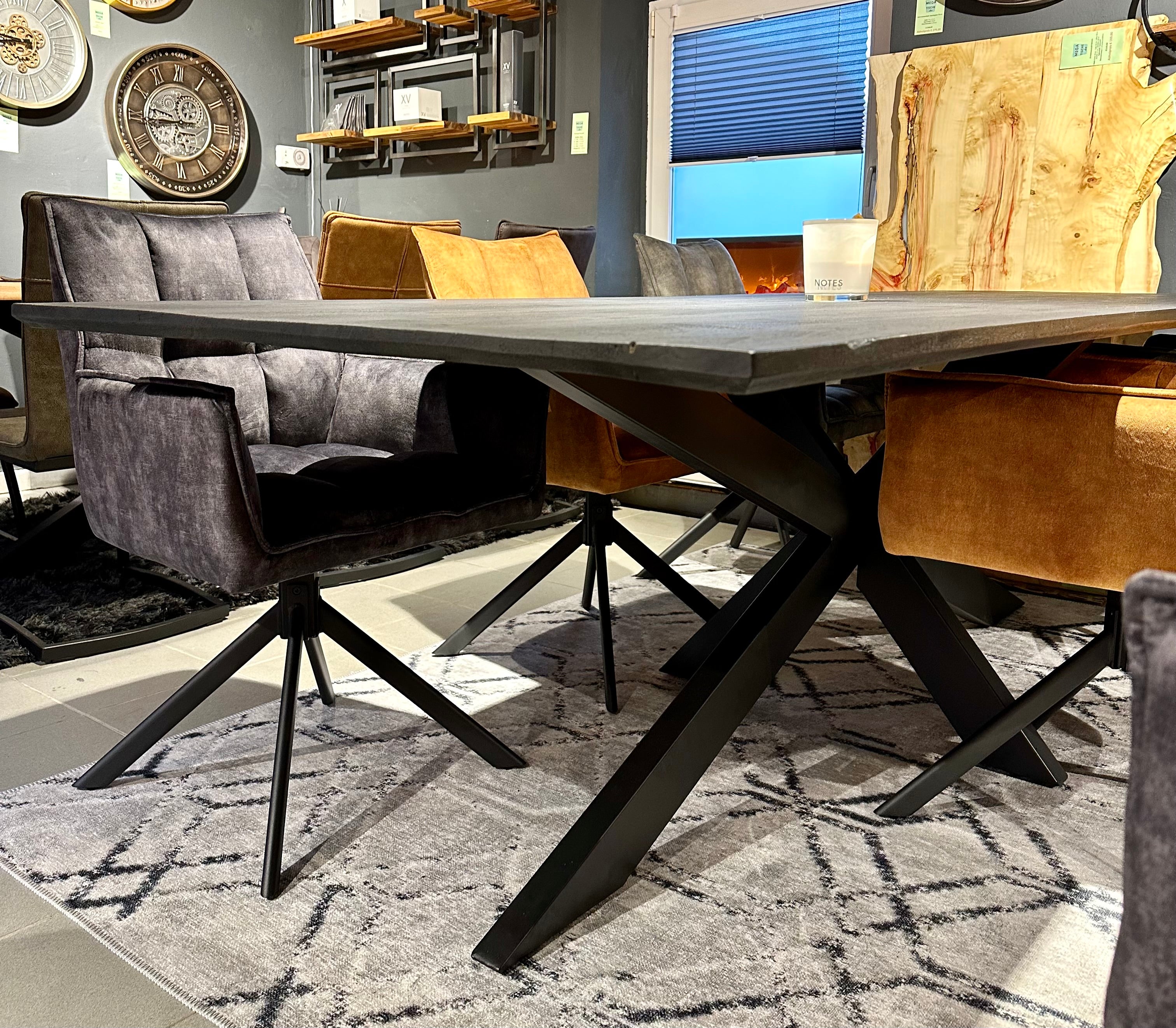 Esstisch York Mangoholz schwarz Schweizer Kante mit Spider Gestell 4 Größen