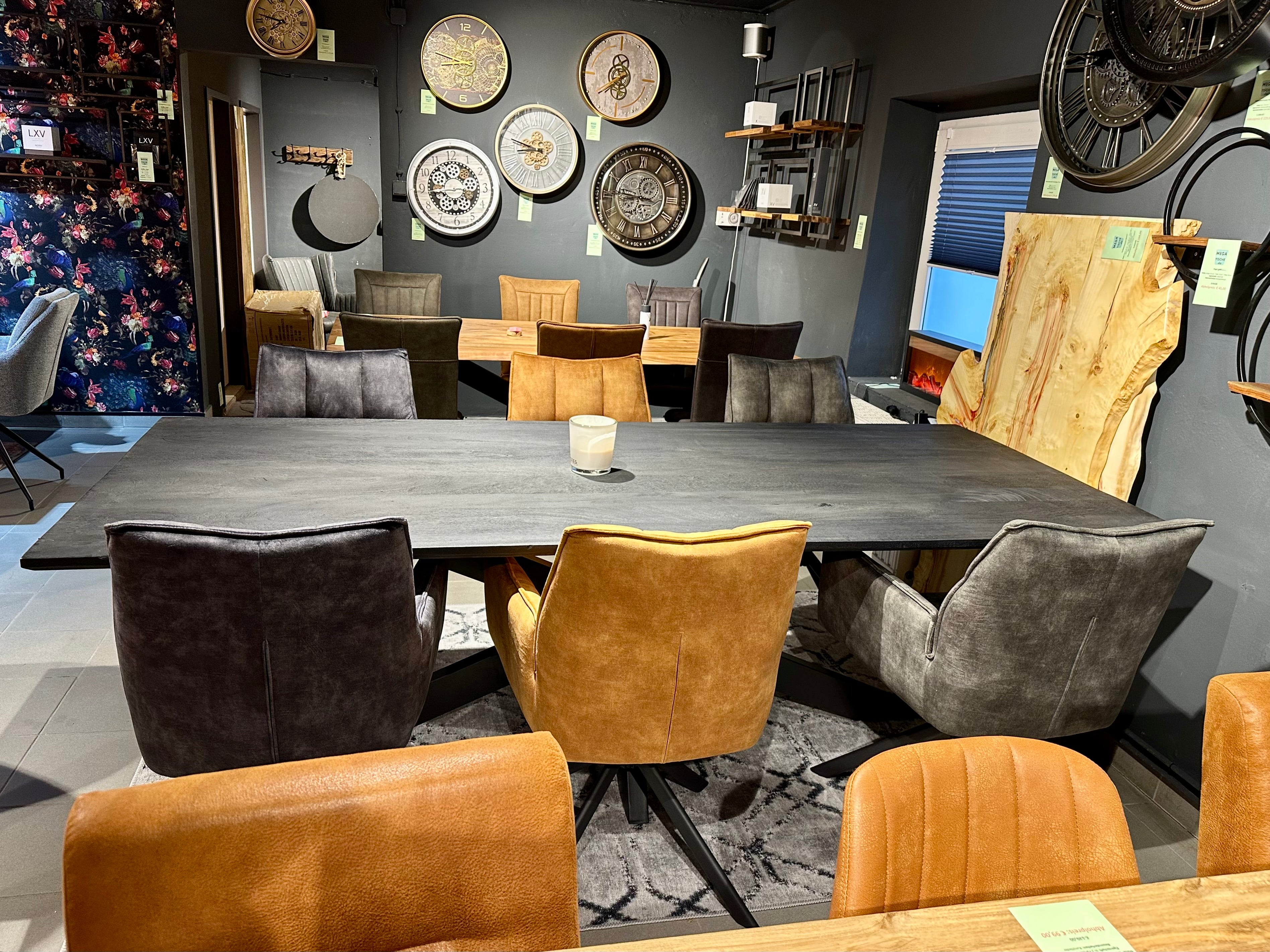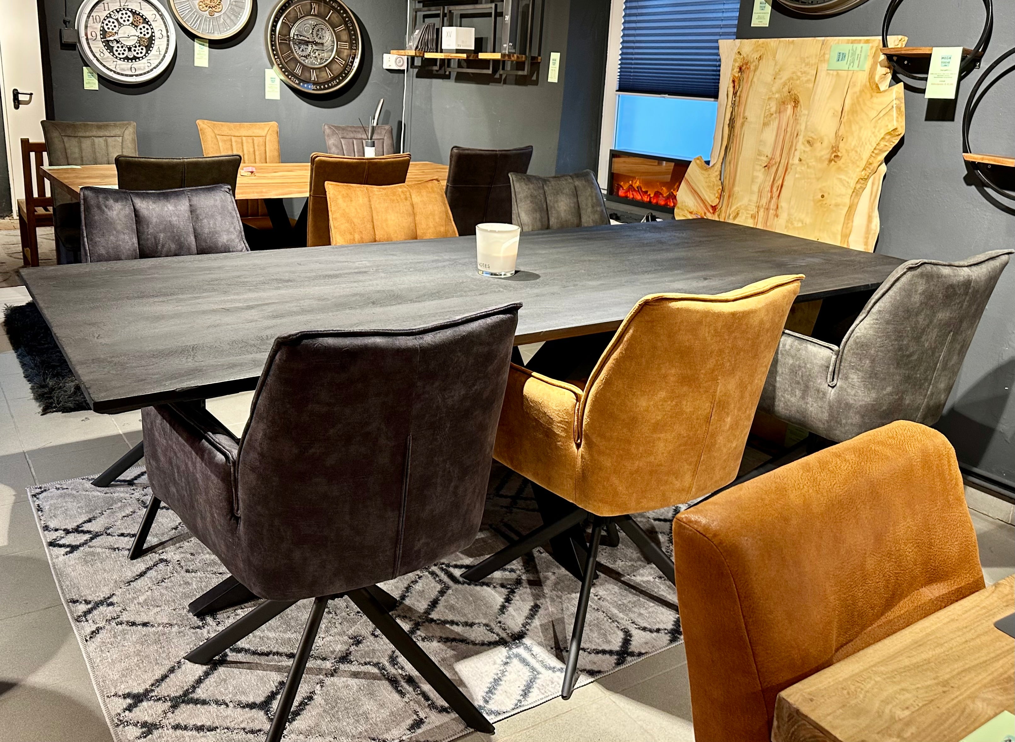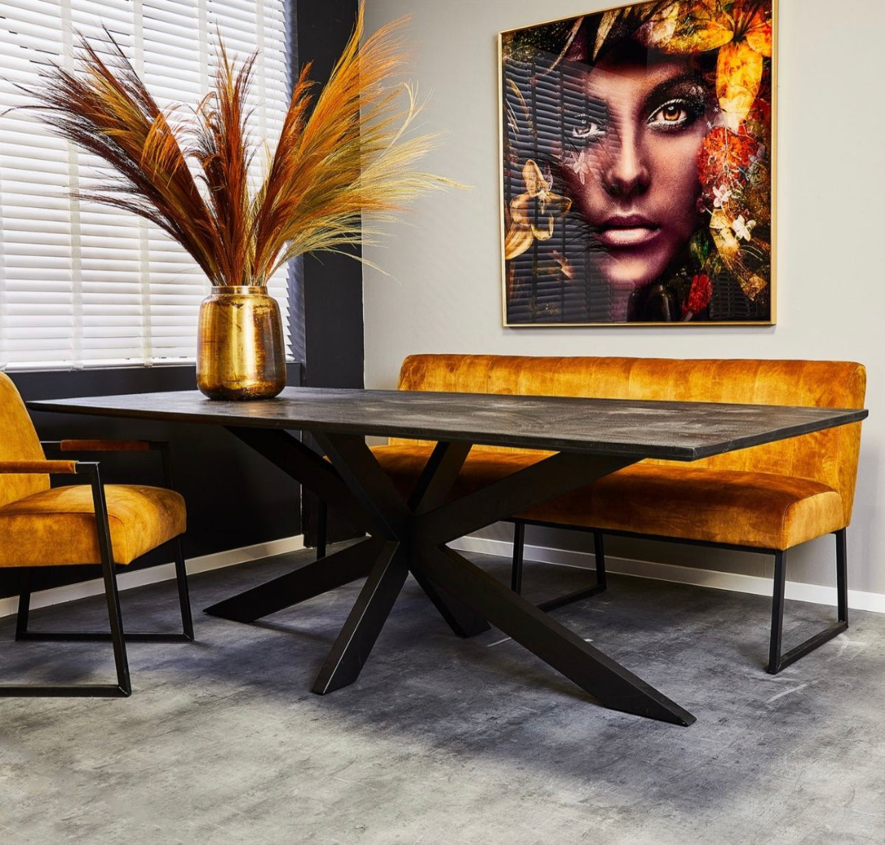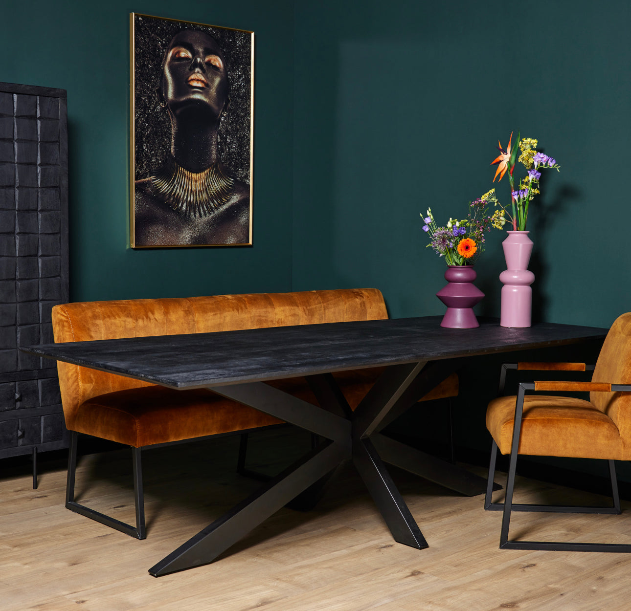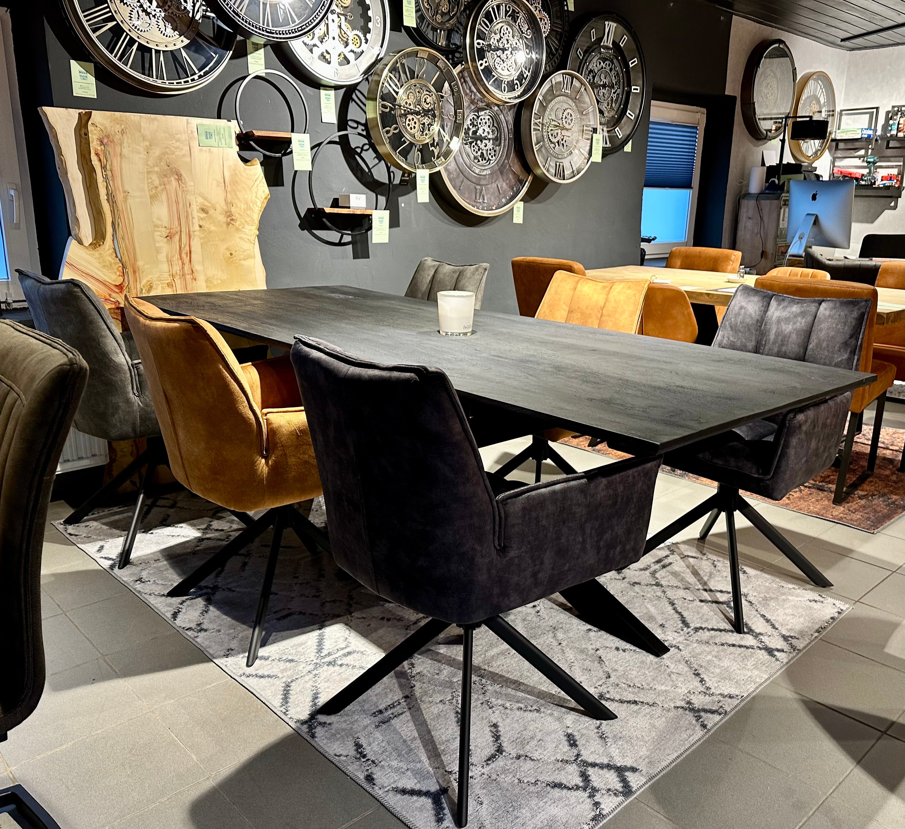 Esstisch York Mangoholz schwarz Schweizer Kante mit Spider Gestell 4 Größen