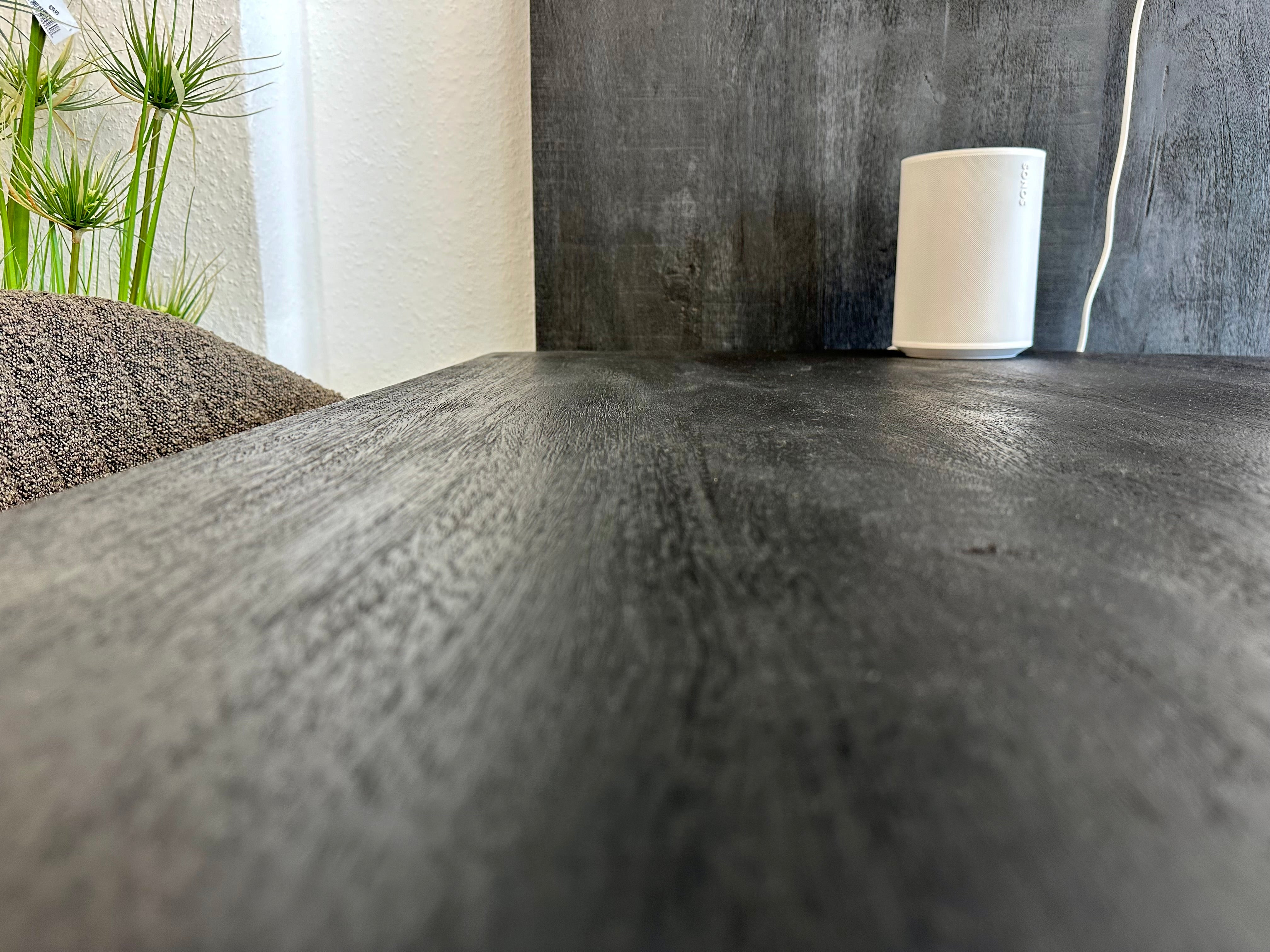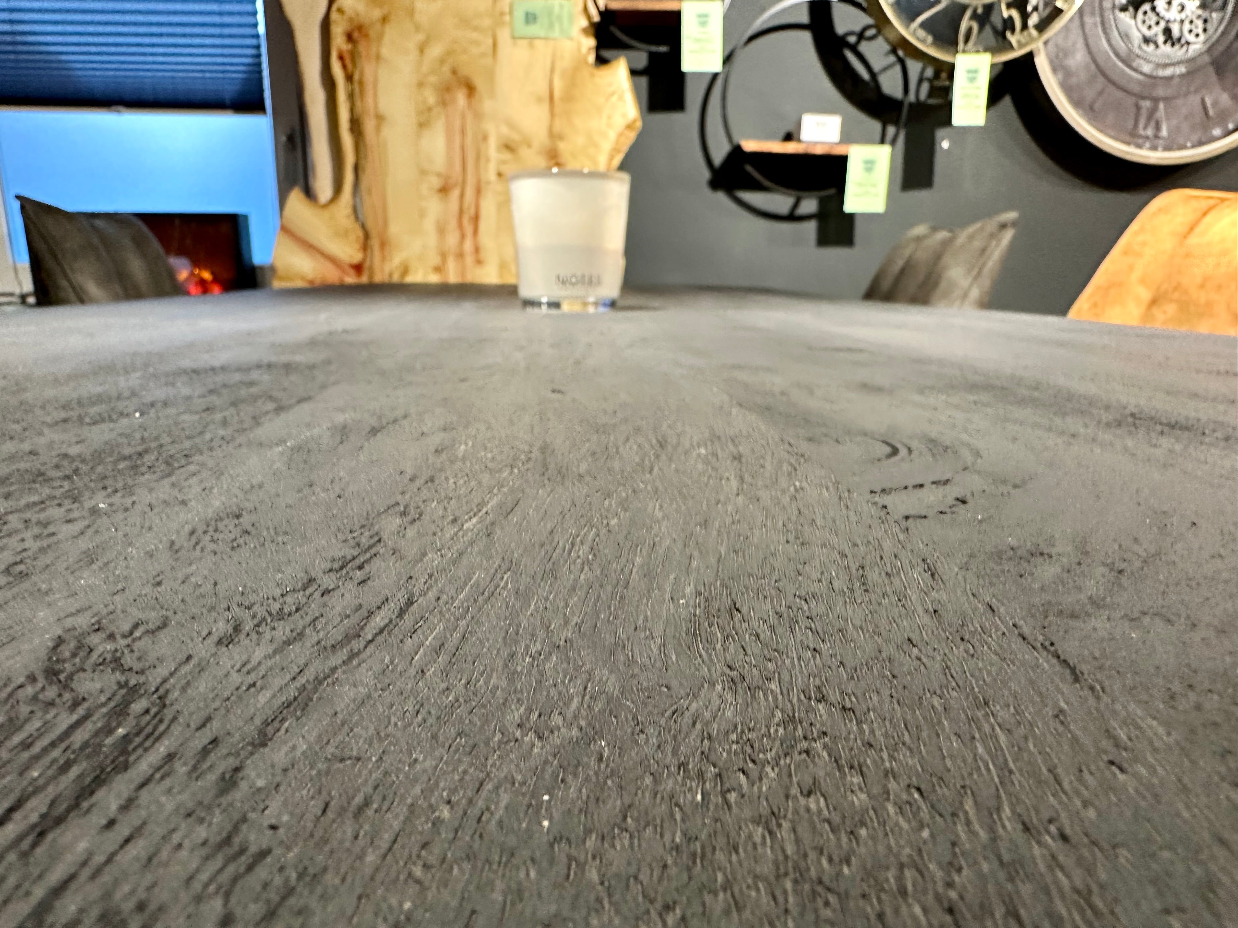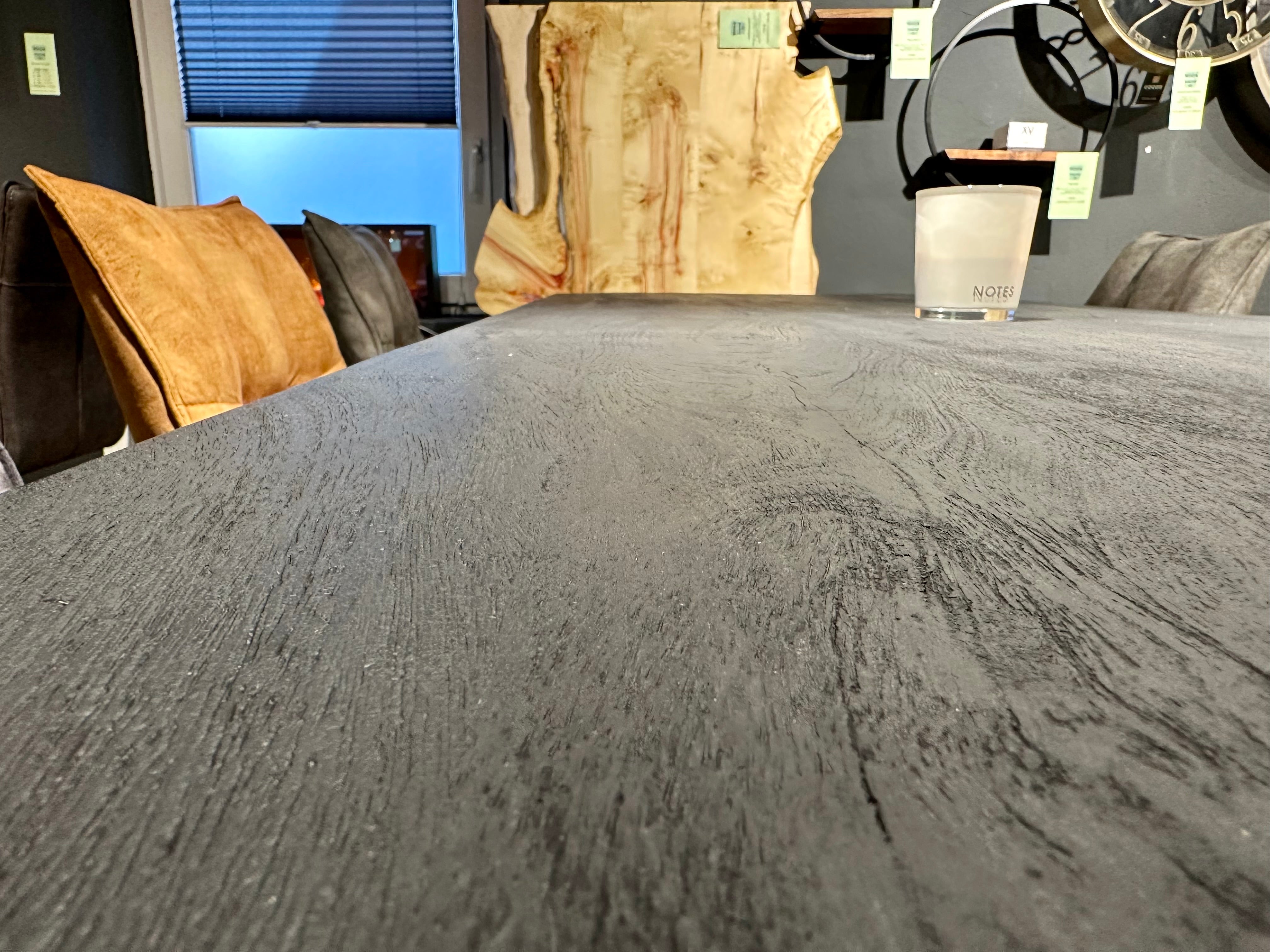 - 3 cm Tischplatte Mango schwarz lackiert massiv (nicht glatt geschliffen sondern rustikal uneben)