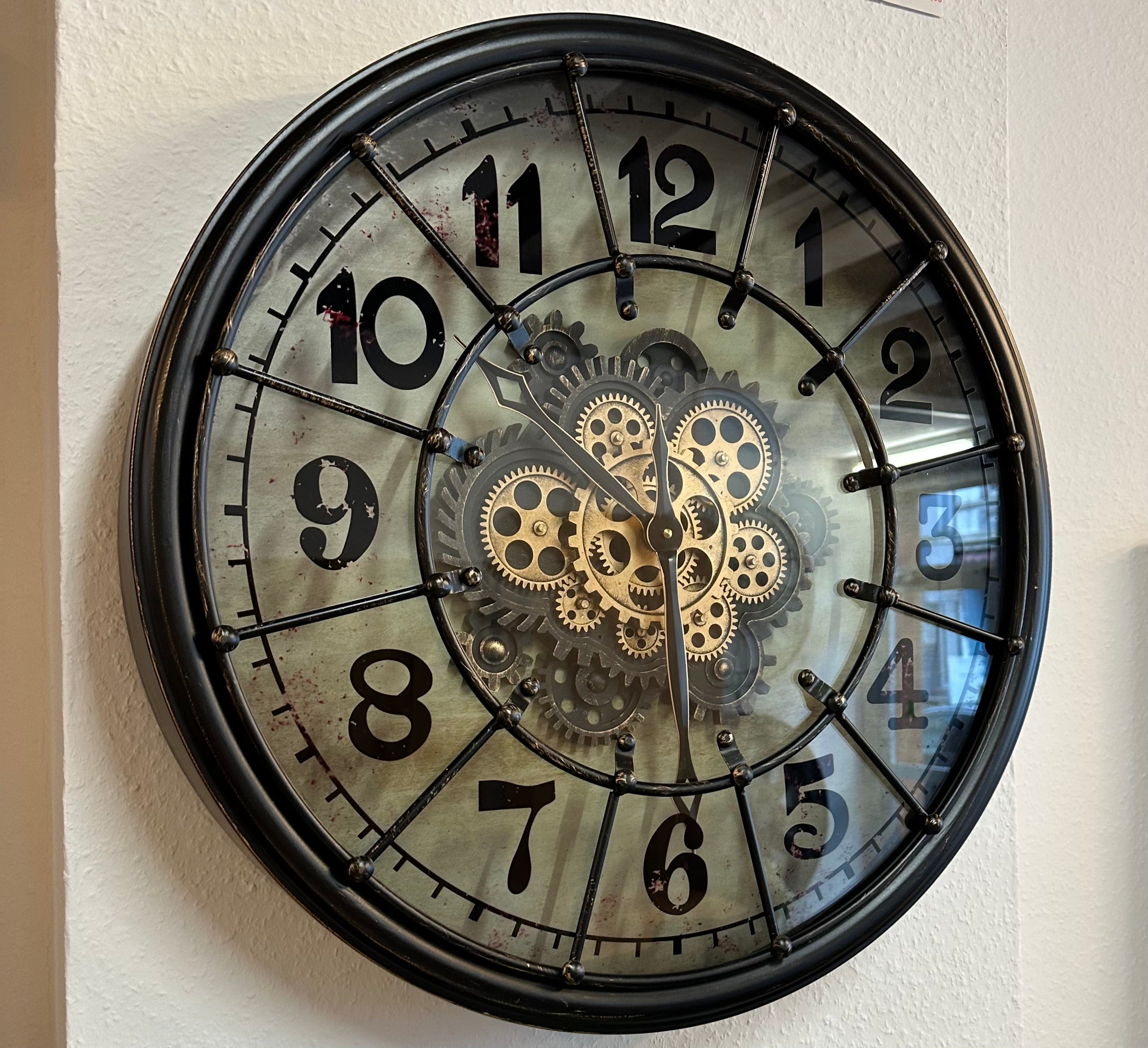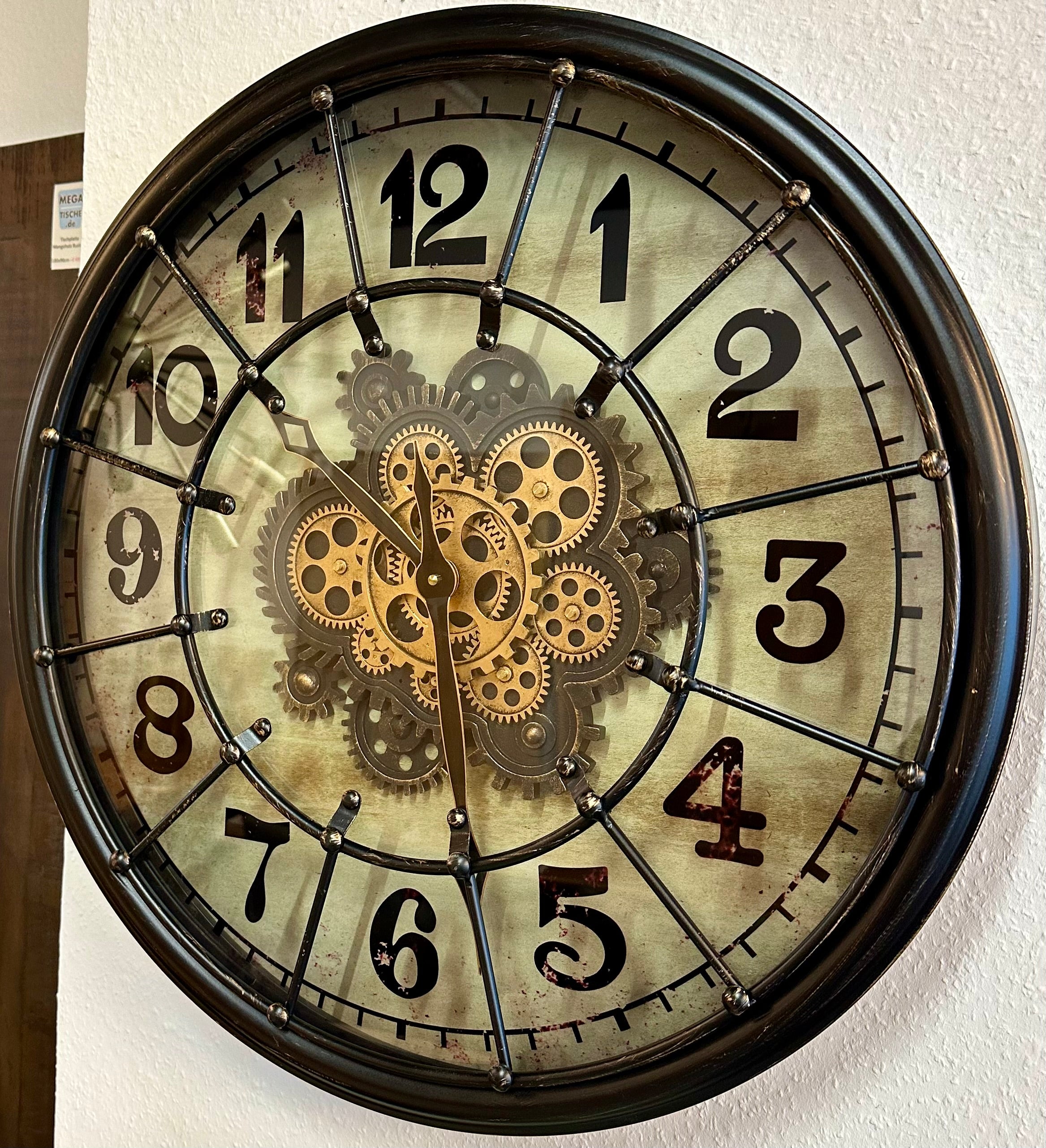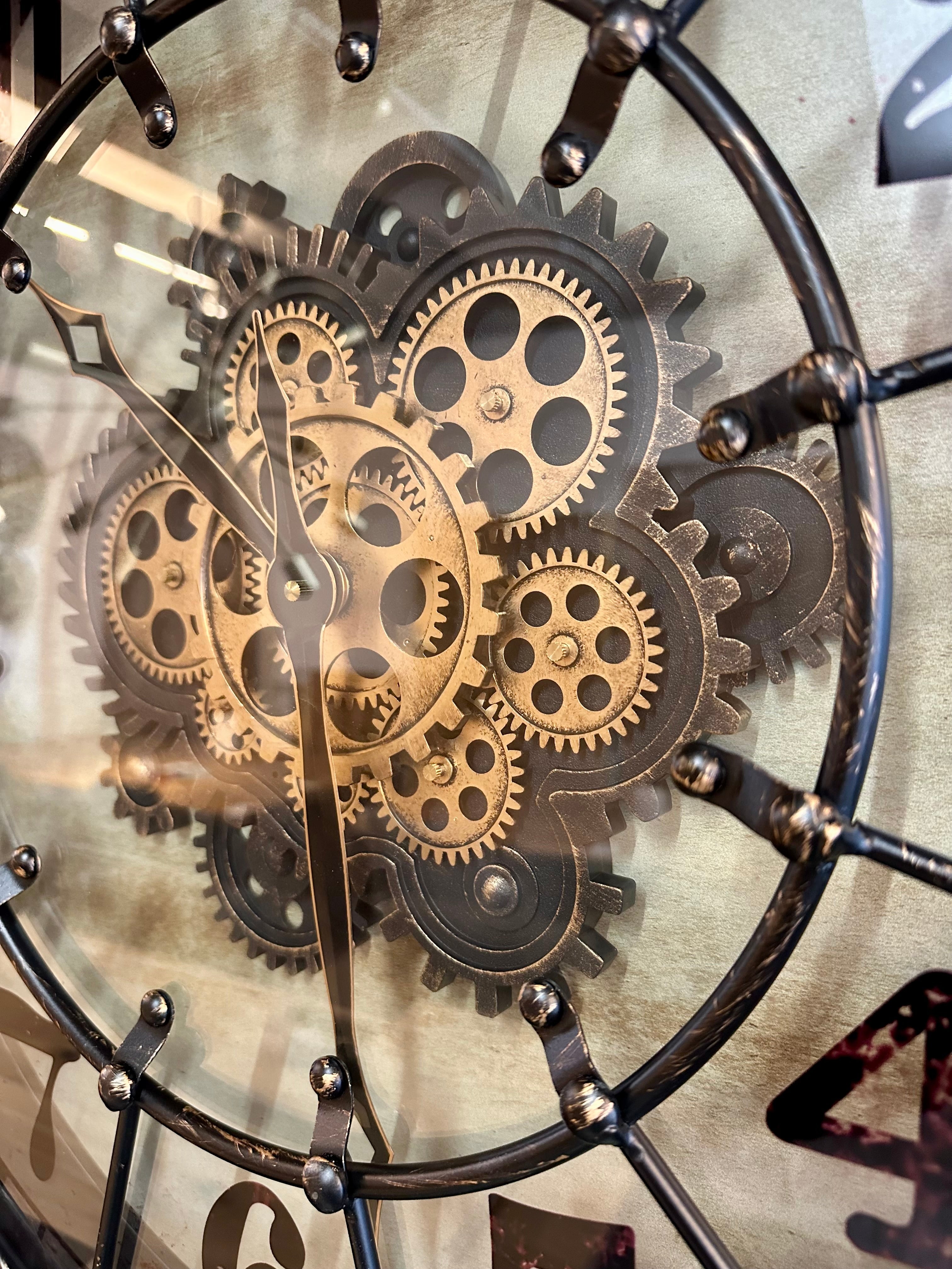 Die Zahnraduhr ist laufruhig und hat ein Quartz Uhrwerk. Sie wird von 3x AAA Batterien betrieben.