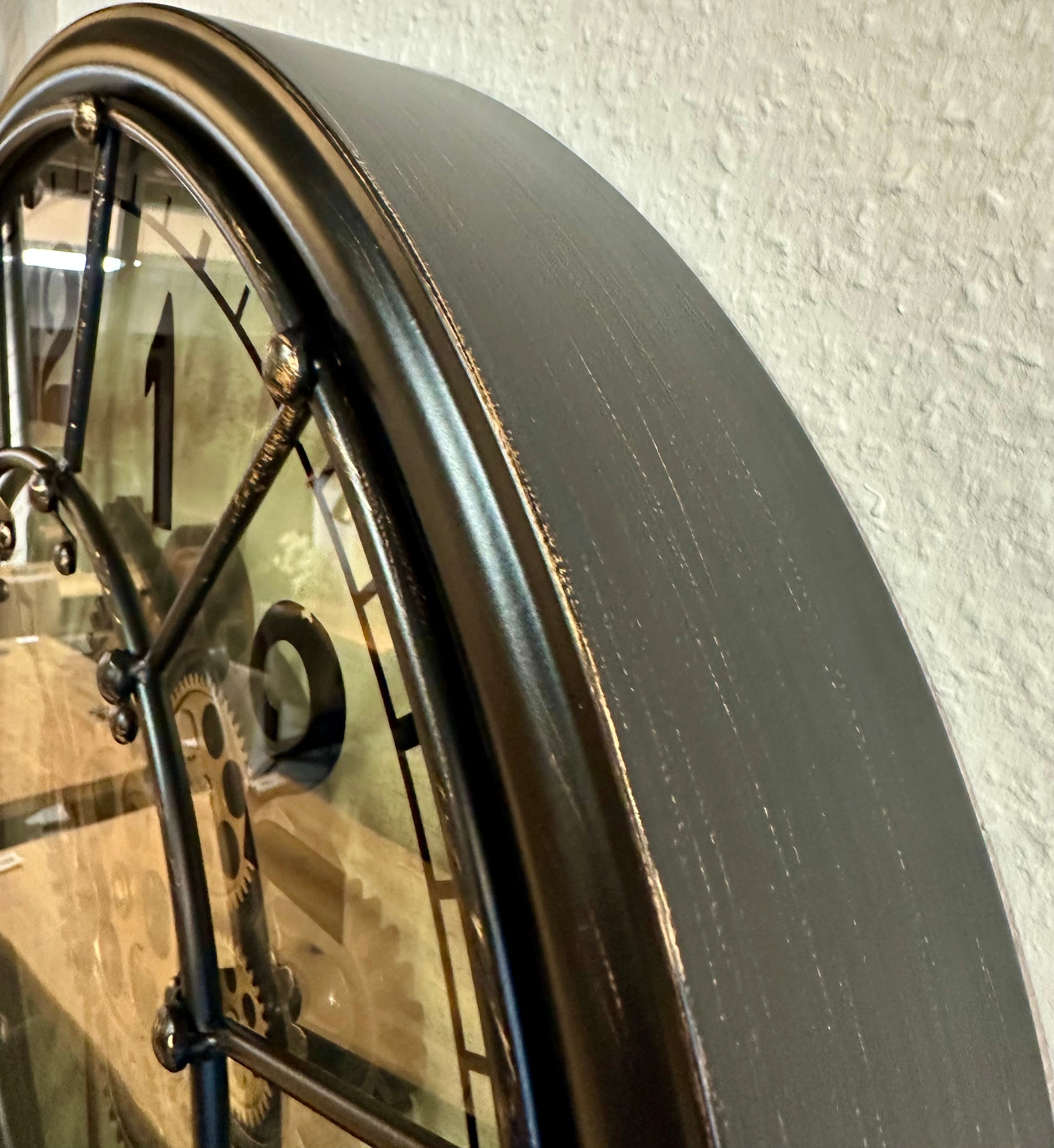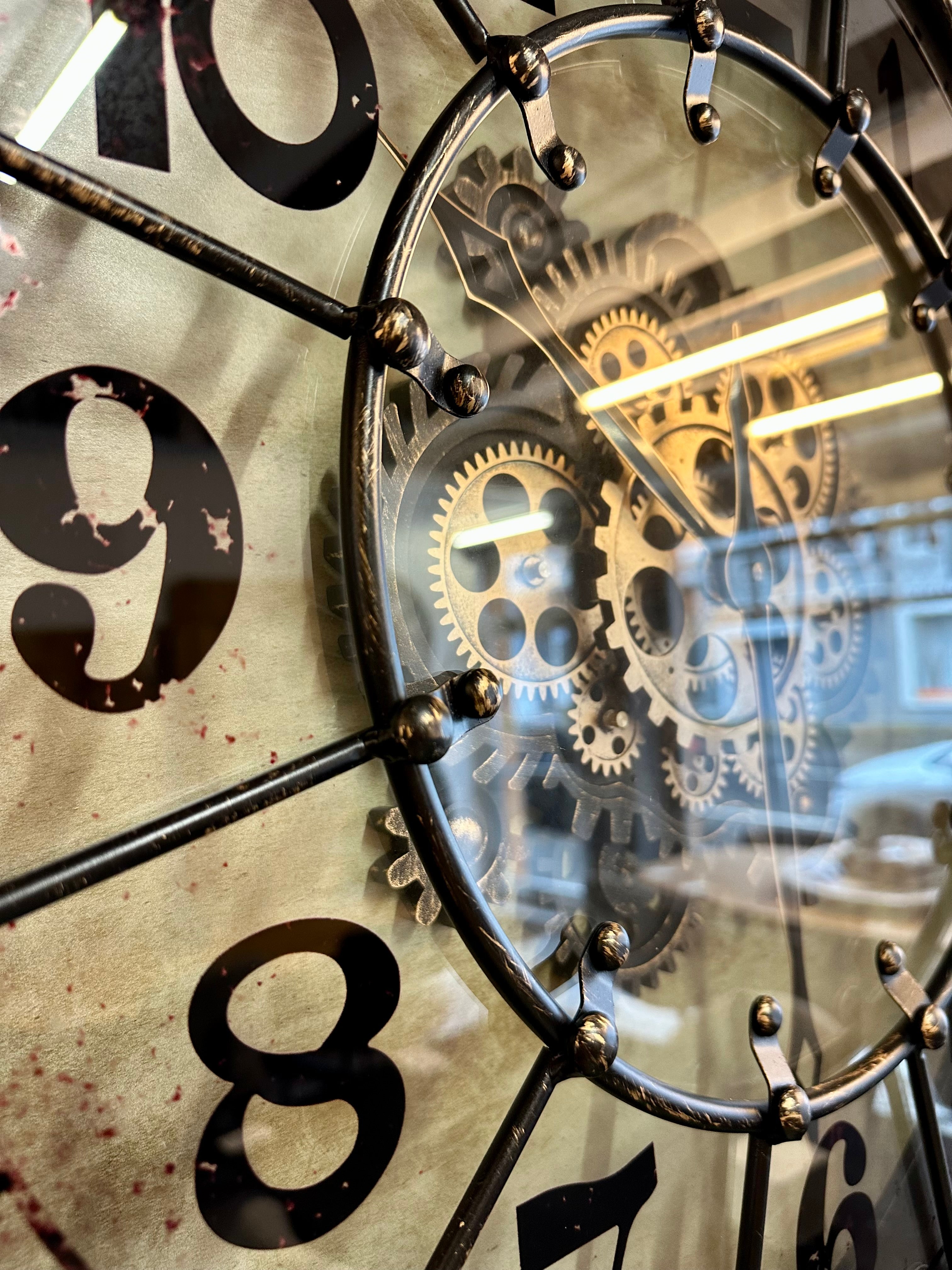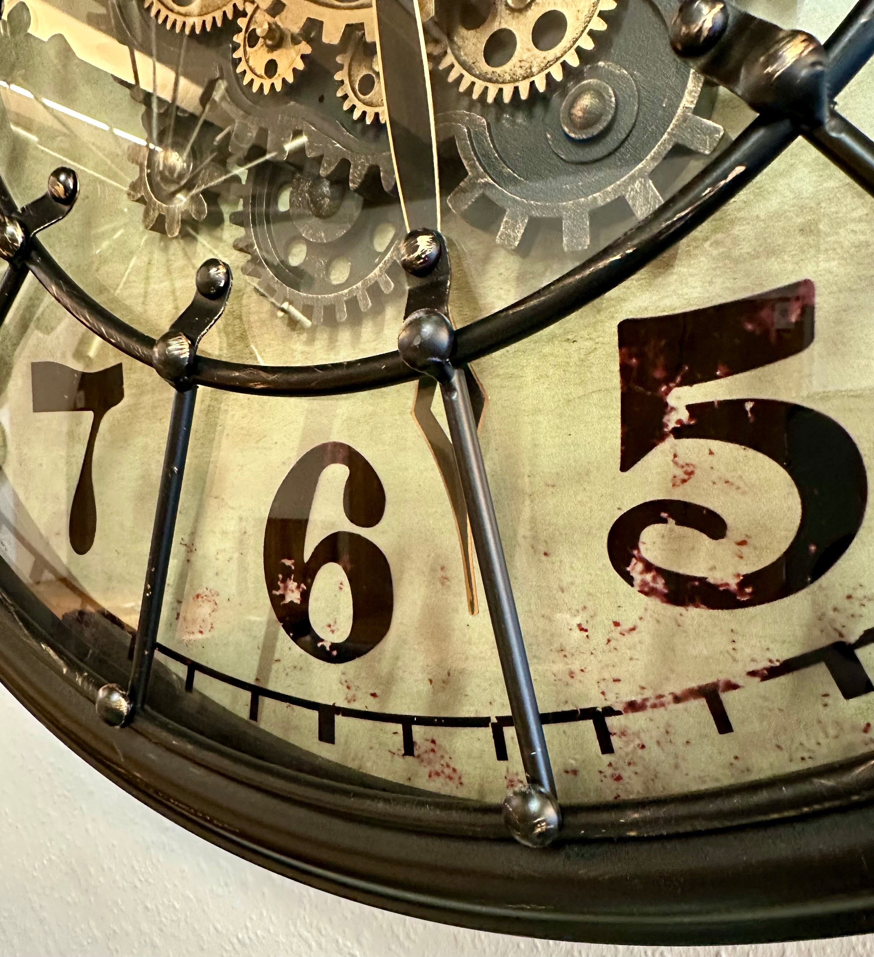 Die Zahnraduhr ist laufruhig und hat ein Quartz Uhrwerk. Sie wird von 3x AAA Batterien betrieben.