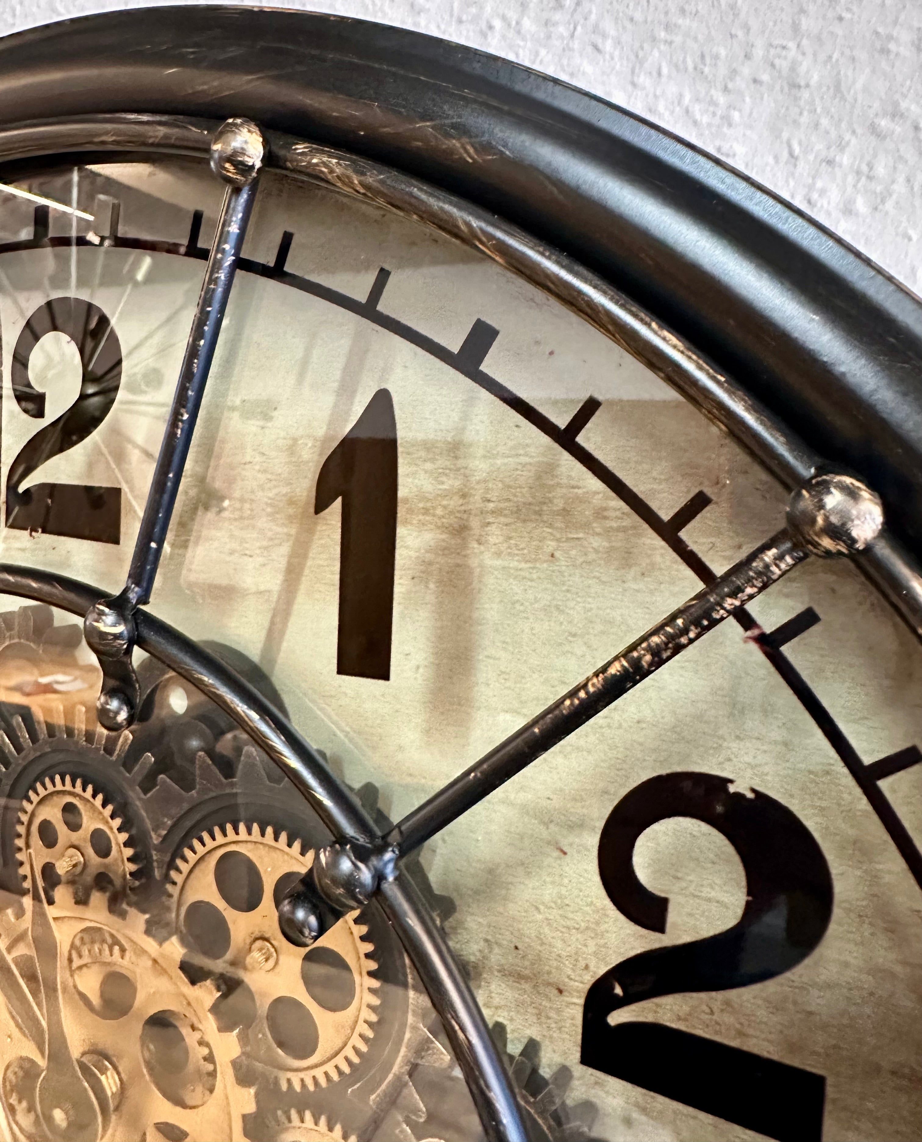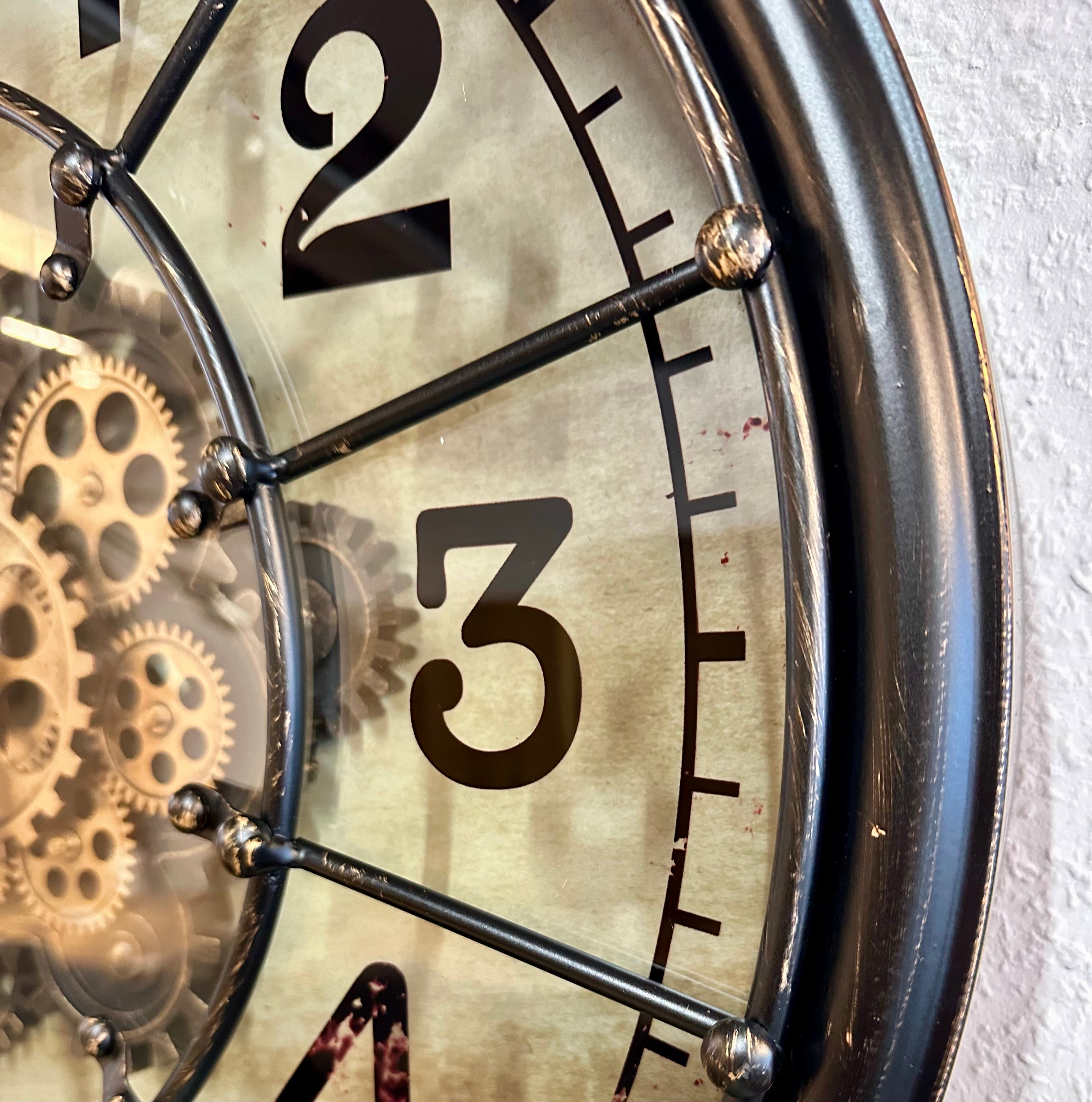 Große Wanduhr Robin Industrie Stil Zahnrad Zählwerk 60 cm Schwarz
