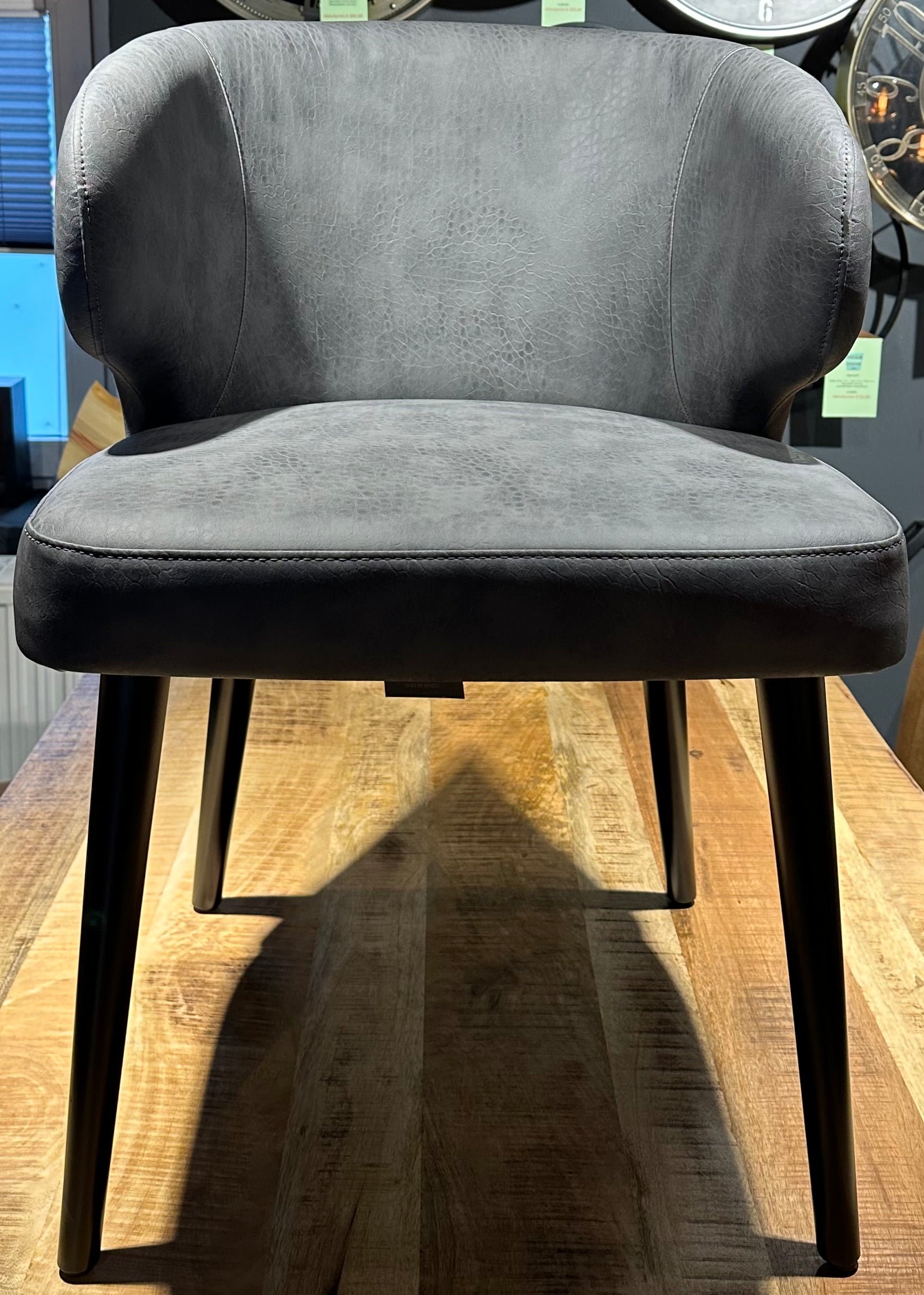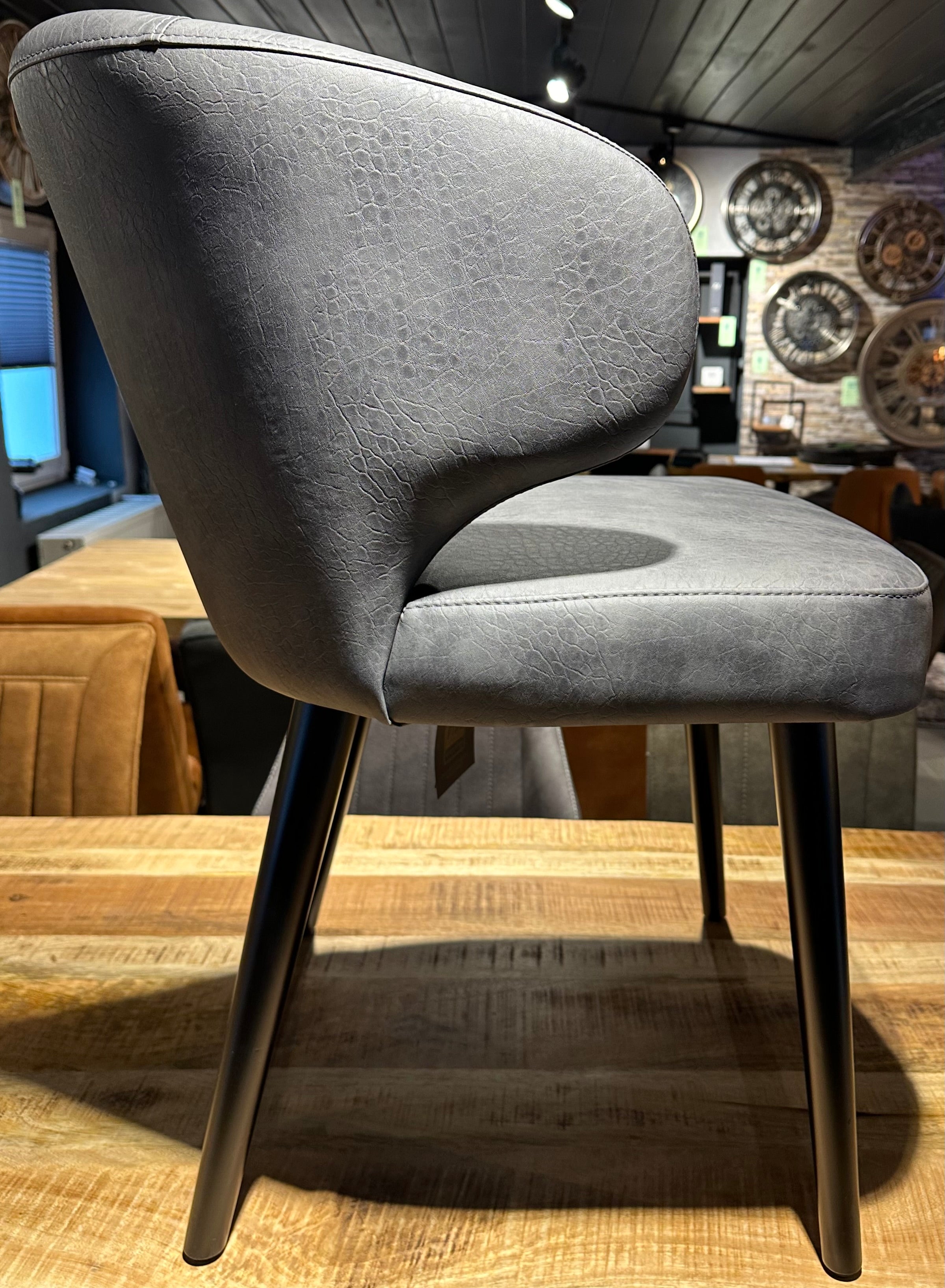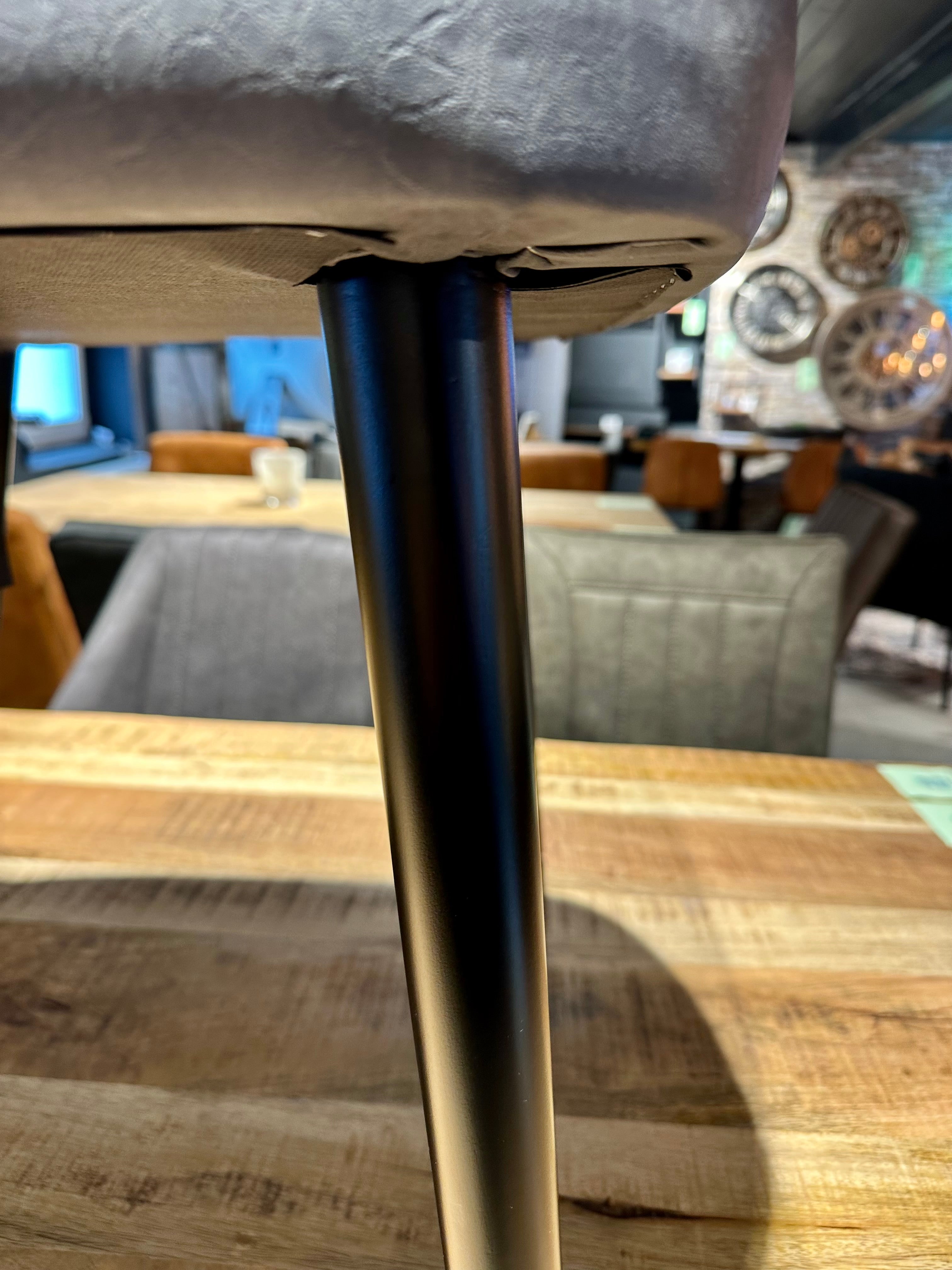 Das Gestell ist schwarz pulverbeschichtet - es gibt den Stuhl auch in einem trendeigen Stoffdesign und in einem terracotta Kunstleder.