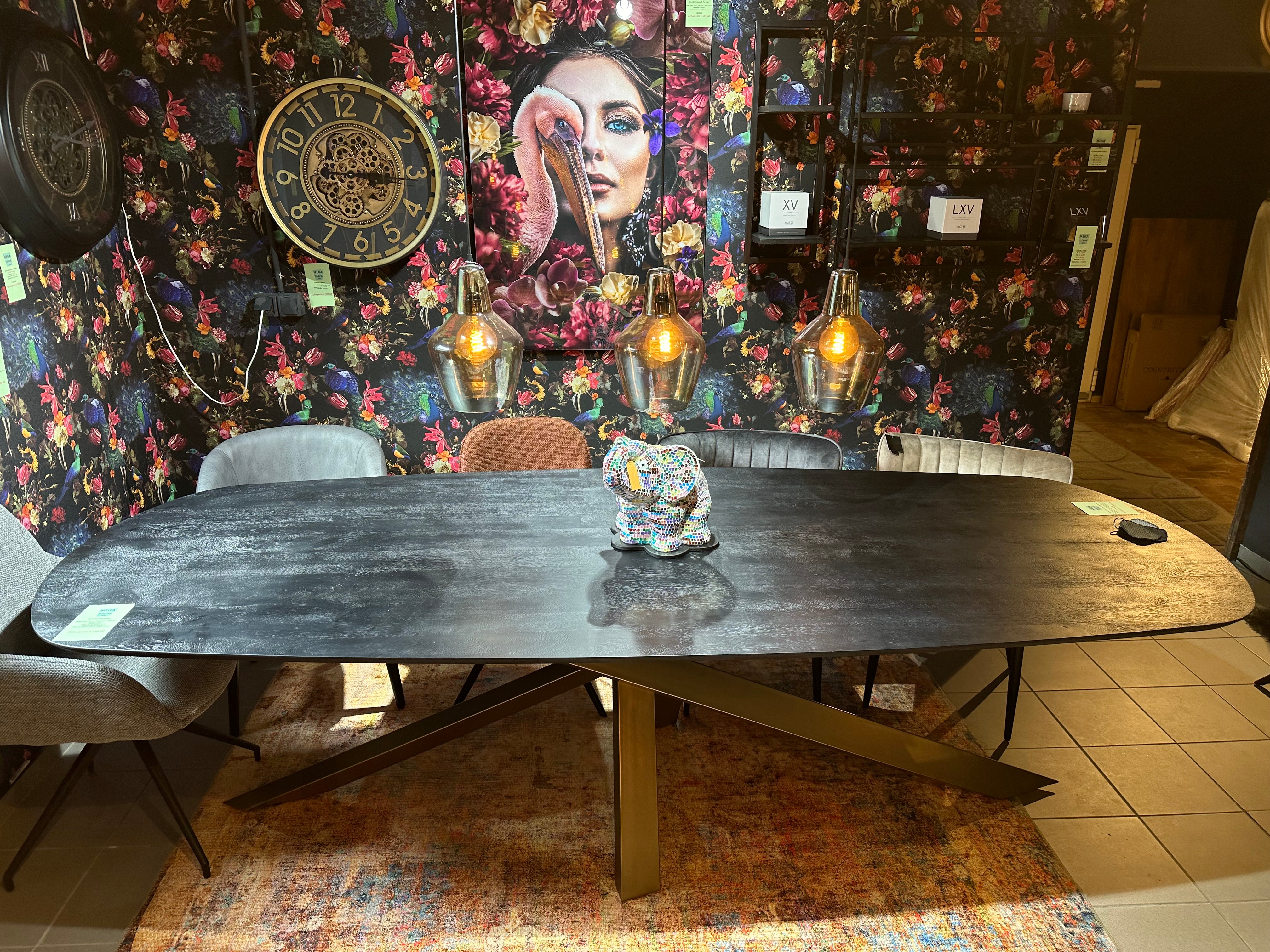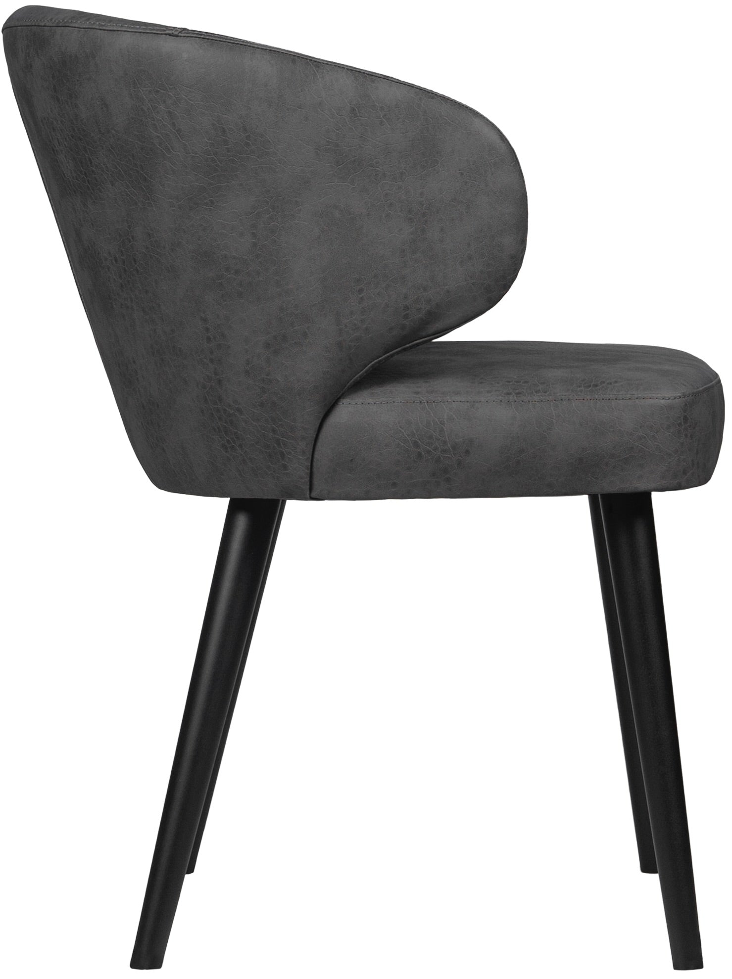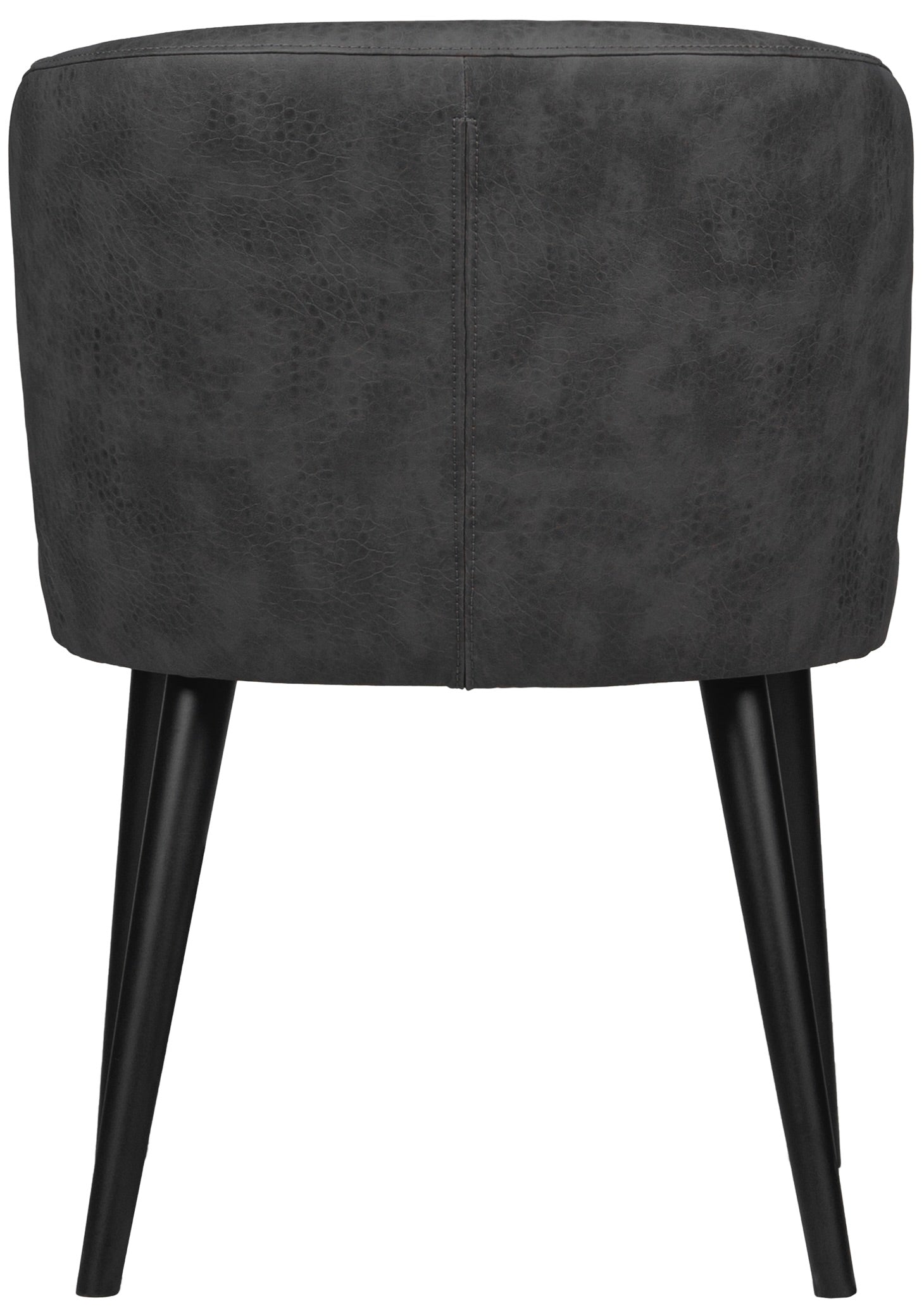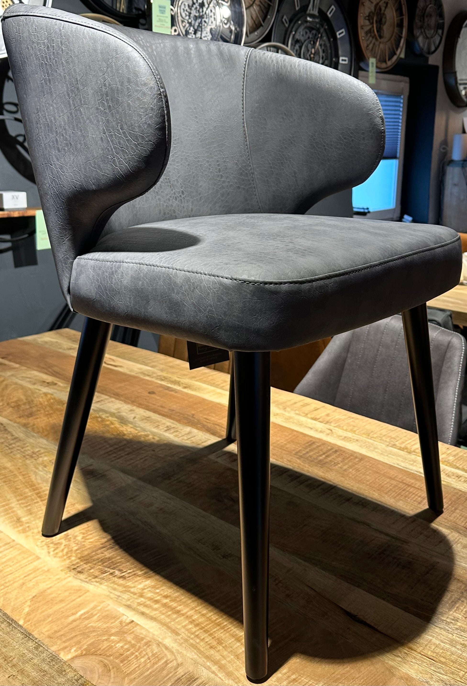 Das Gestell ist schwarz pulverbeschichtet - es gibt den Stuhl auch in einem trendeigen Stoffdesign und in einem terracotta Kunstleder.