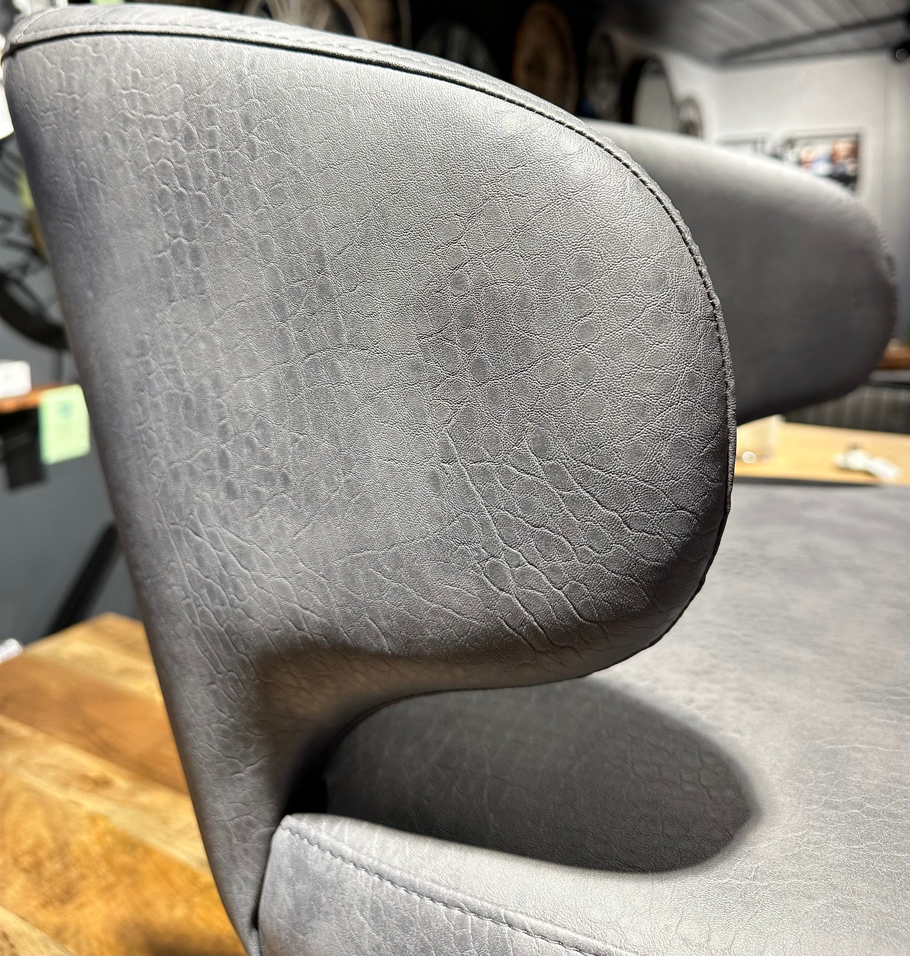 Der Stuhl ist aus angenehmen, veganen und bequemen Kunstleder und sehr pflegeleicht.