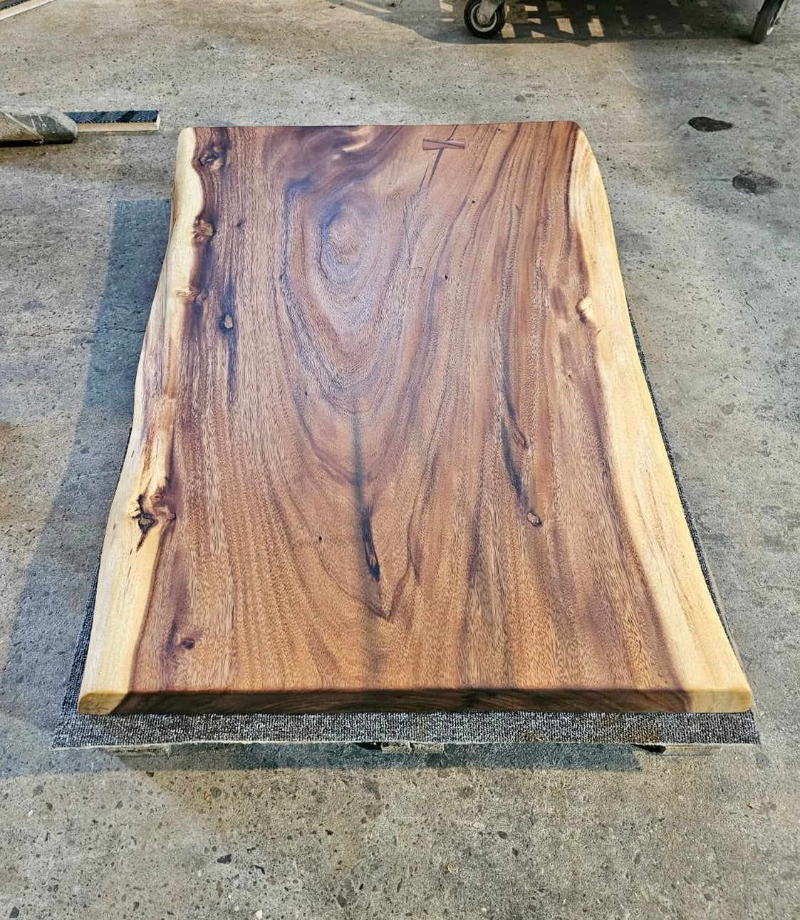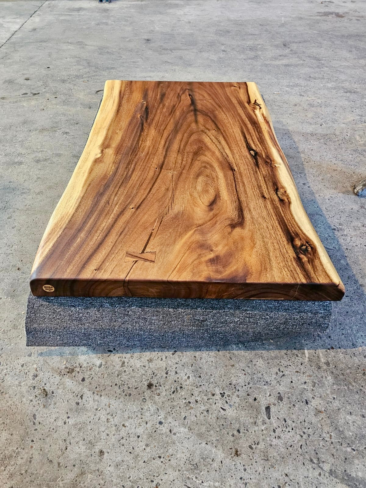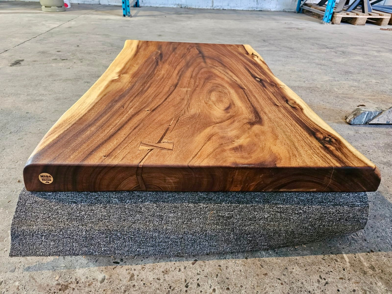 Mammut Baumstamm Tischplatte Suar 120 lang und 8 cm massiv geölt