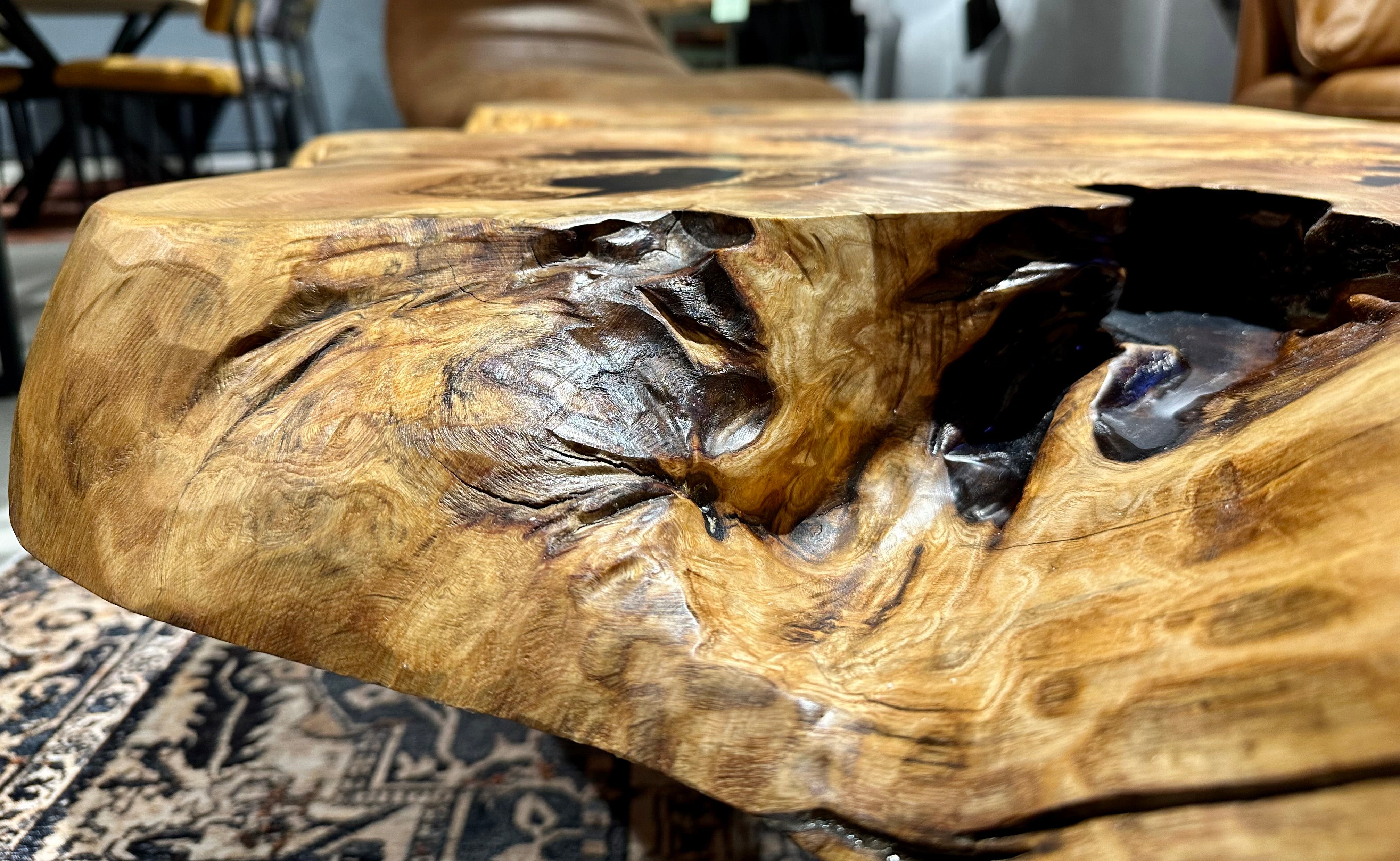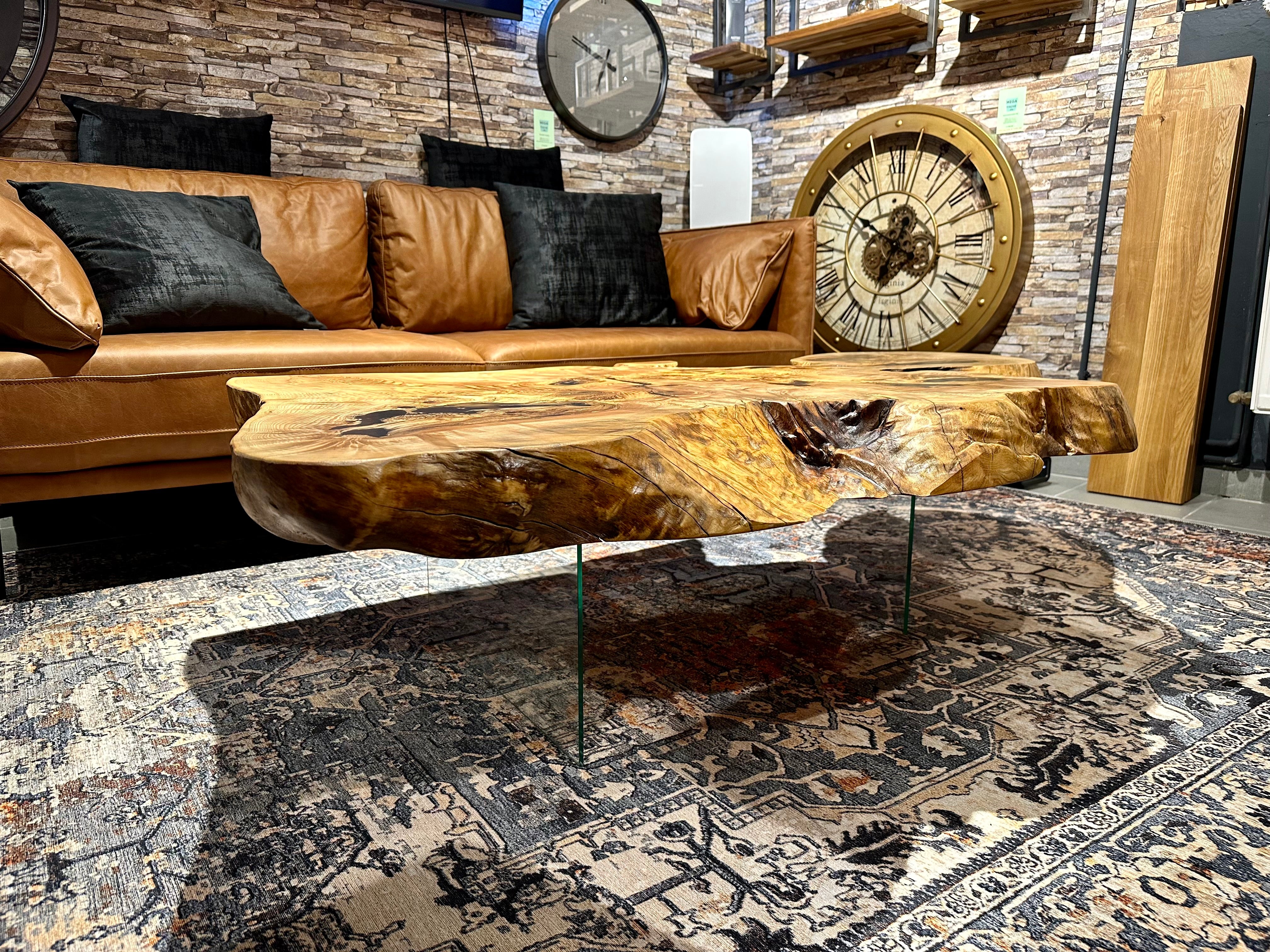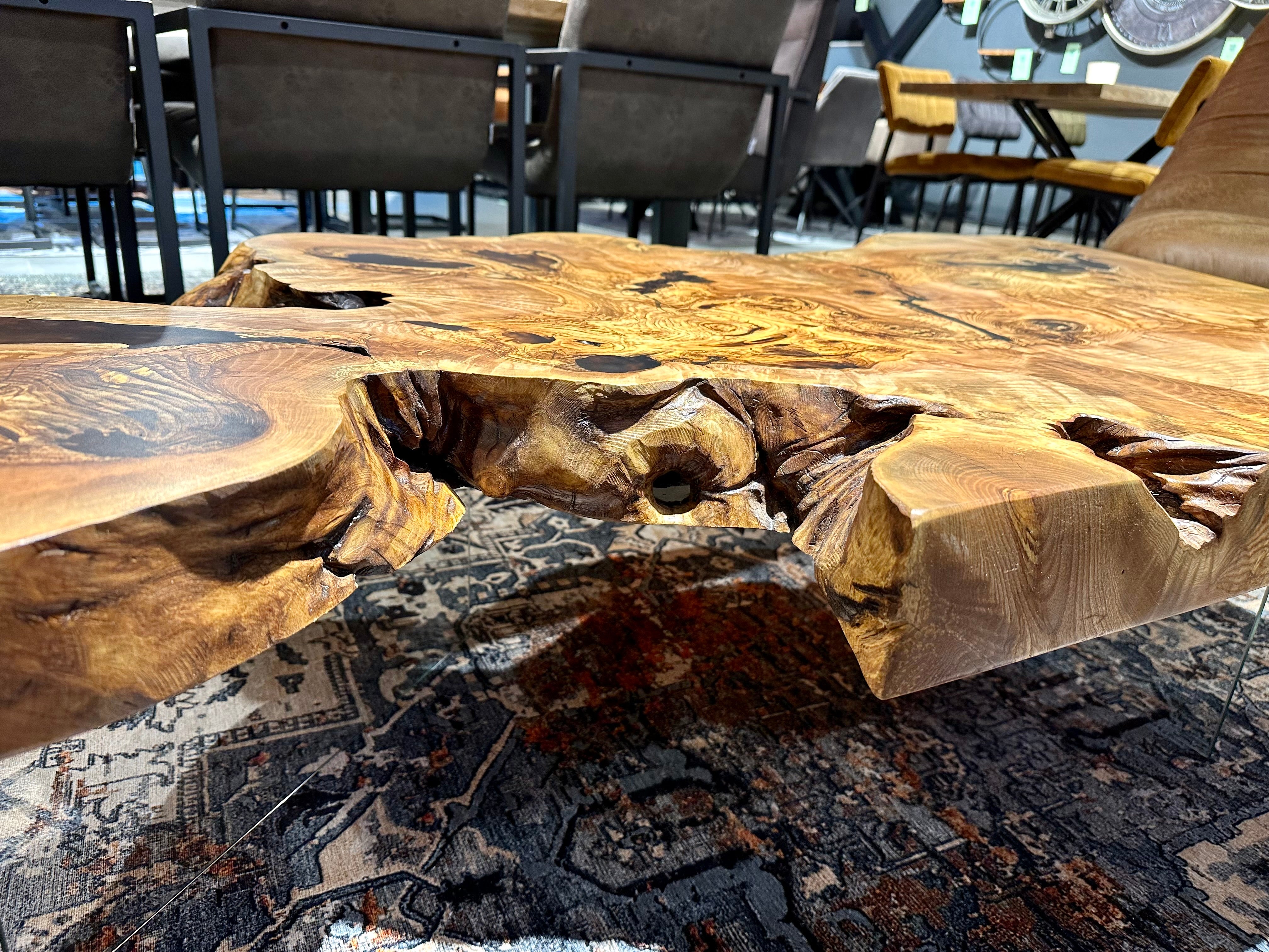 Ca. 320 Jahre alt ist die Maserknollen-Couchtischplatte!