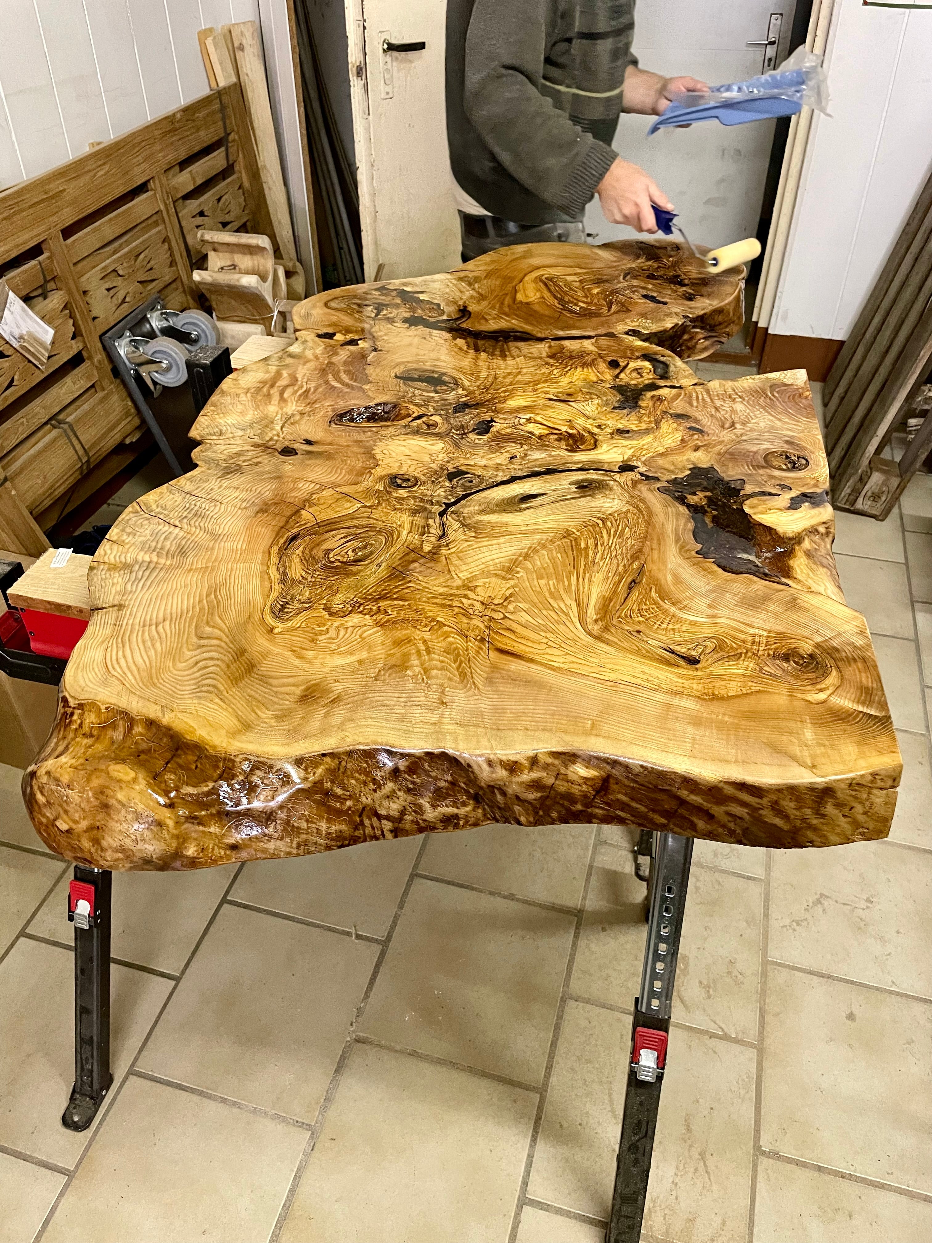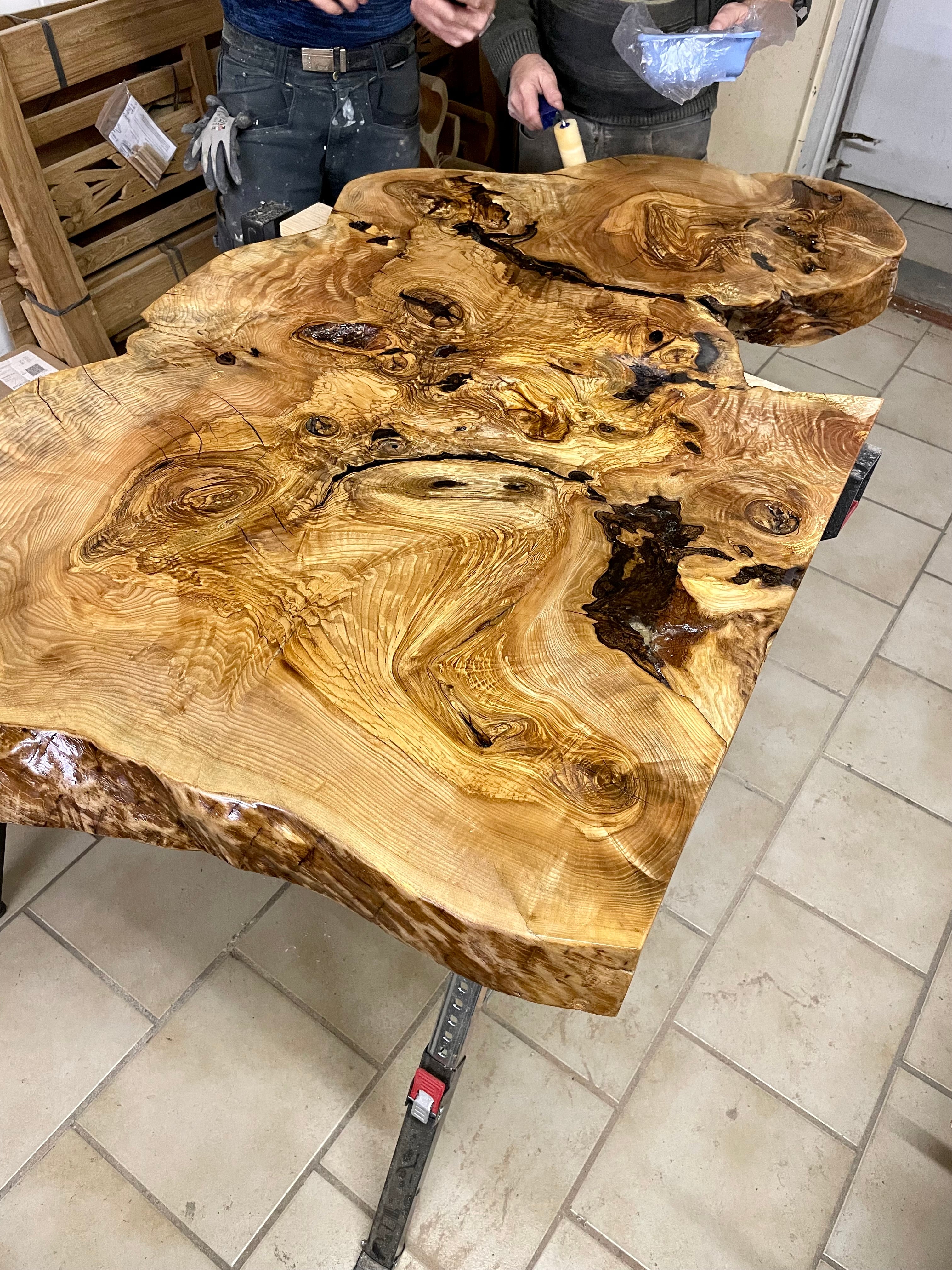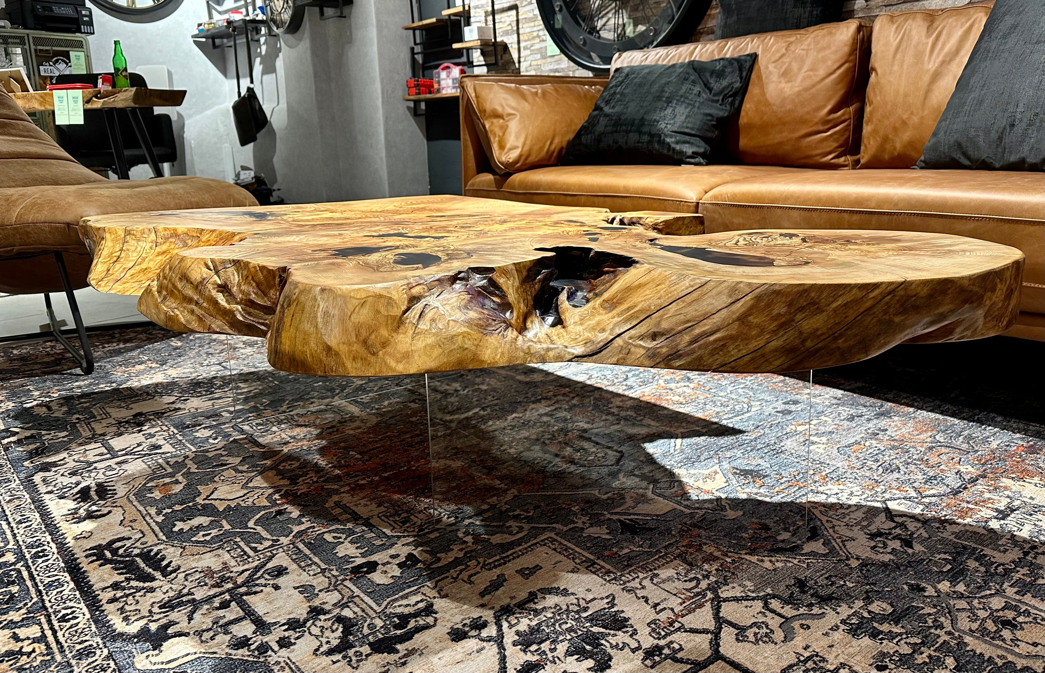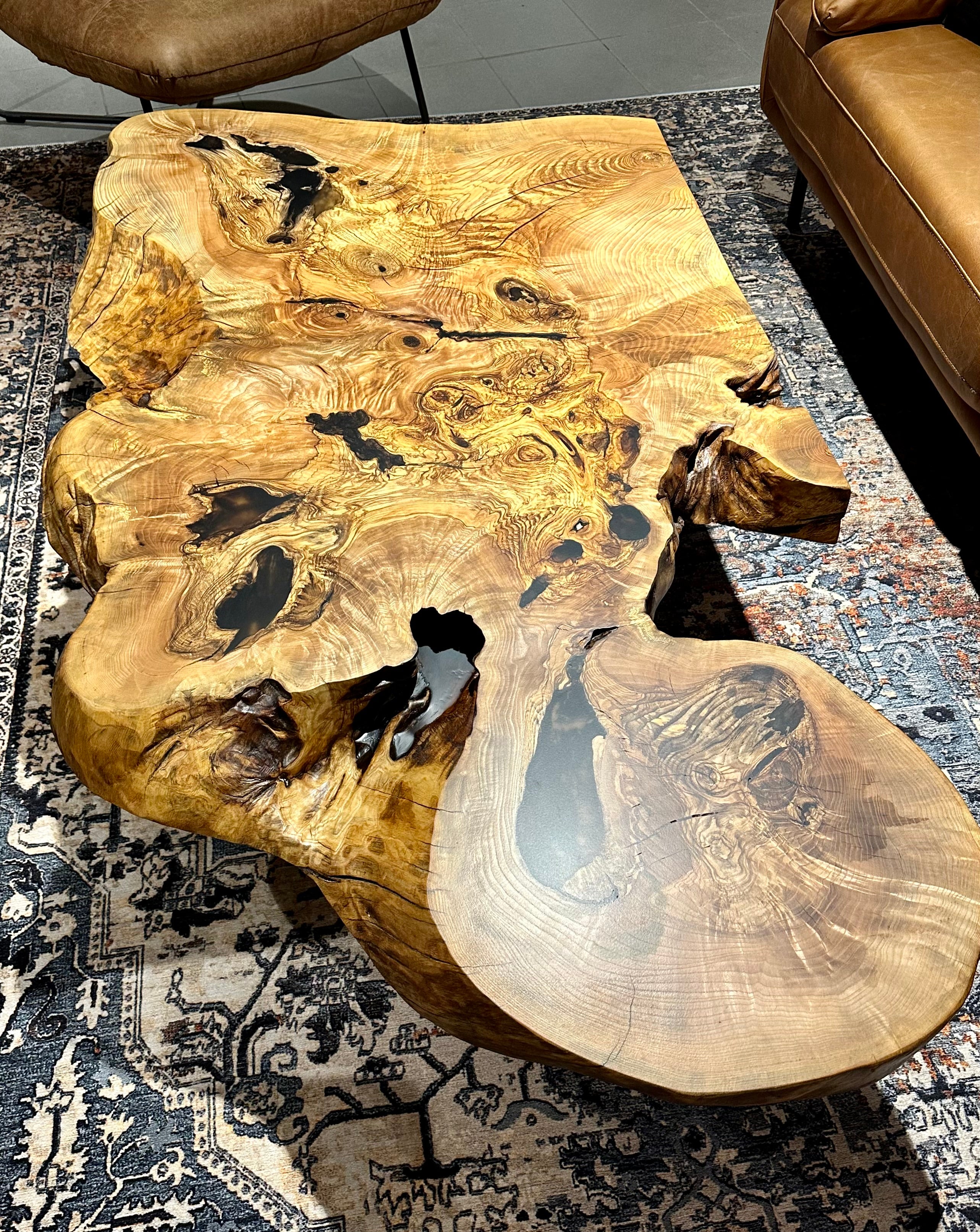 Ca. 320 Jahre alt ist die Maserknollen-Couchtischplatte!