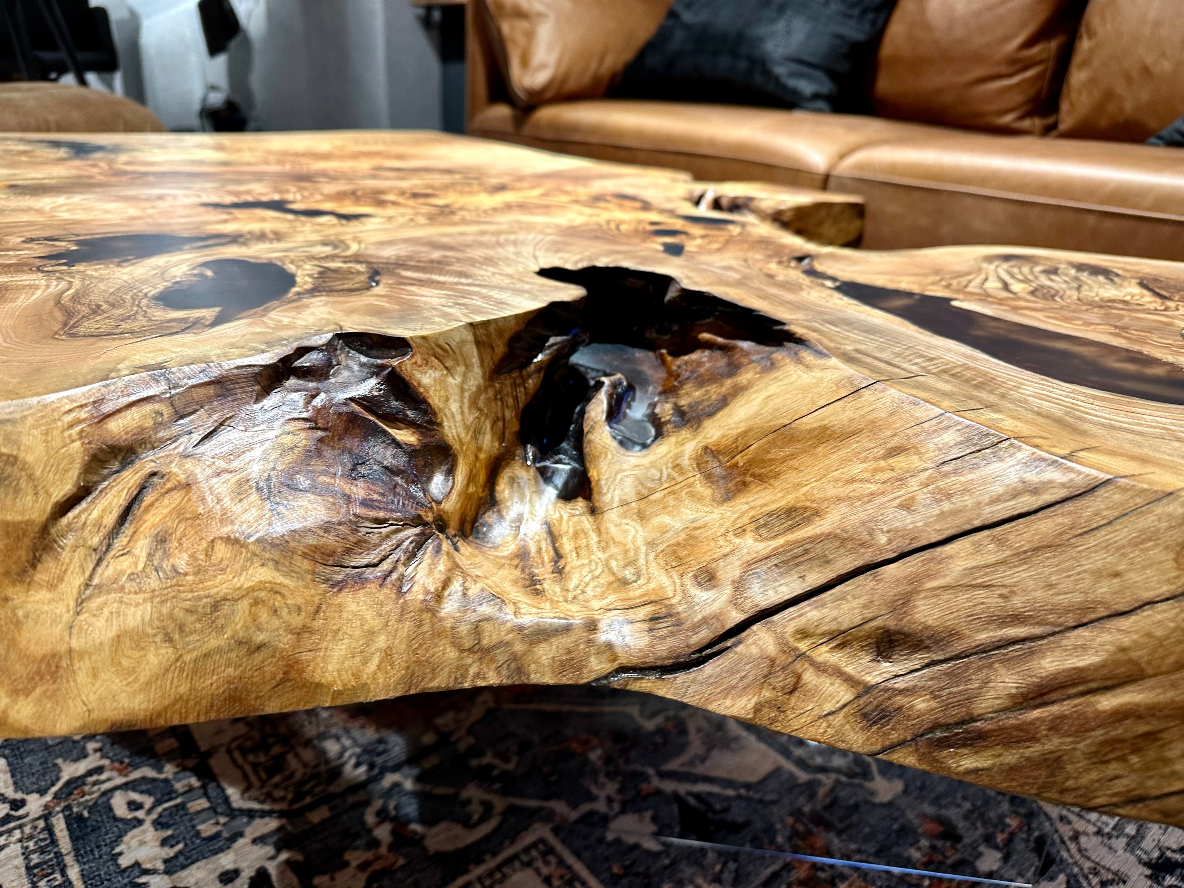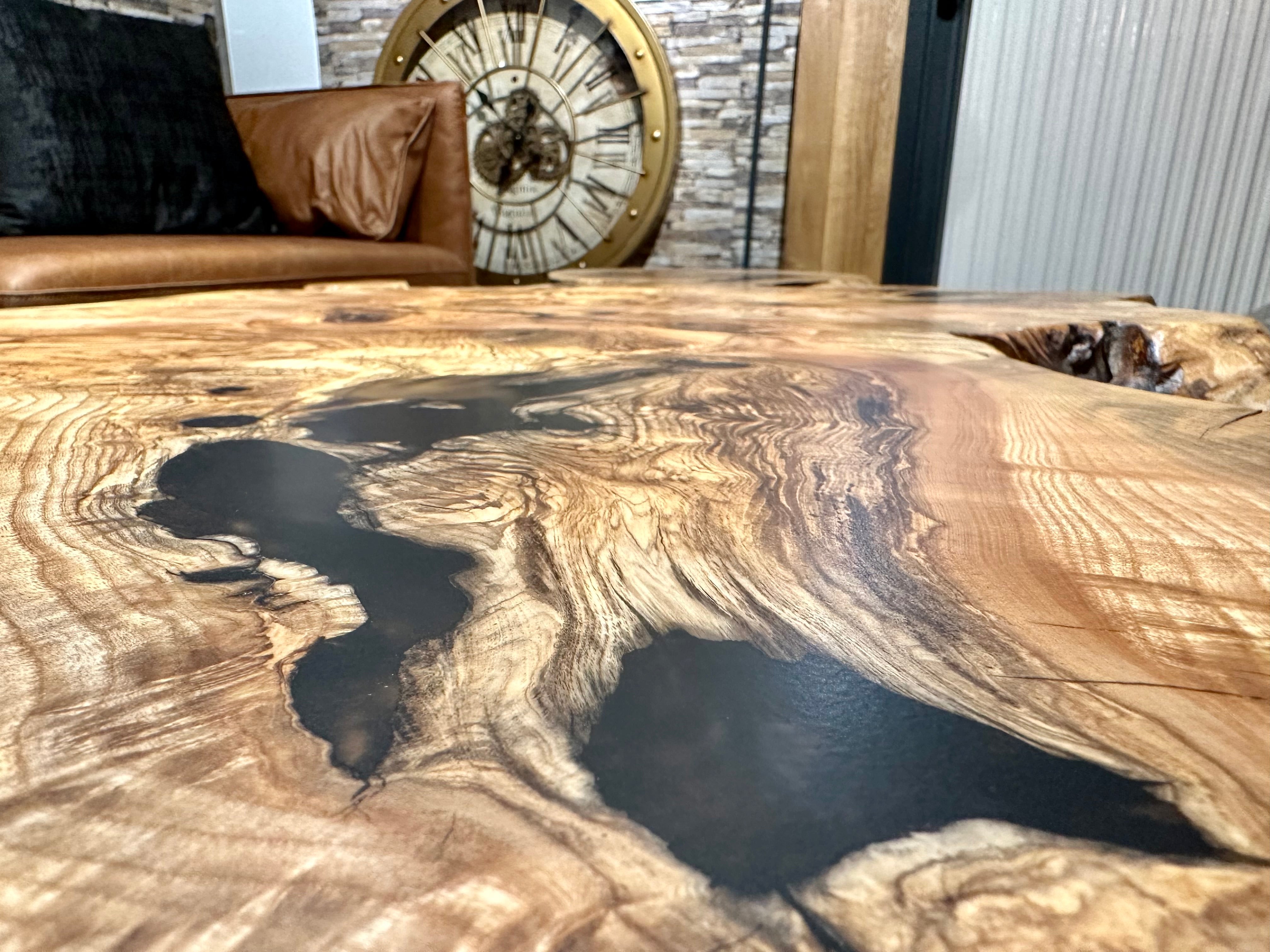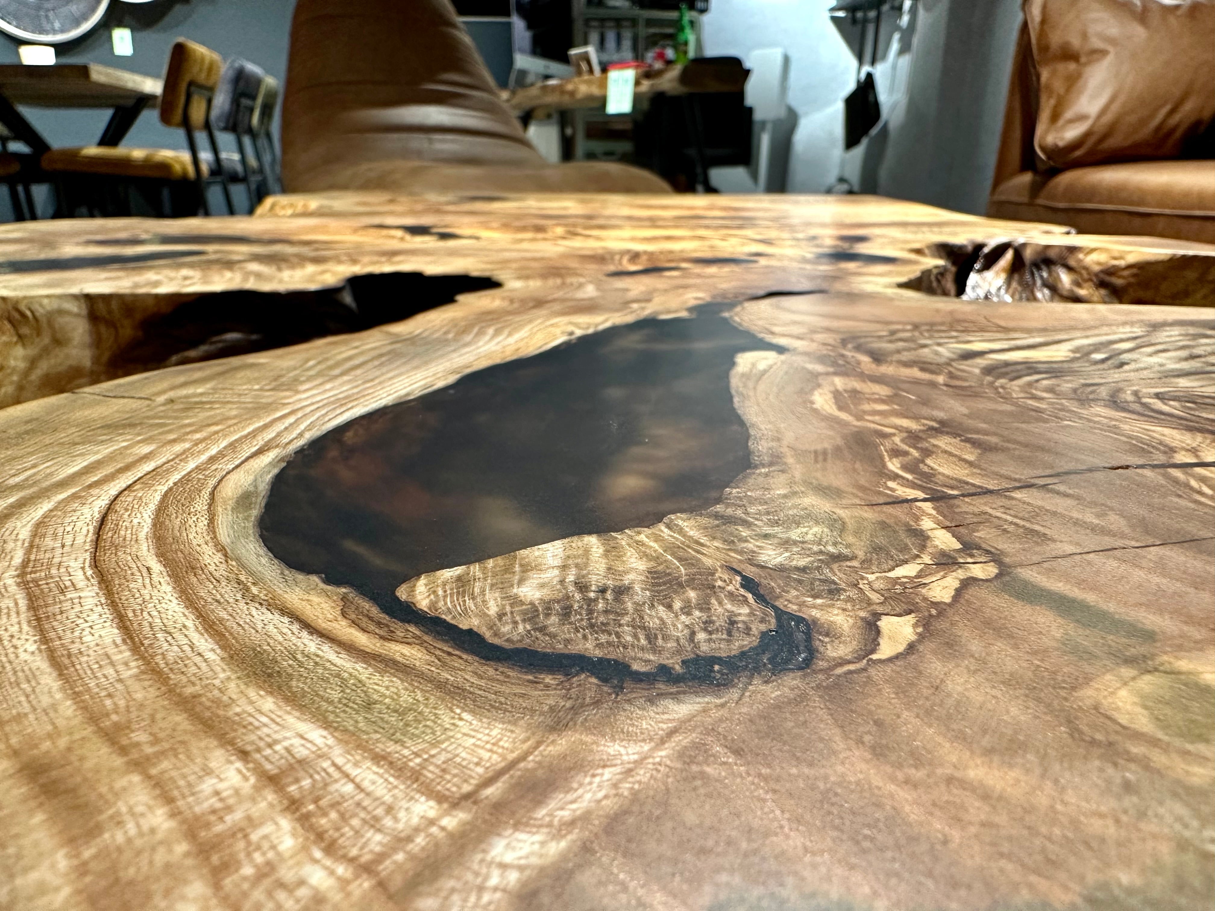 Massiver Epoxid Couchtisch aus Edelesche Holz 150 cm Epoxy Wohnzimmer Tisch Echtholz