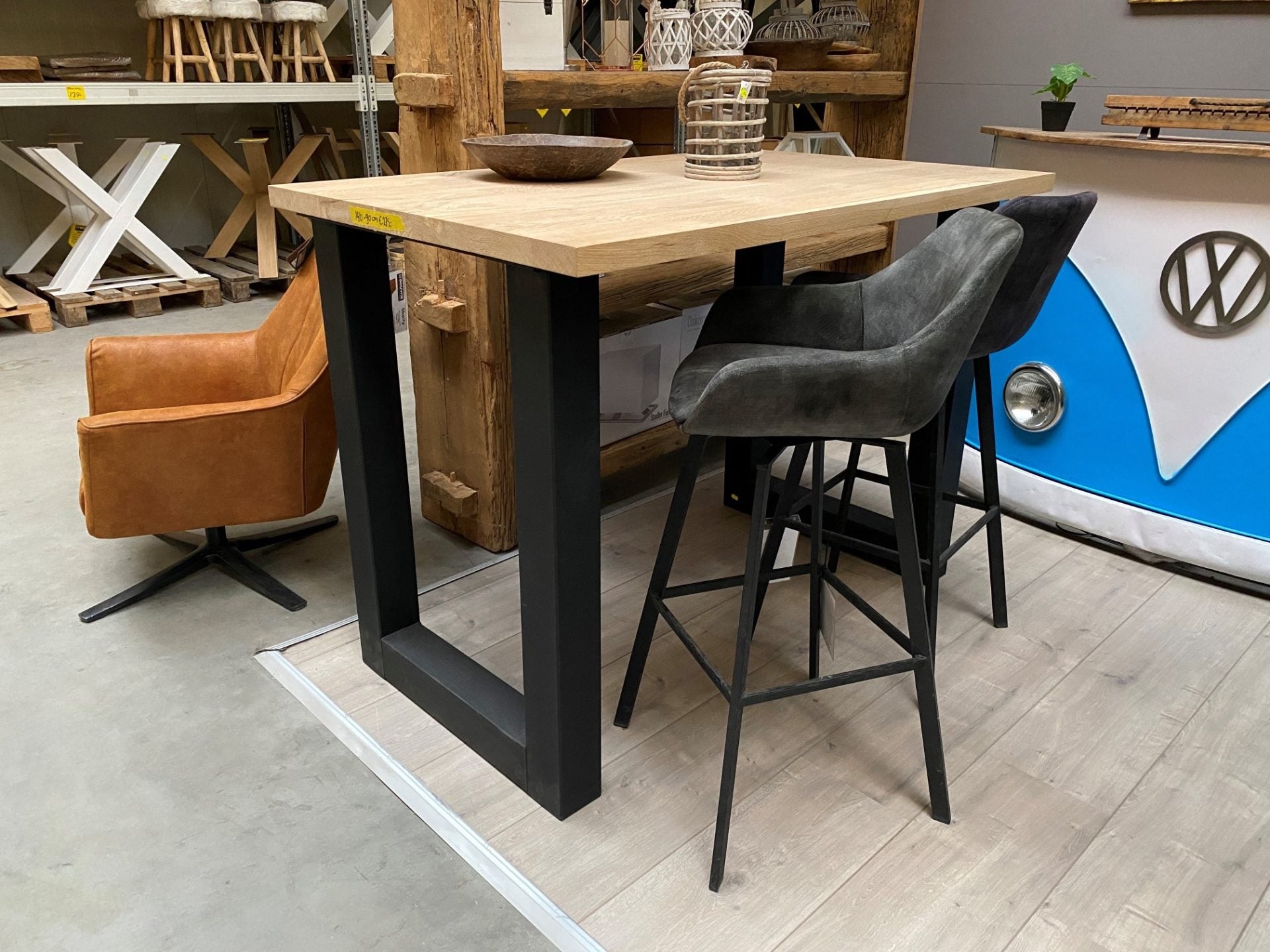 Das hohe Thekengestell wirkt funktionell und bietet ausreichend viel Beinfreiheit und Platz für Ihre Stühle.