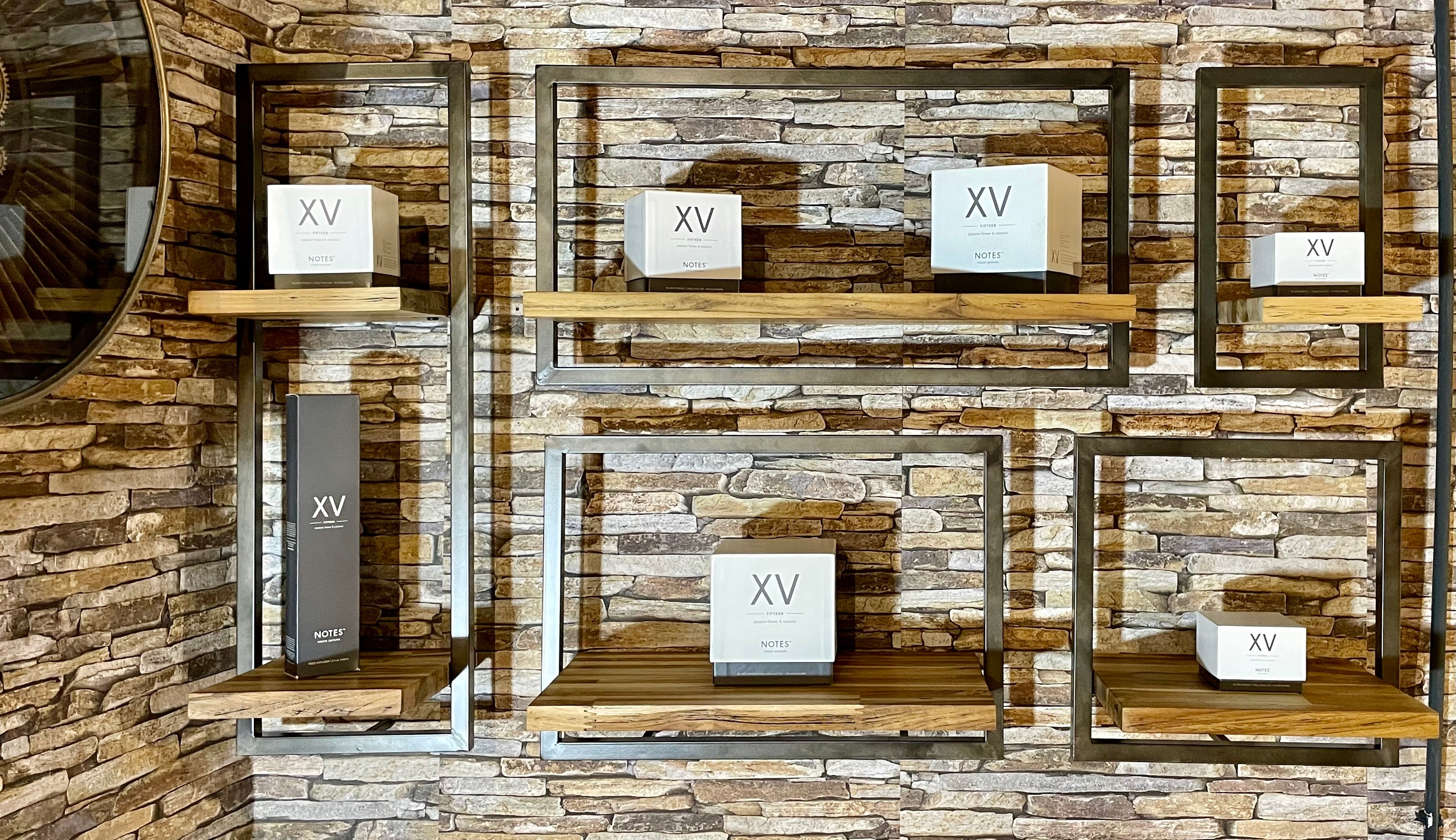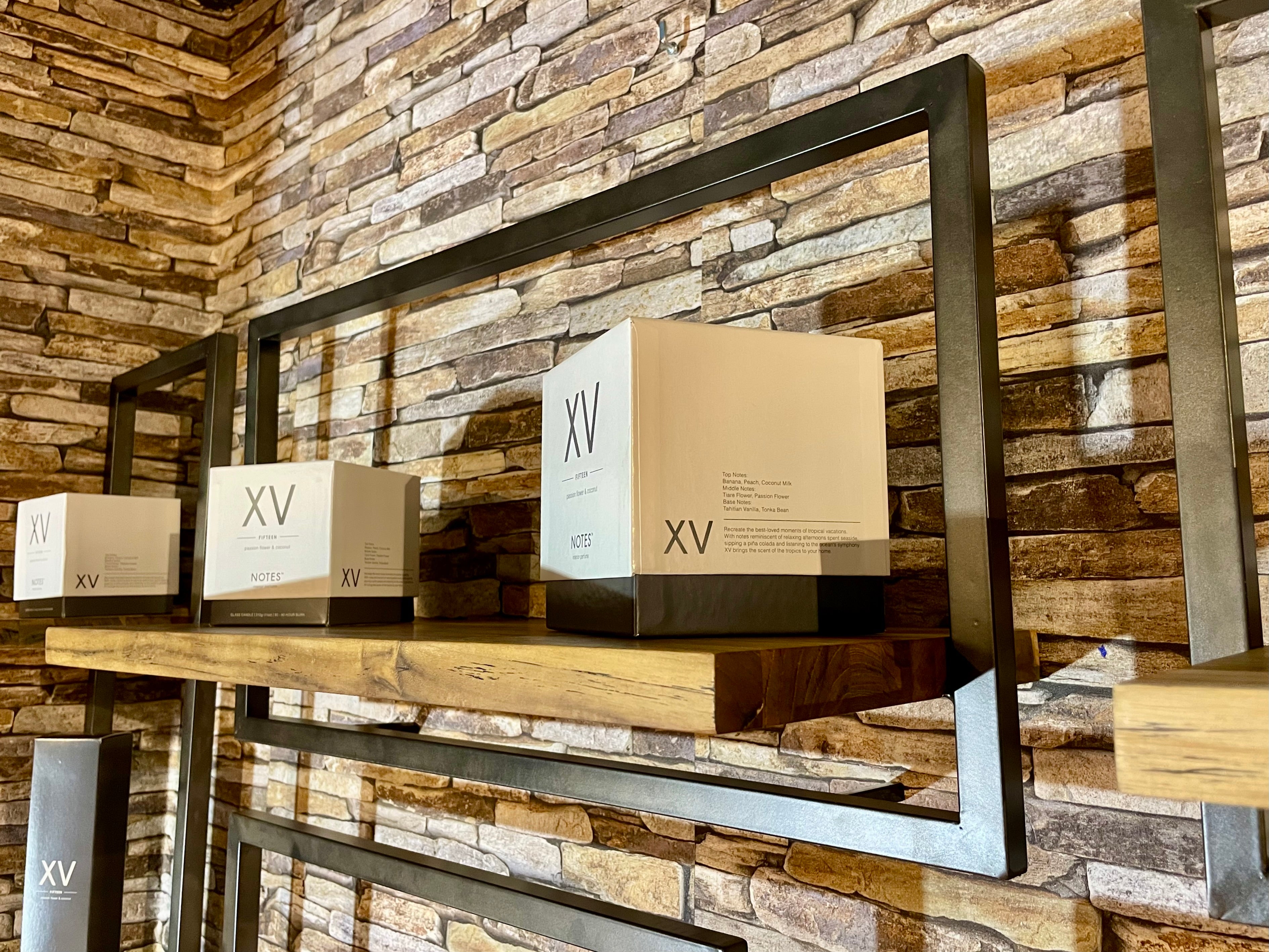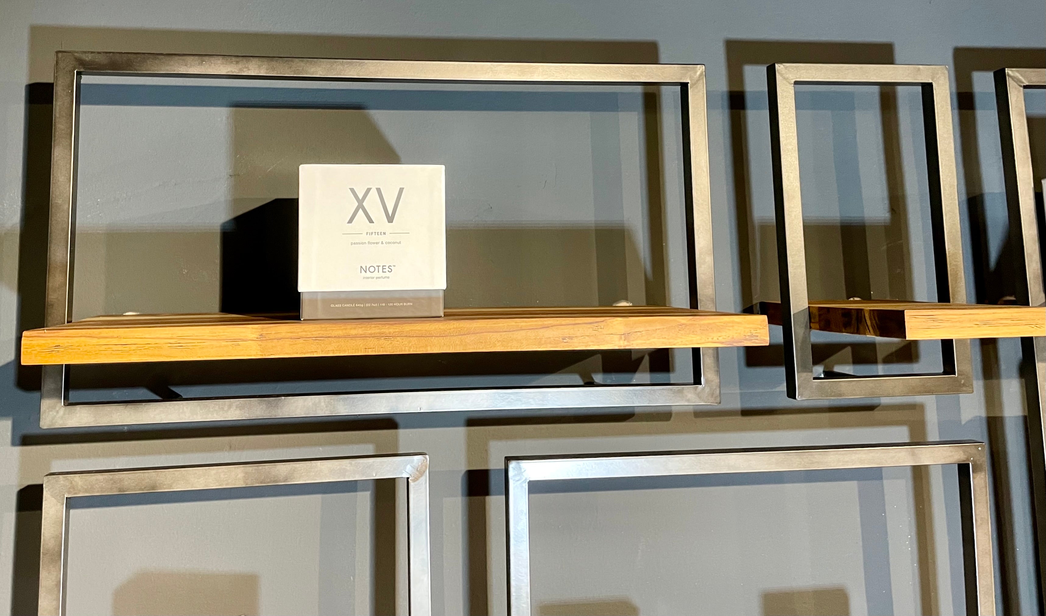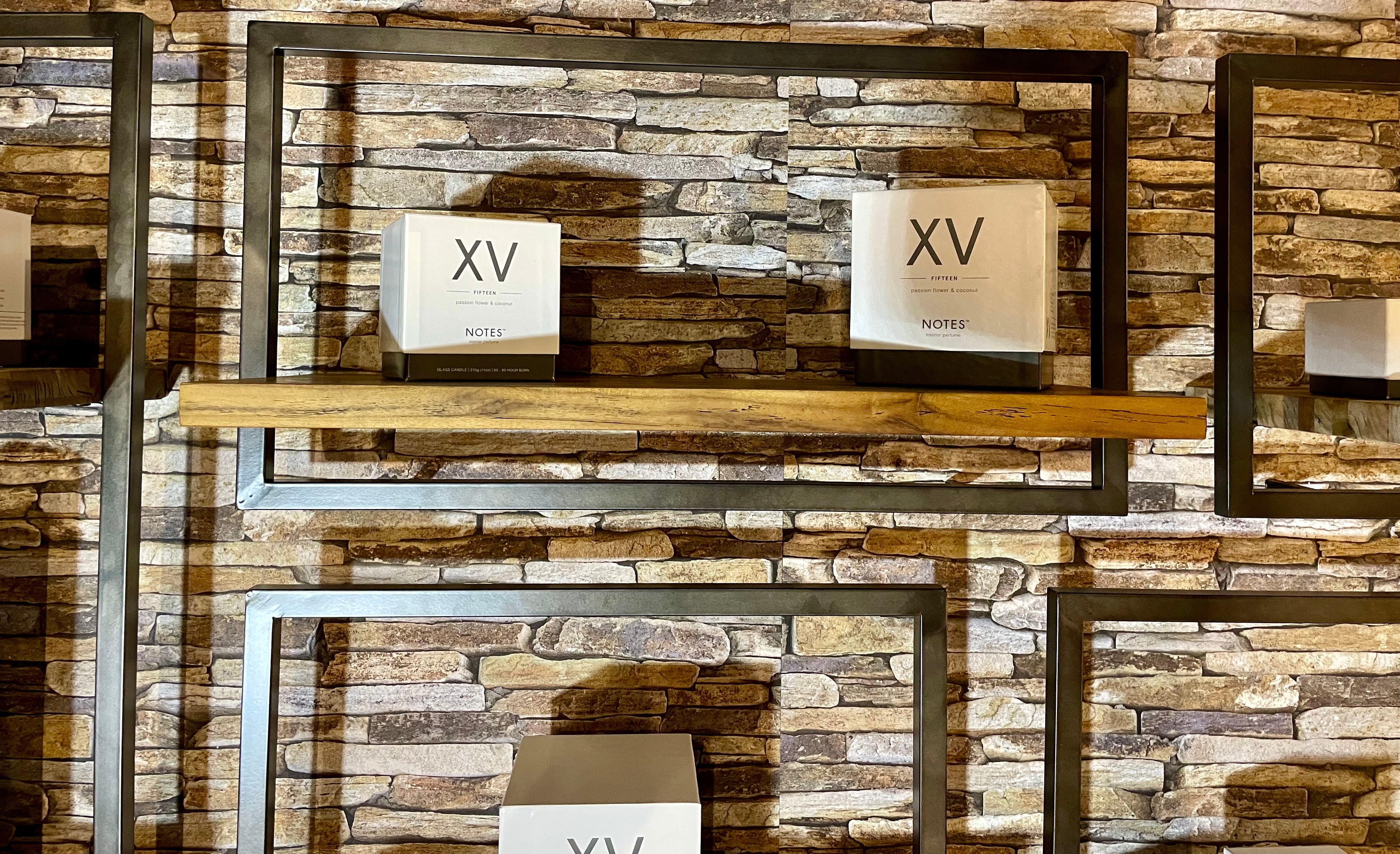 Die Regale sind handgefertigt aus Eisen und aus recyceltem Teakholz, das aus alten javanischen Häusern stammt.