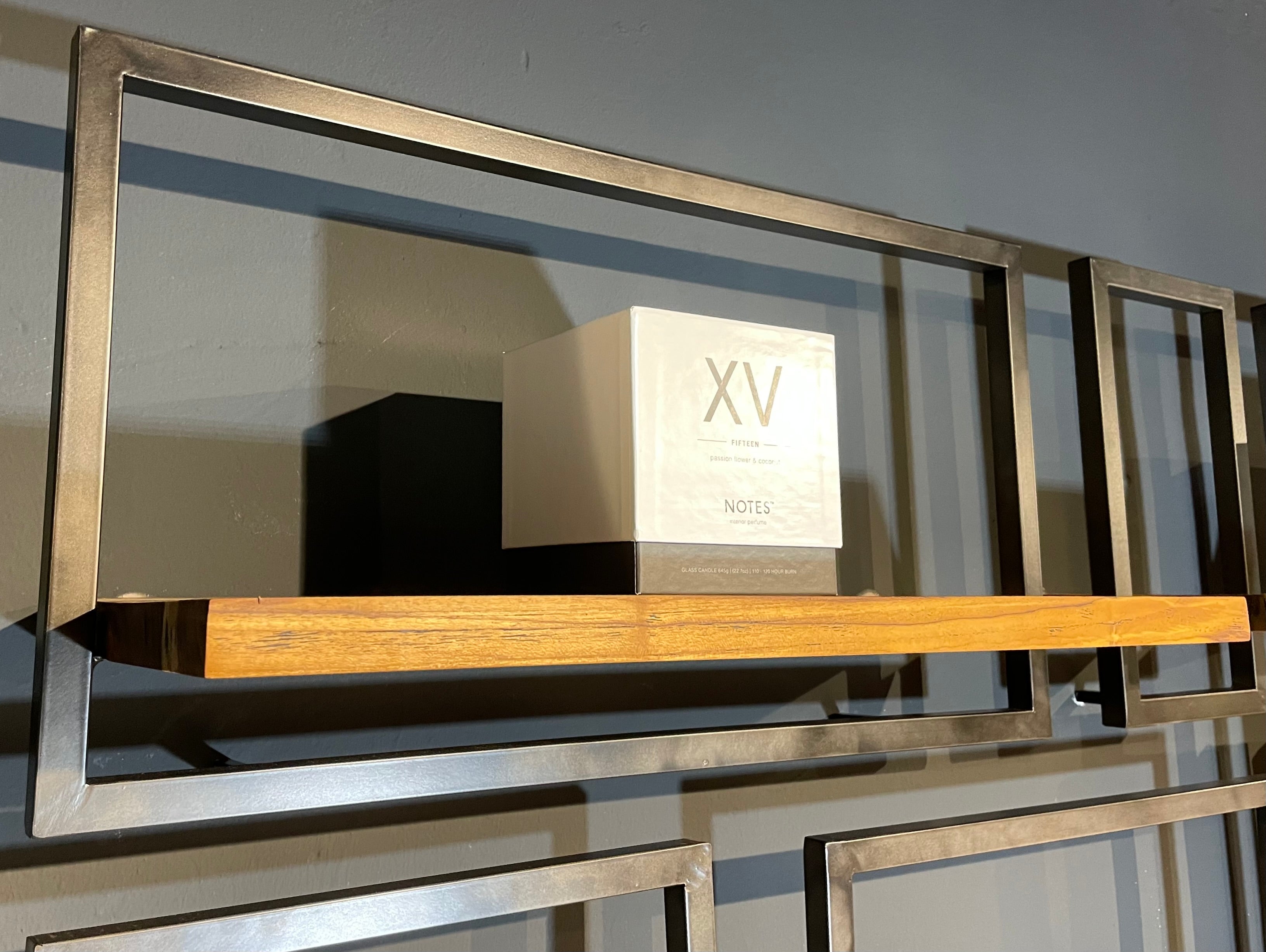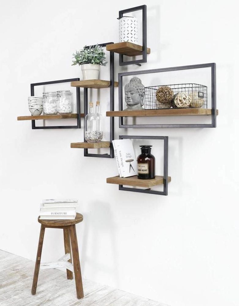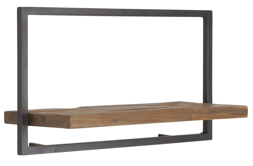 Wandregal Gr. TYP A der Marke d-BODHI im industrial look aus massiven Teakholz (geölt oder gewachst) und mit einer Metallfassung.
