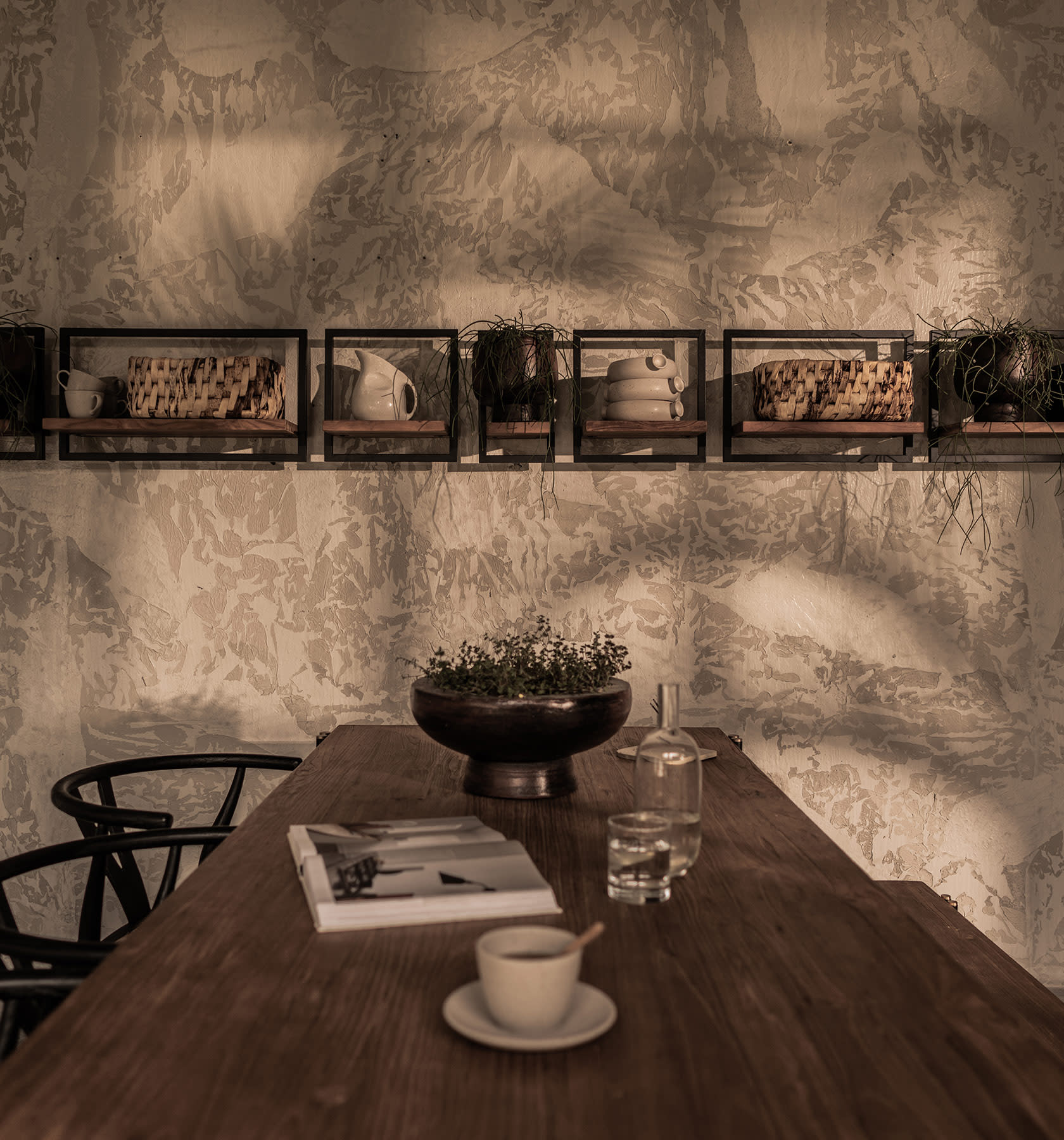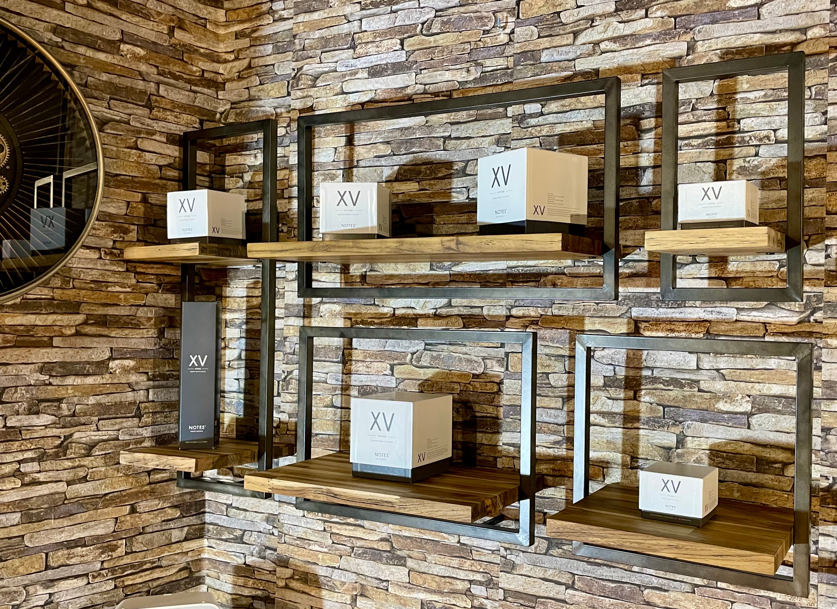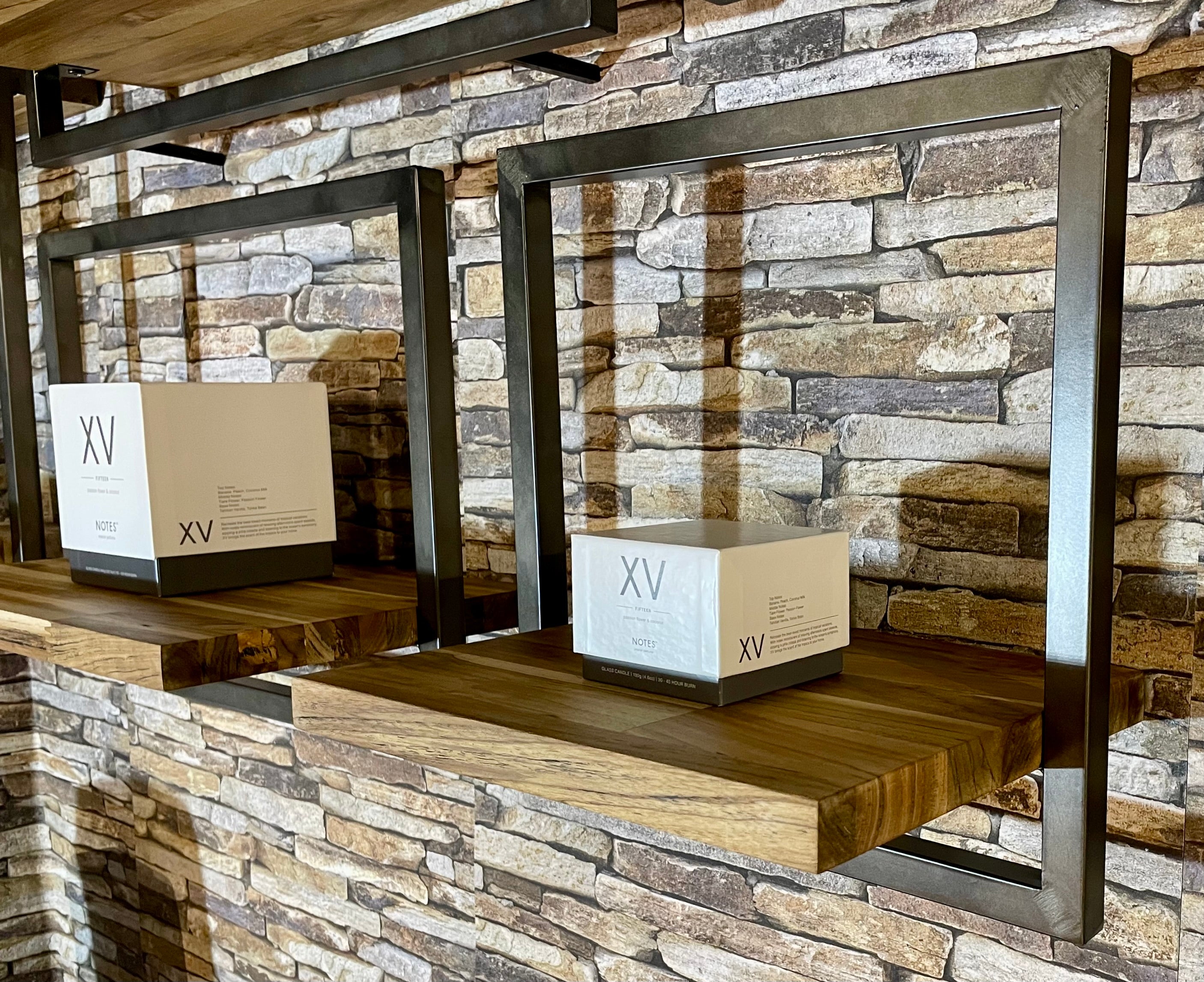 Die Regale sind handgefertigt aus Eisen und aus recyceltem Teakholz, das aus alten javanischen Häusern stammt.