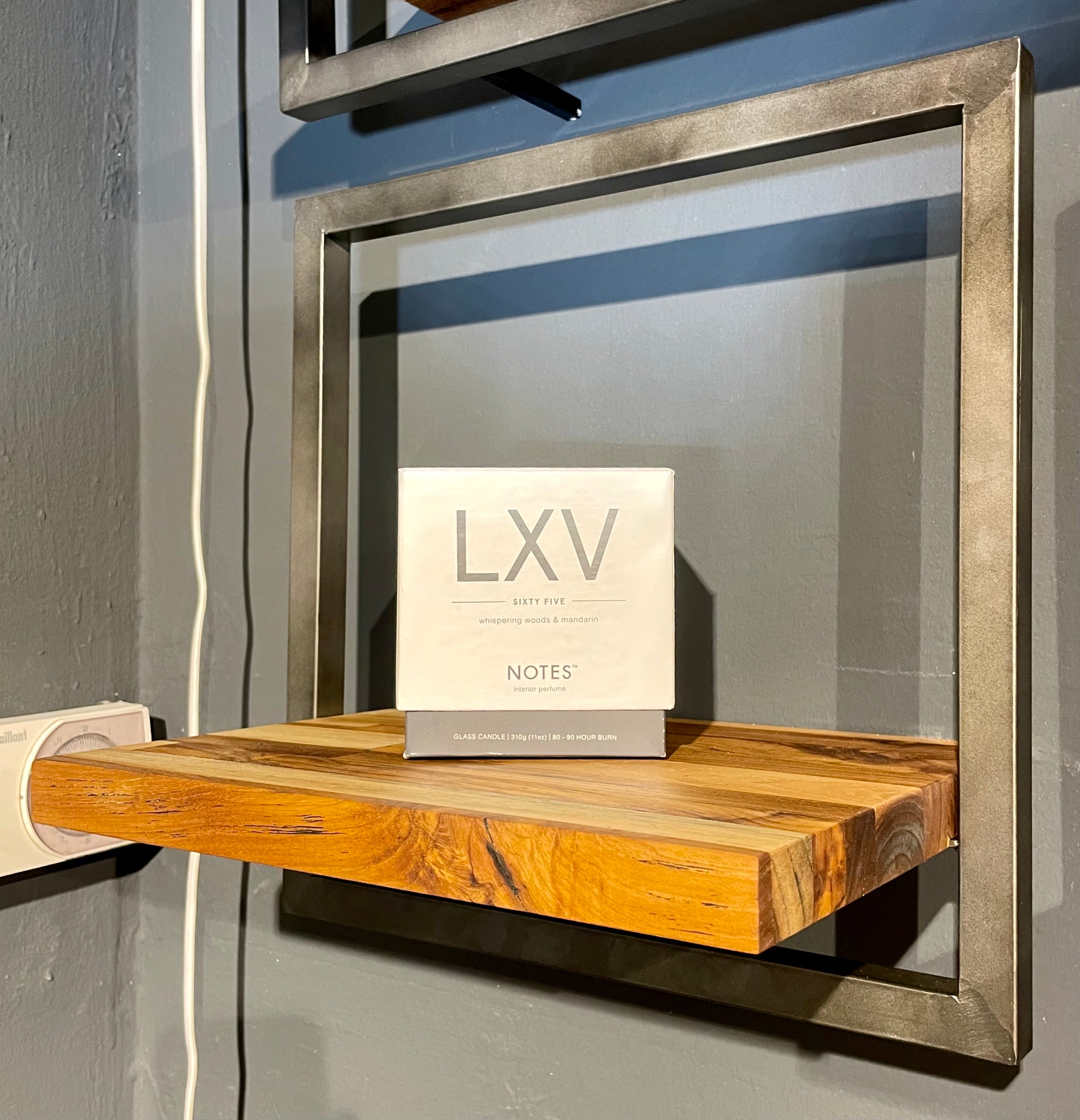 Wandregal Gr. TYP B der Marke d-BODHI im industrial look aus massiven Teakholz (geölt oder gewachst) und mit einer Metallfassung.