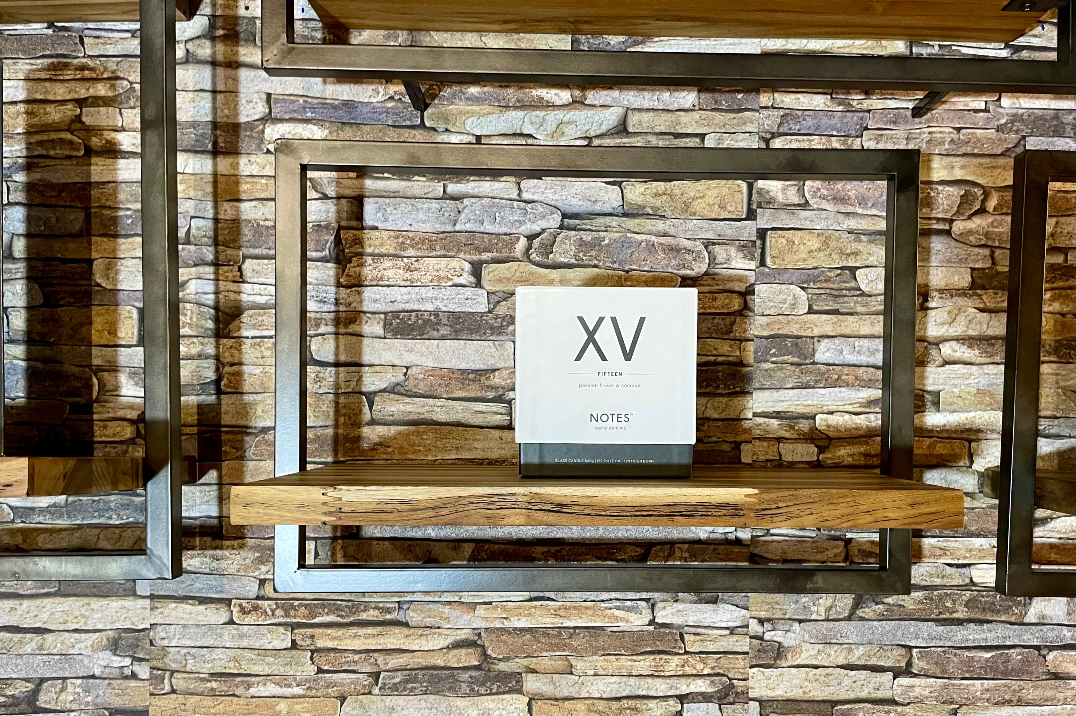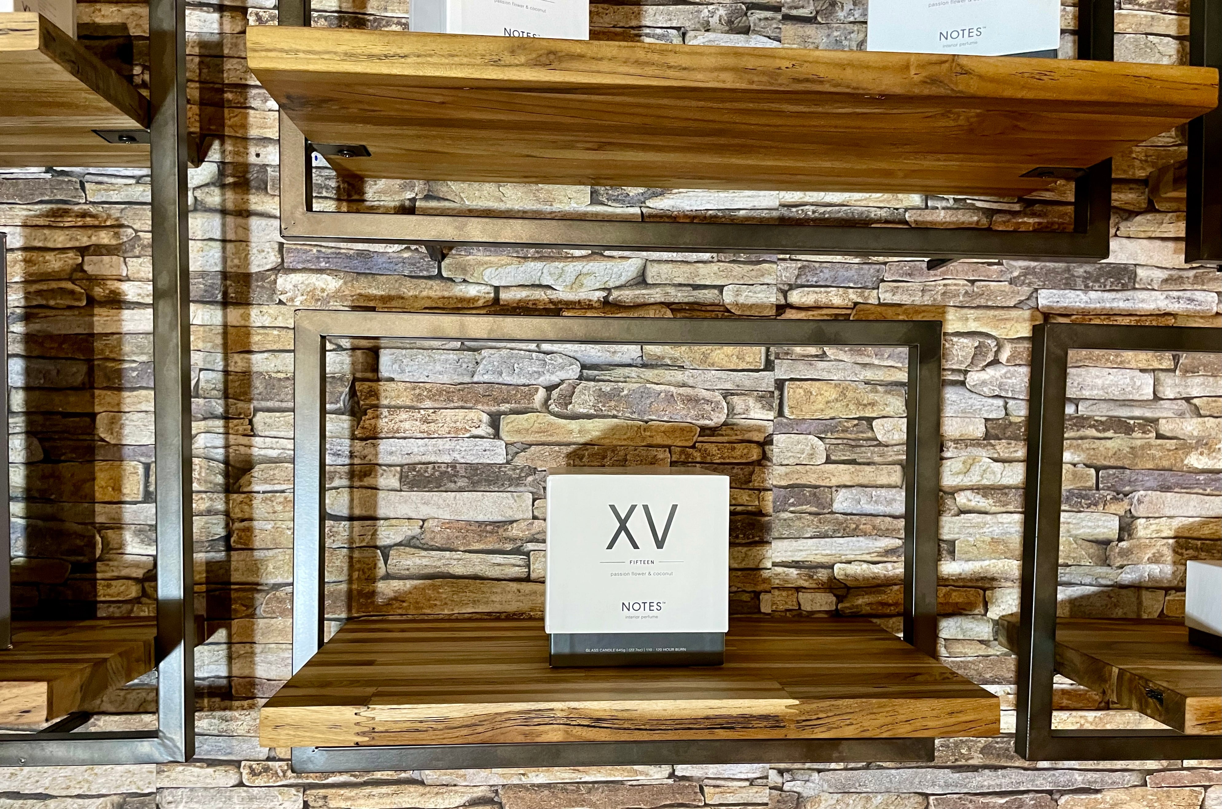 - Wandregal Typ B TEAK gewachst oder geölt ( Bild mit Steinwand zeigt das gewachste Regal