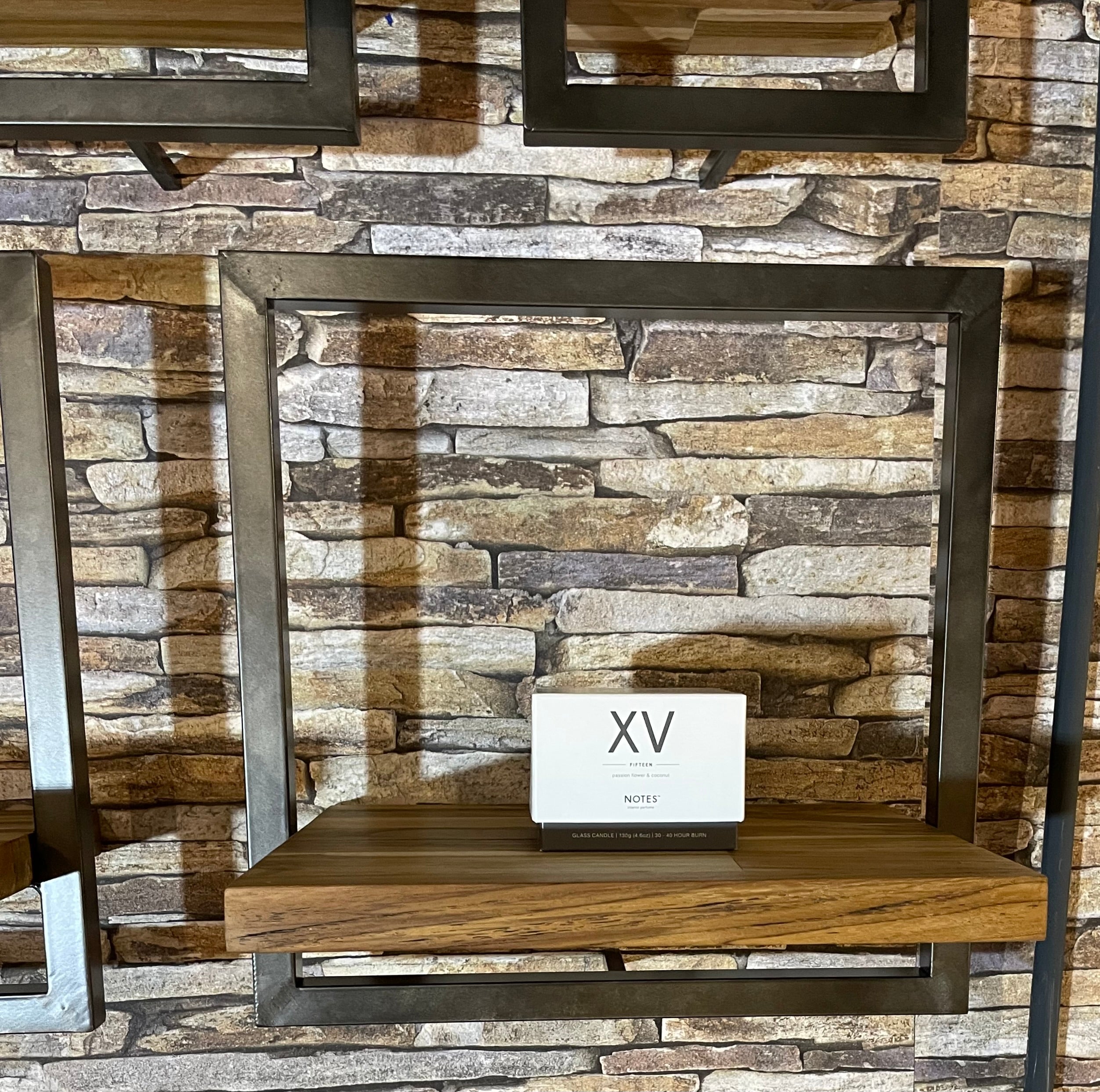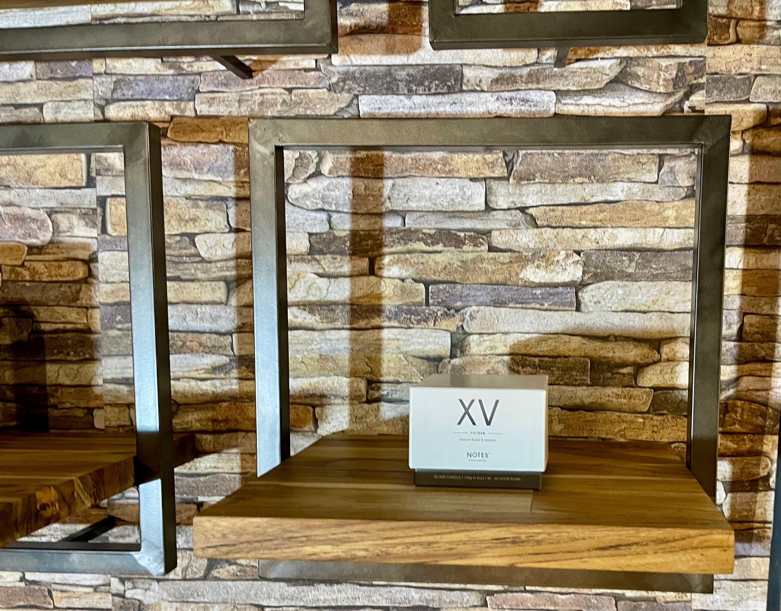 - Wandregal Typ C TEAK gewachst oder geölt ( Bild mit Steinwand zeigt das gewachste Regal - Bild mit dunkler Wand zeigt das Regal geölt)