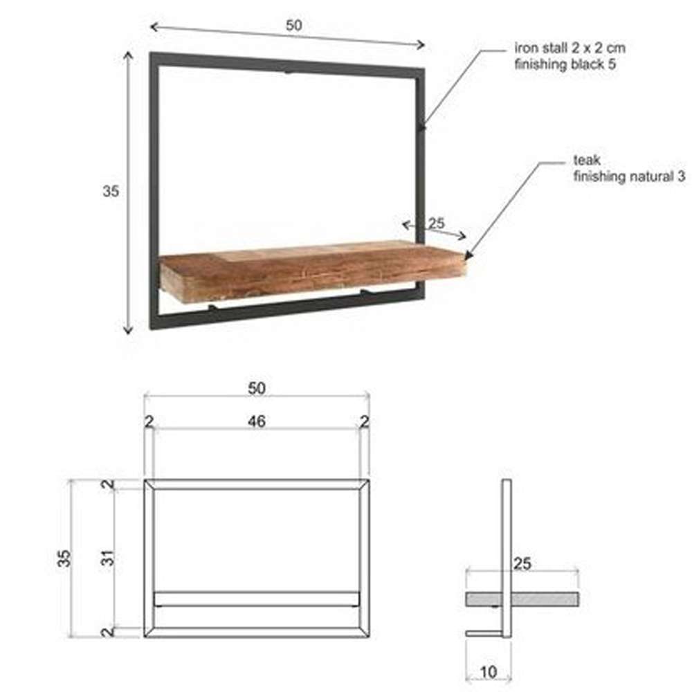 Wandregal Gr. TYP C der Marke d-BODHI im industrial look aus massiven Teakholz (geölt oder gewachst) und mit einer Metallfassung.