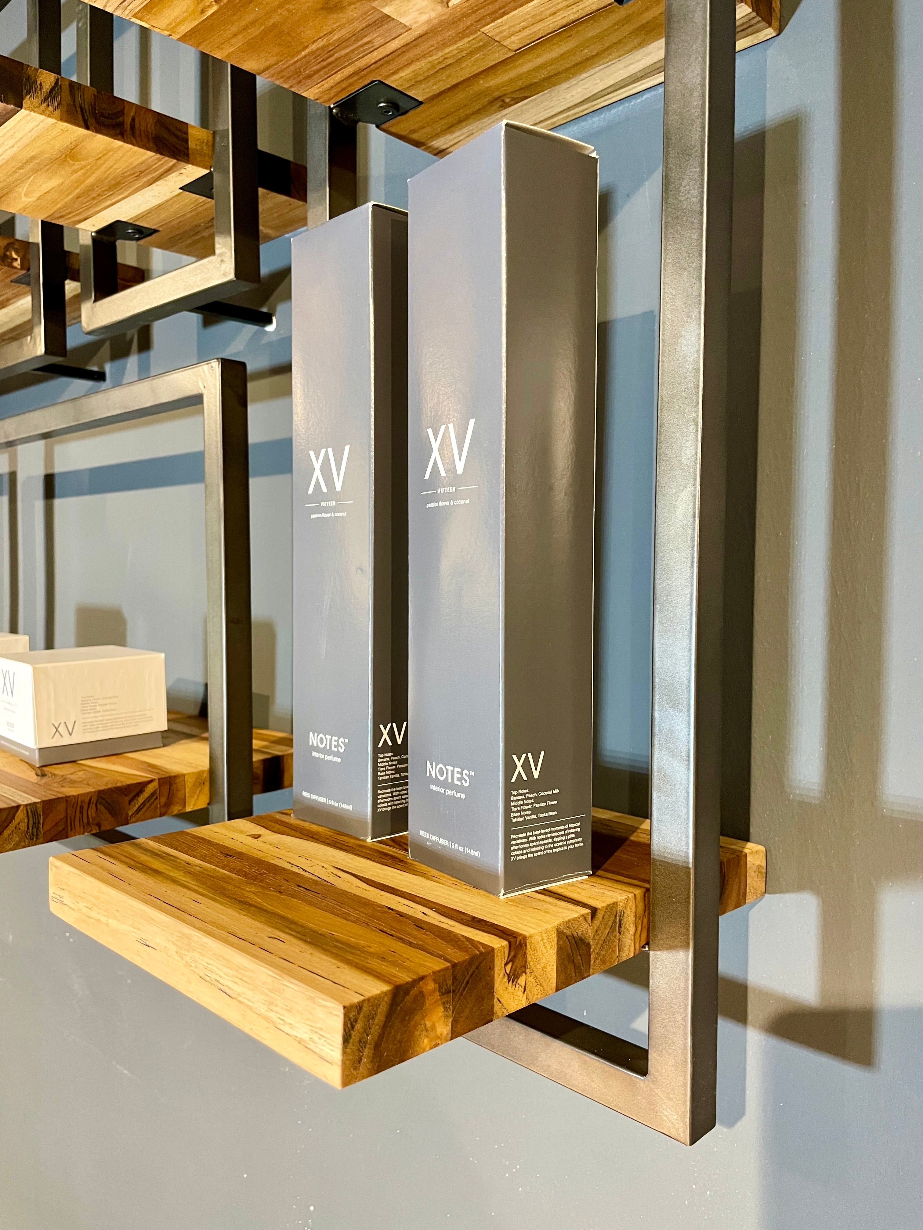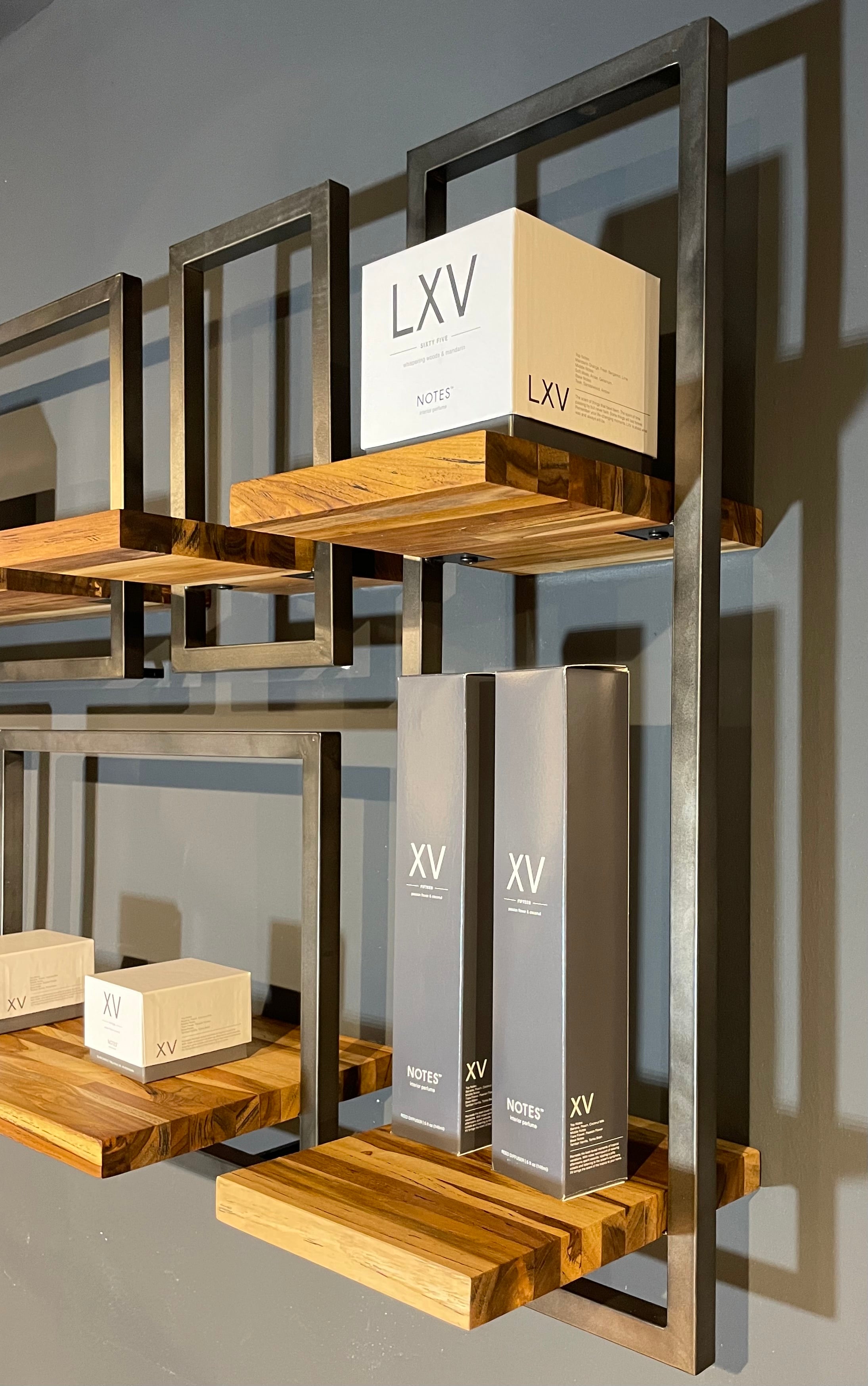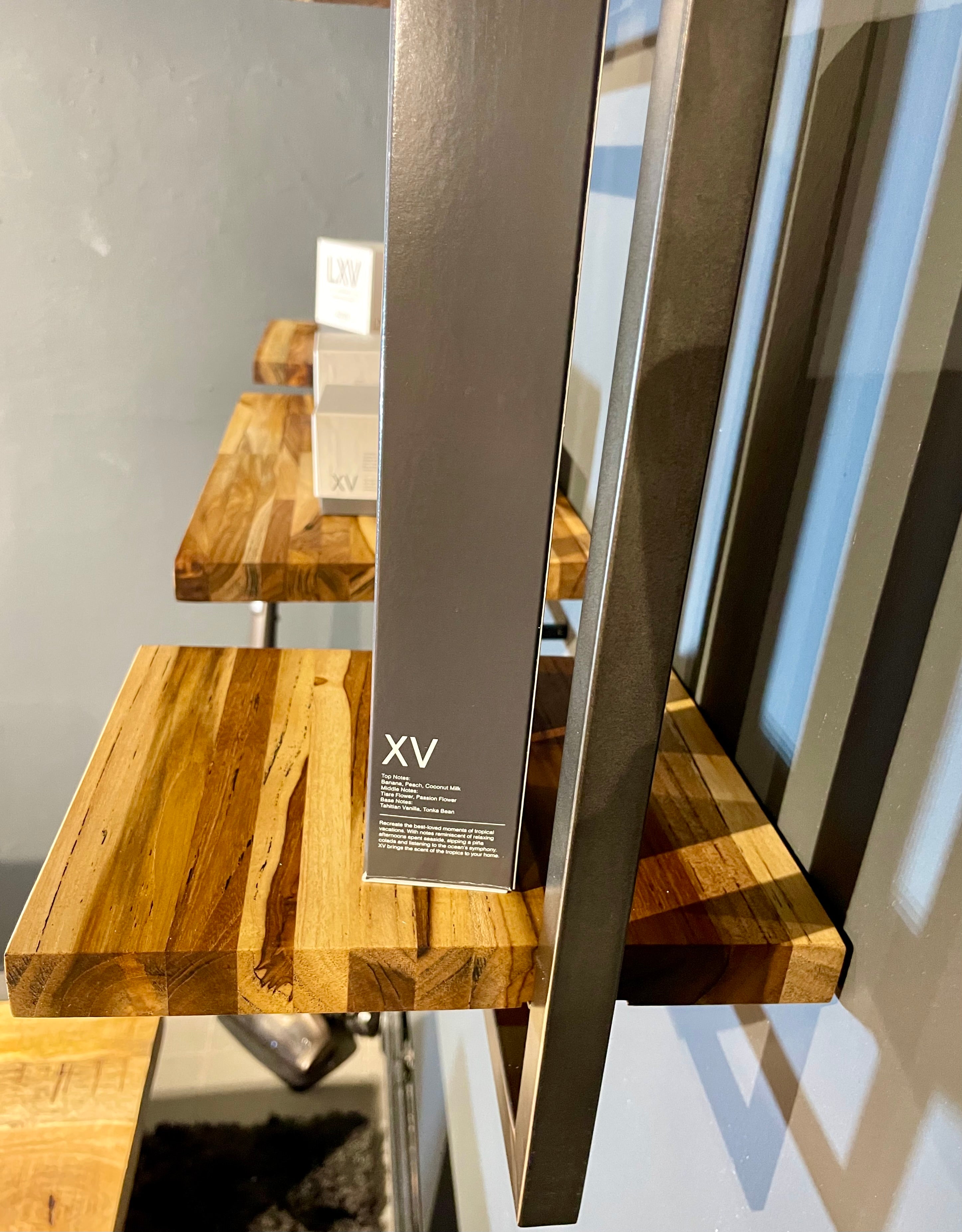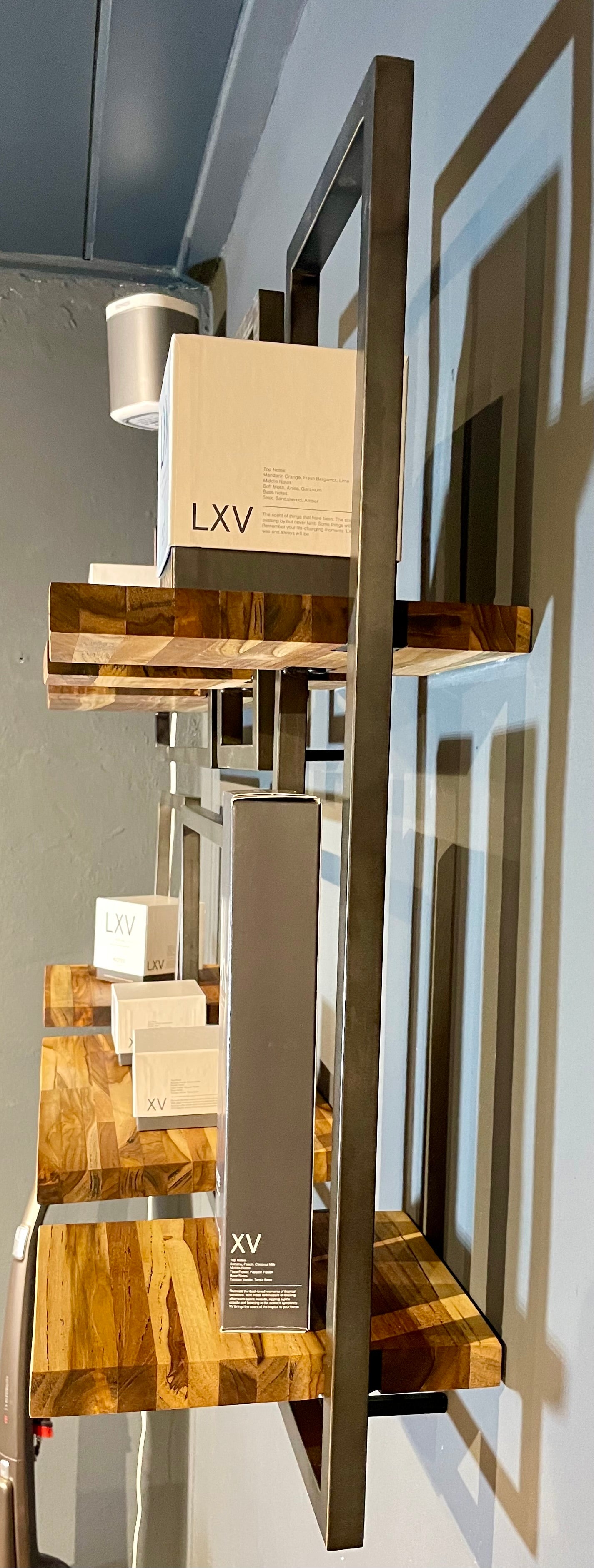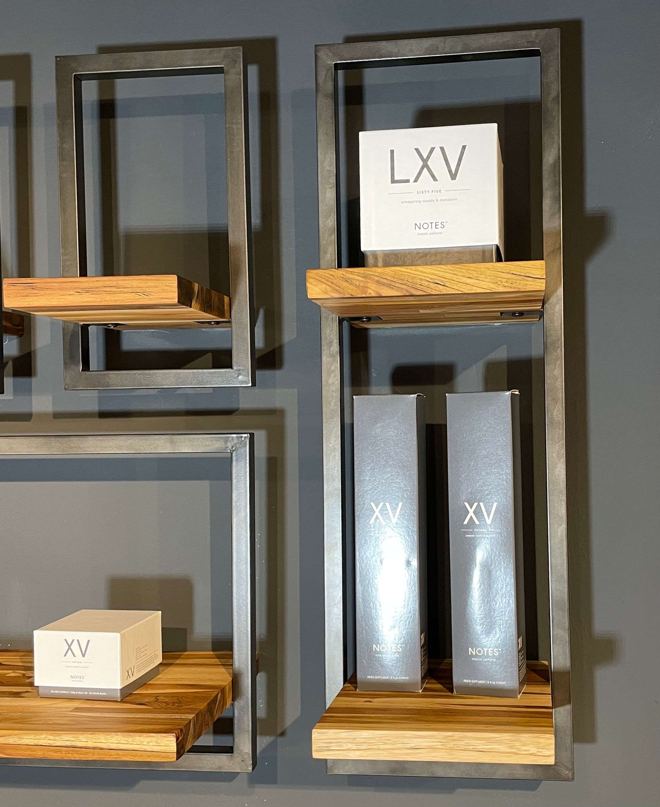 Die Regale sind handgefertigt aus Eisen und aus recyceltem Teakholz, das aus alten javanischen Häusern stammt.