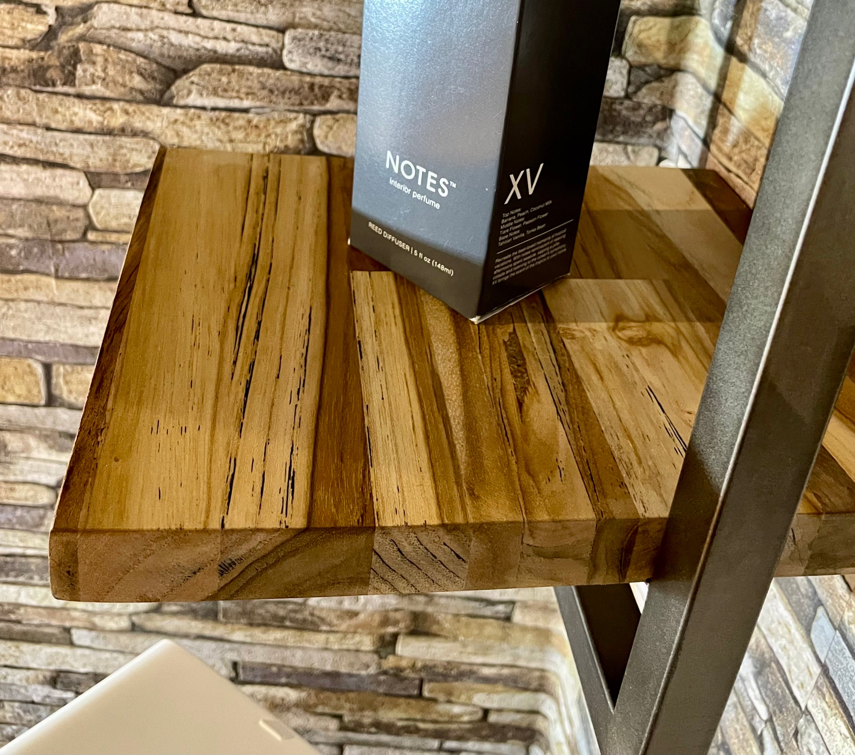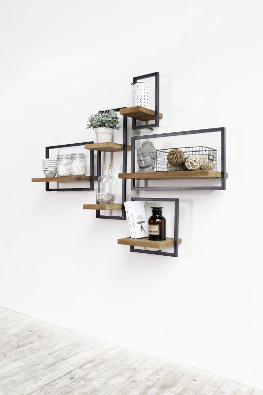 Wandregal Gr. TYP D der Marke d-BODHI im industrial look aus massiven Teakholz (geölt oder gewachst) und mit einer Metallfassung.