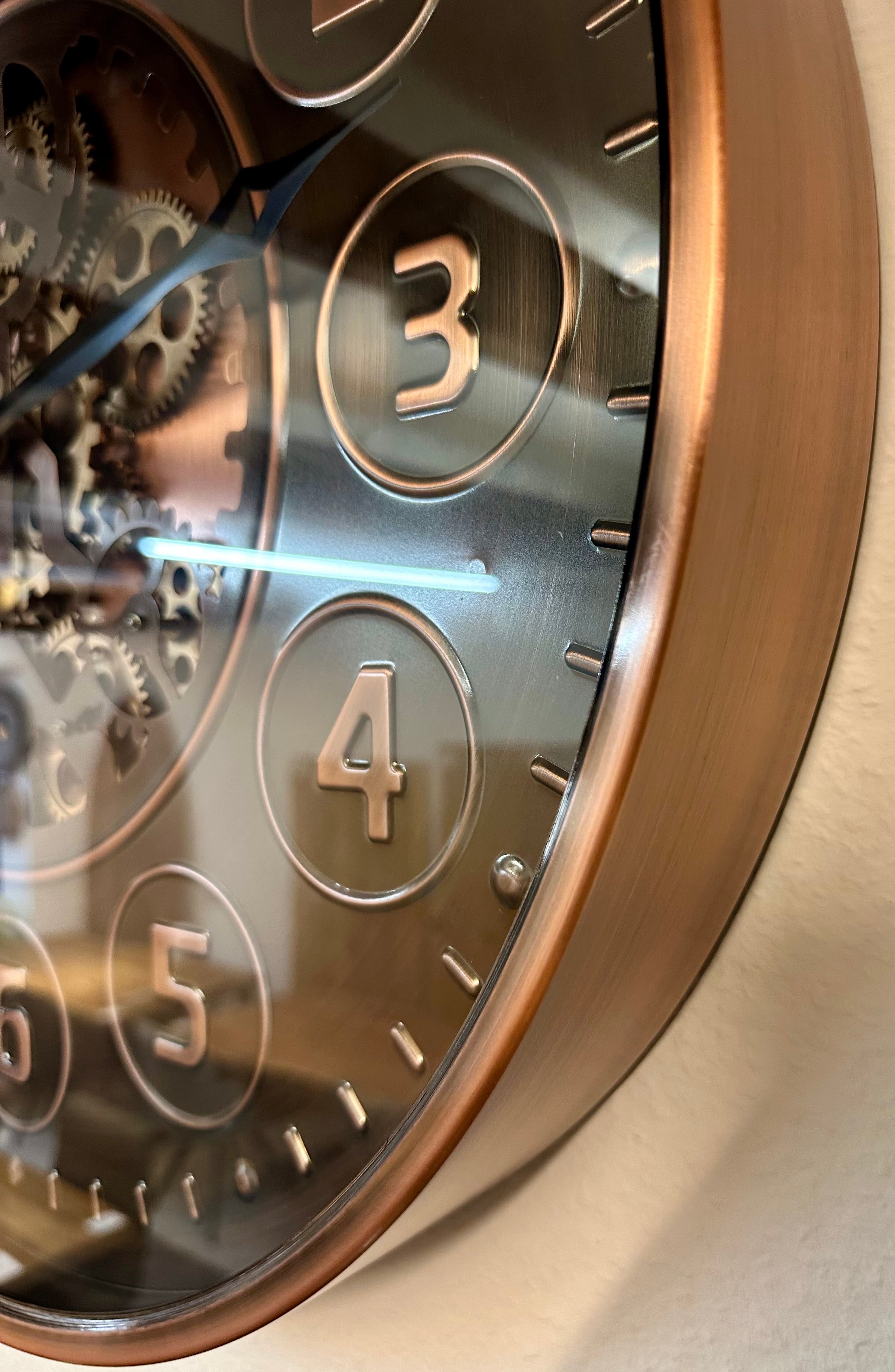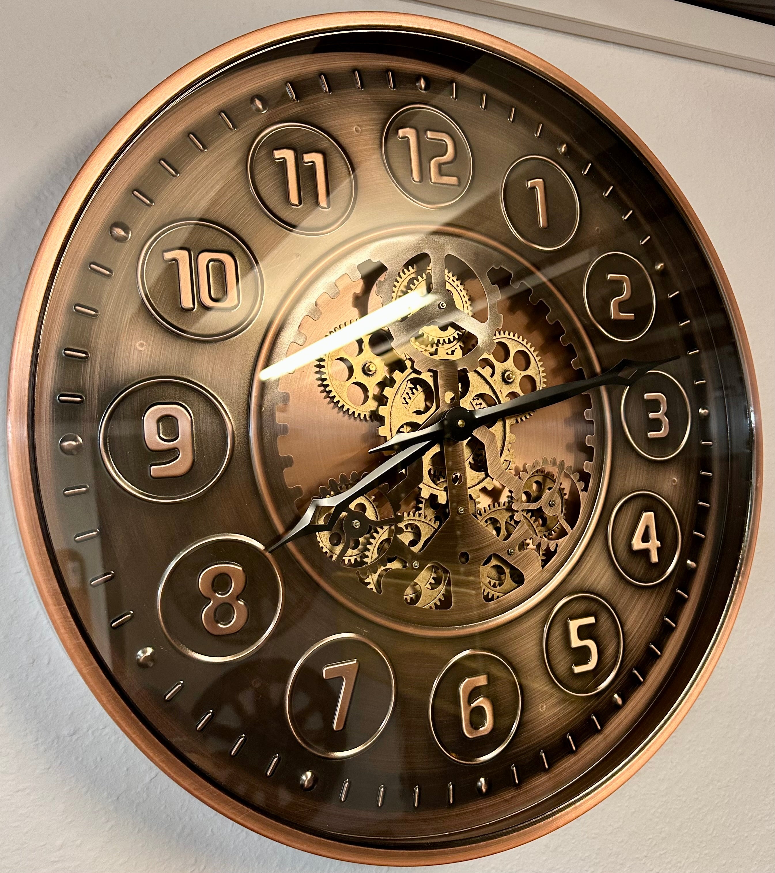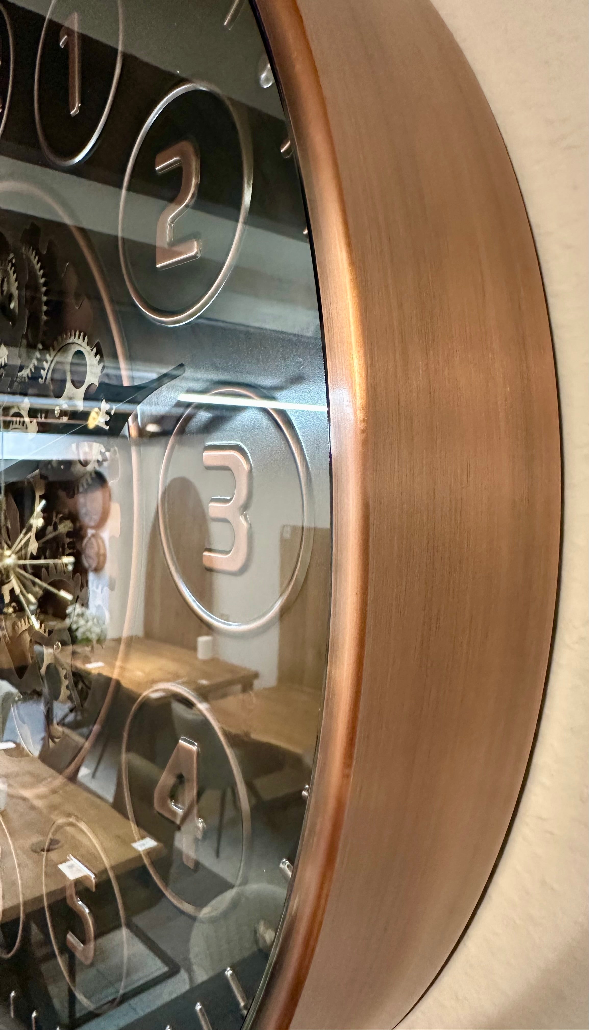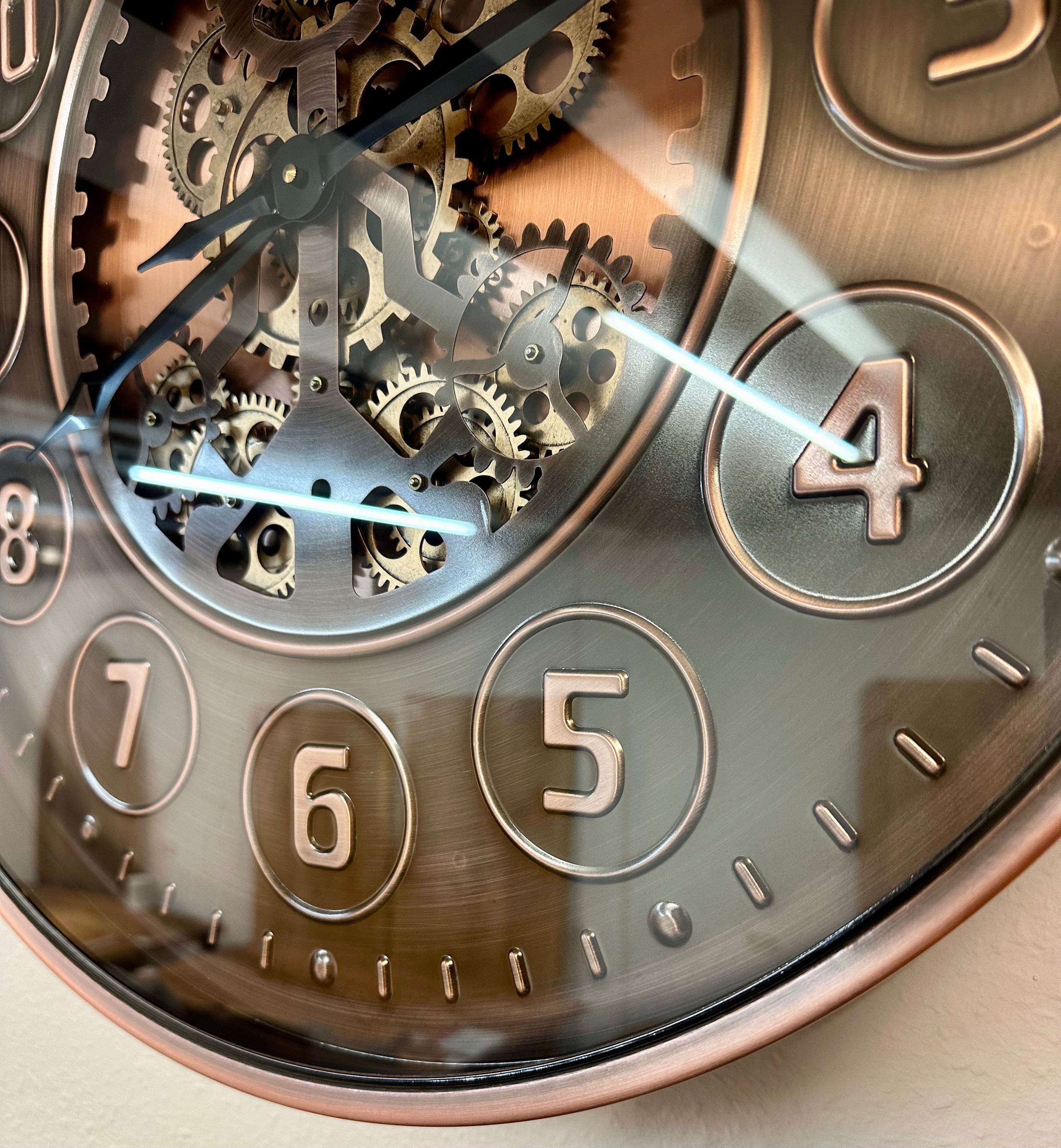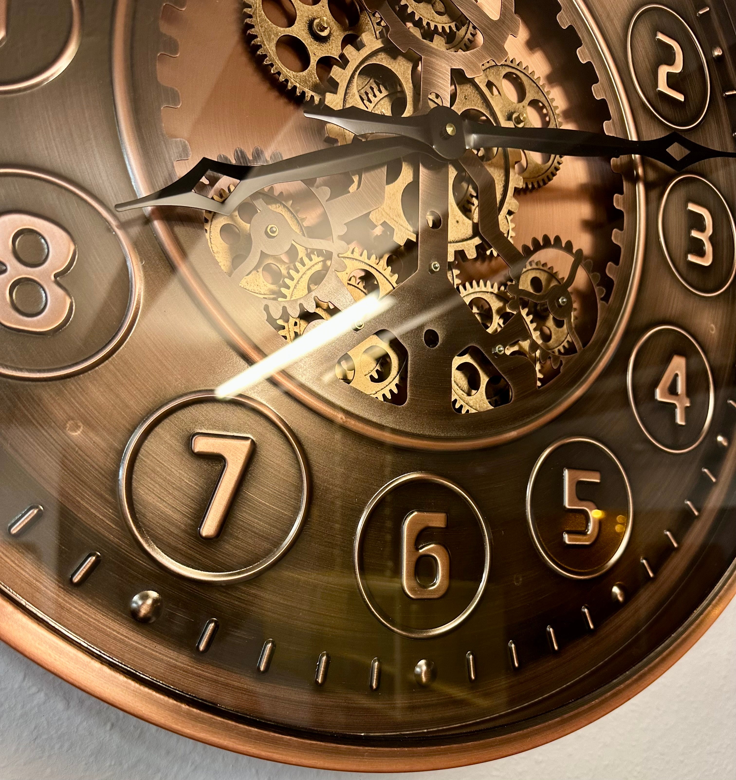 Shelton 60 cm Wanduhr Zahnrad Zählwerk Animation bronze Kupfer