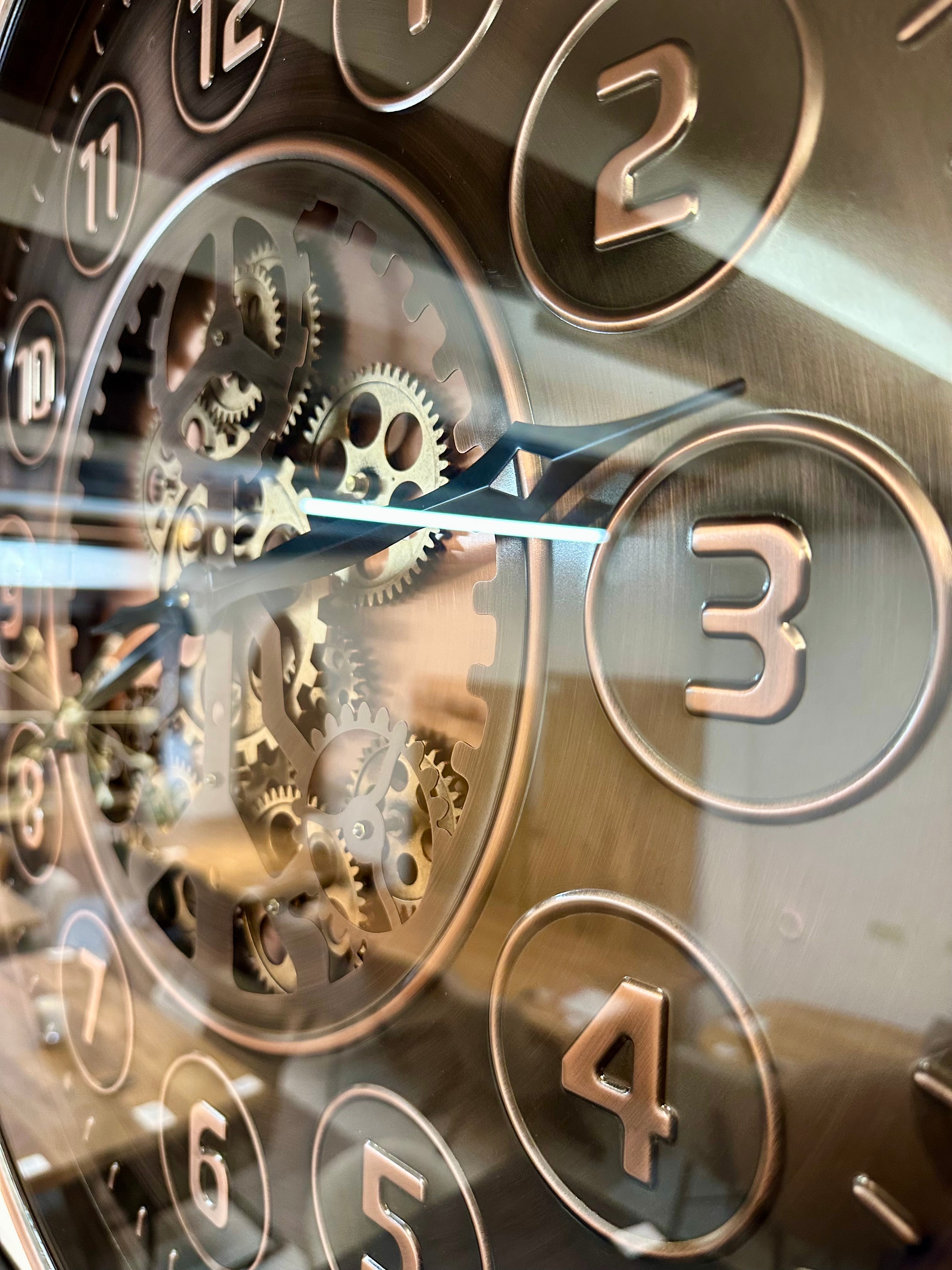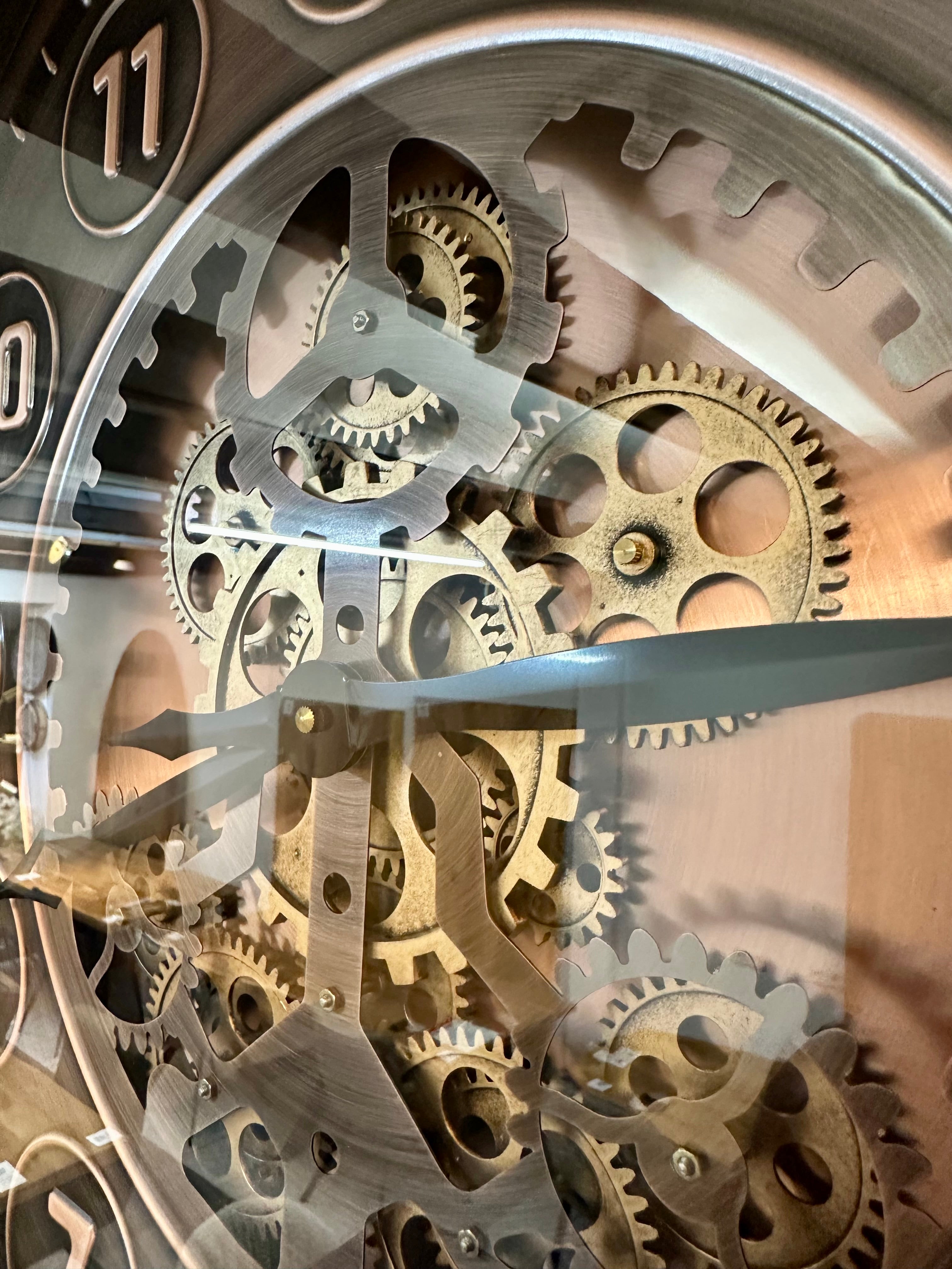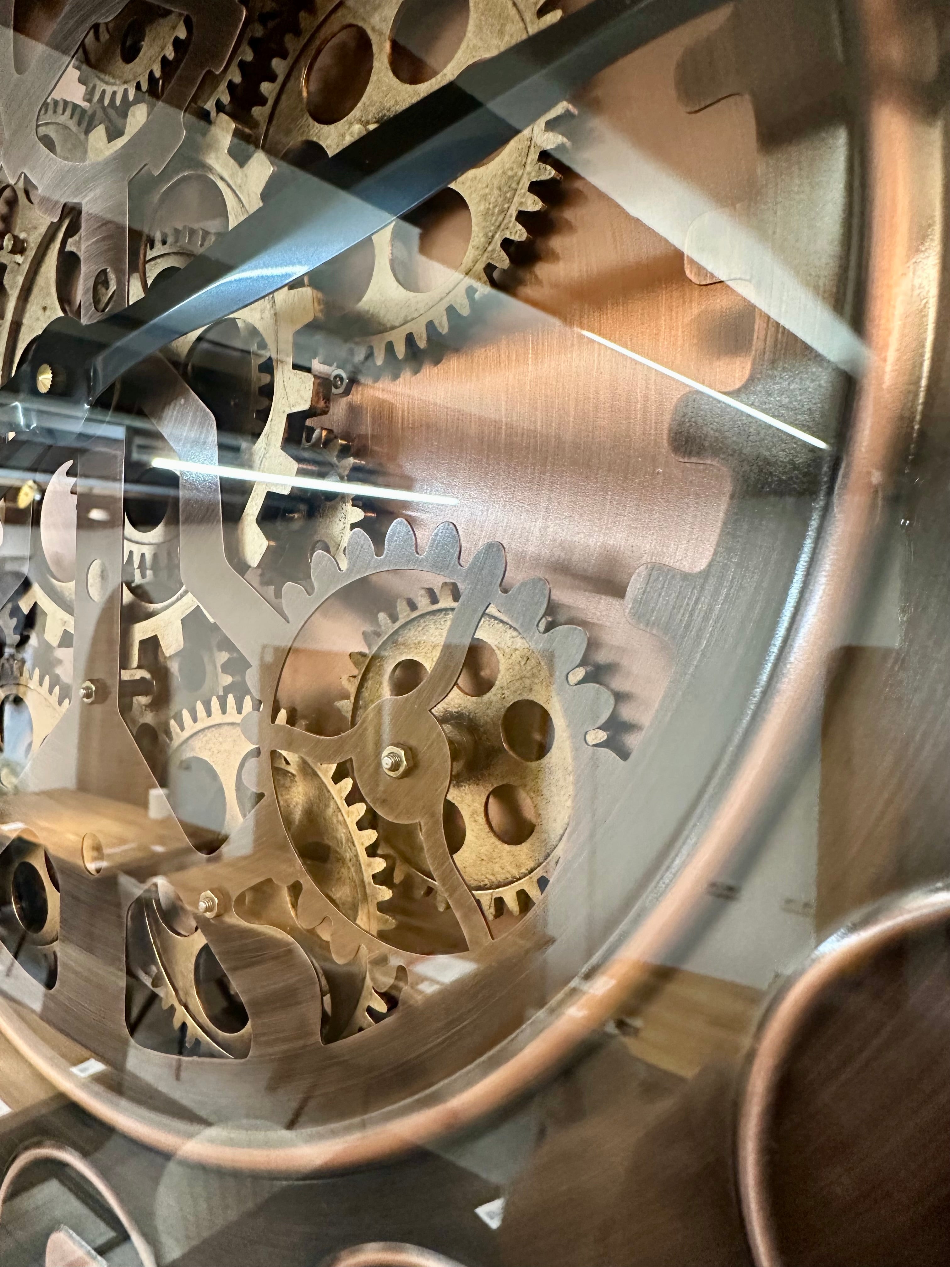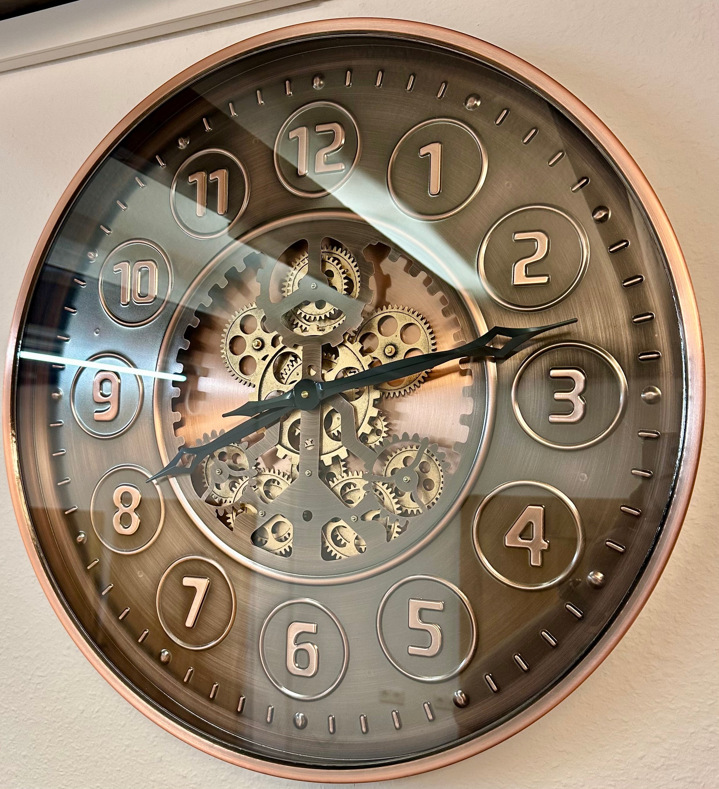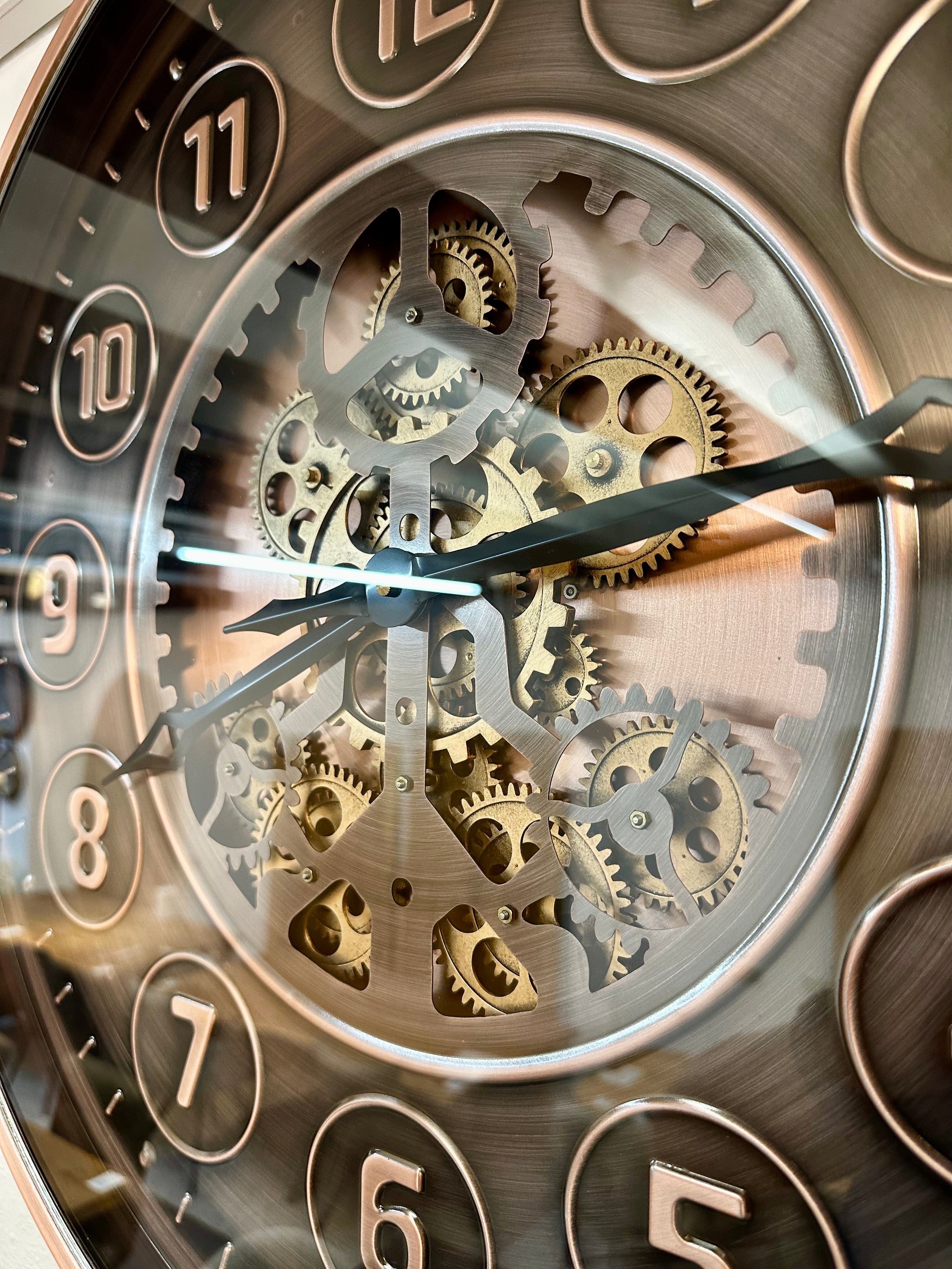 Shelton 60 cm Wanduhr Zahnrad Zählwerk Animation bronze Kupfer