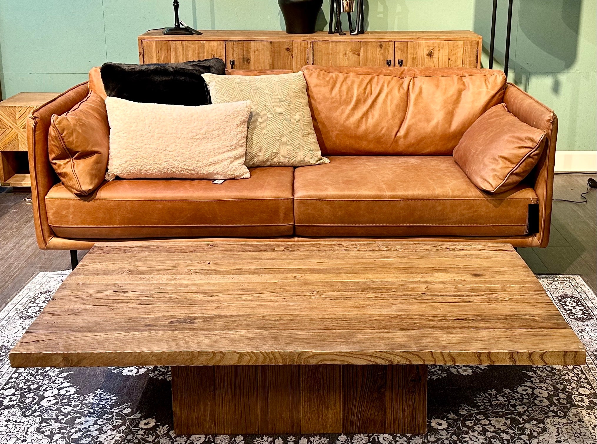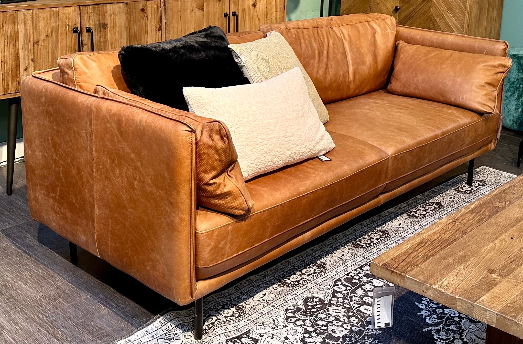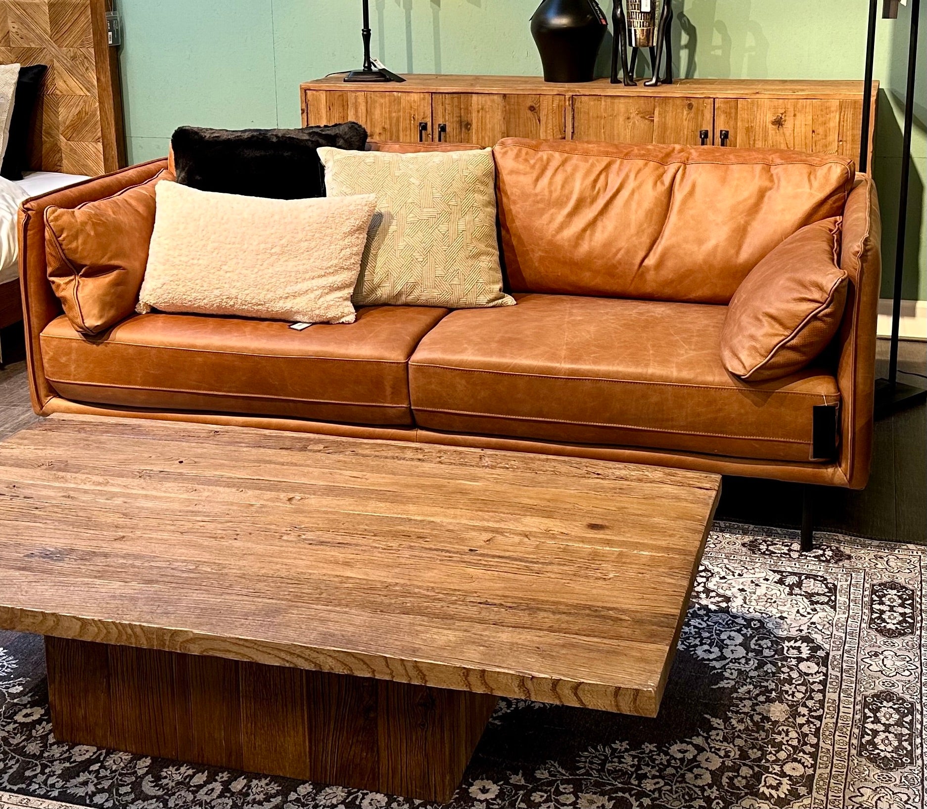 - 2 Große und 2 kleine Kissen, ebenfalls mit gleichem Leder bezogen