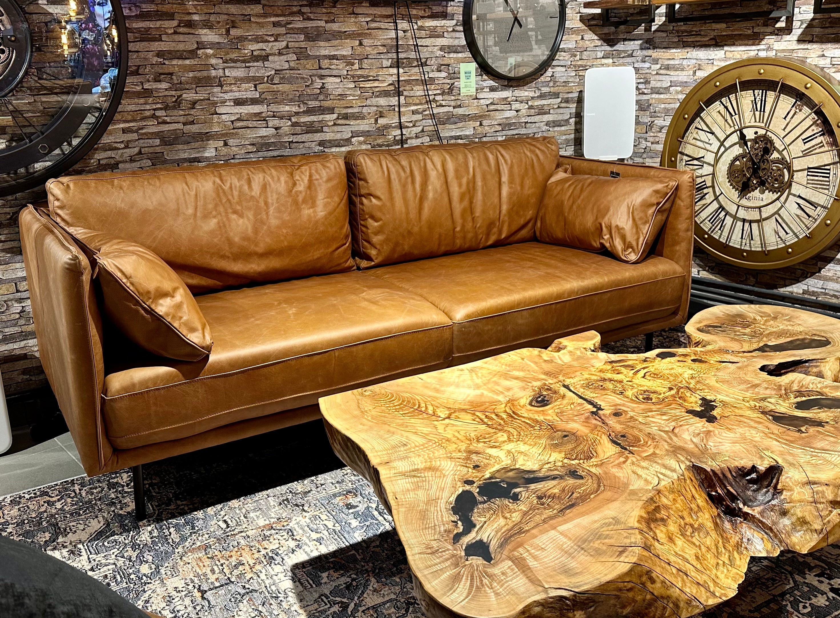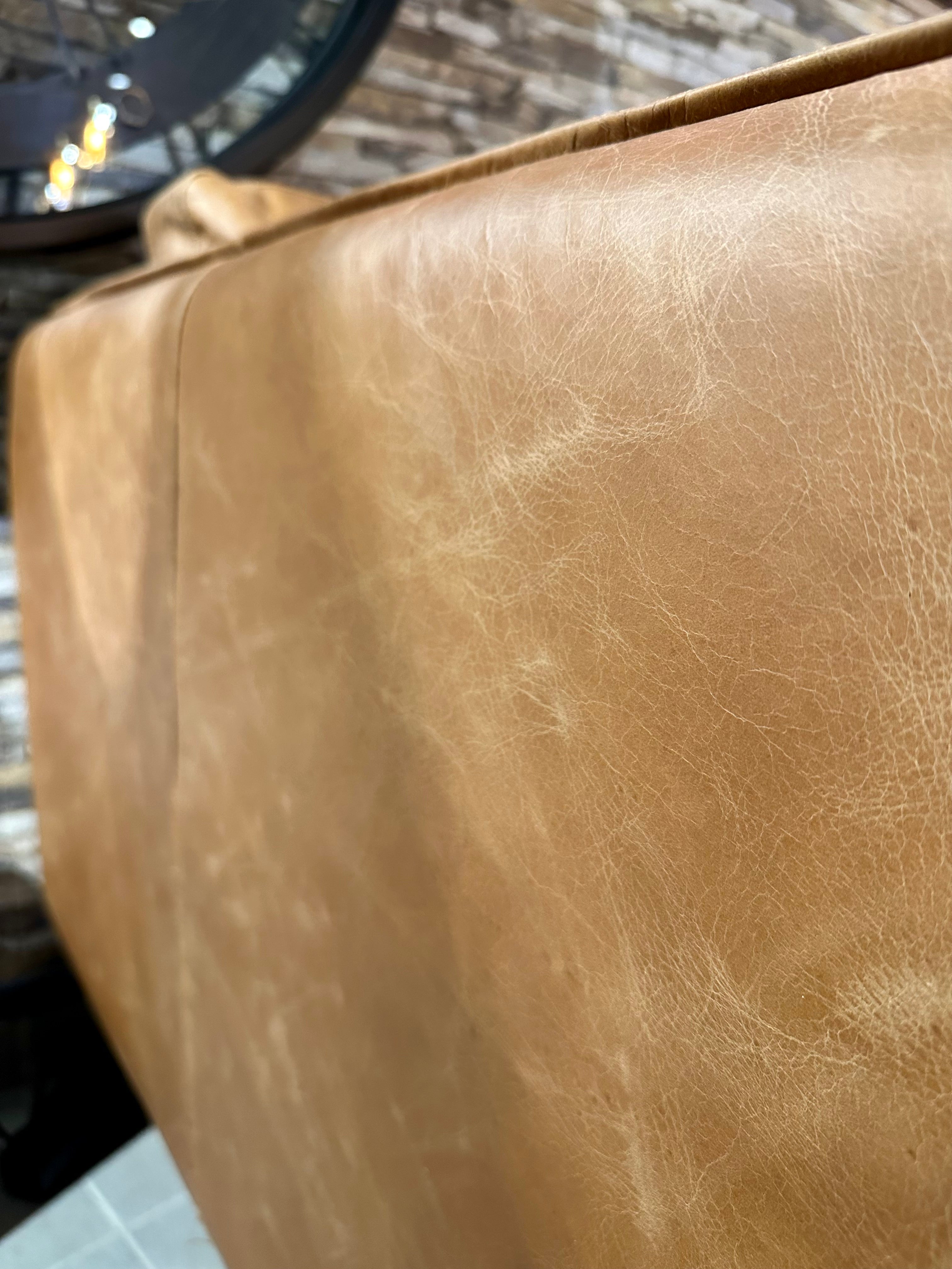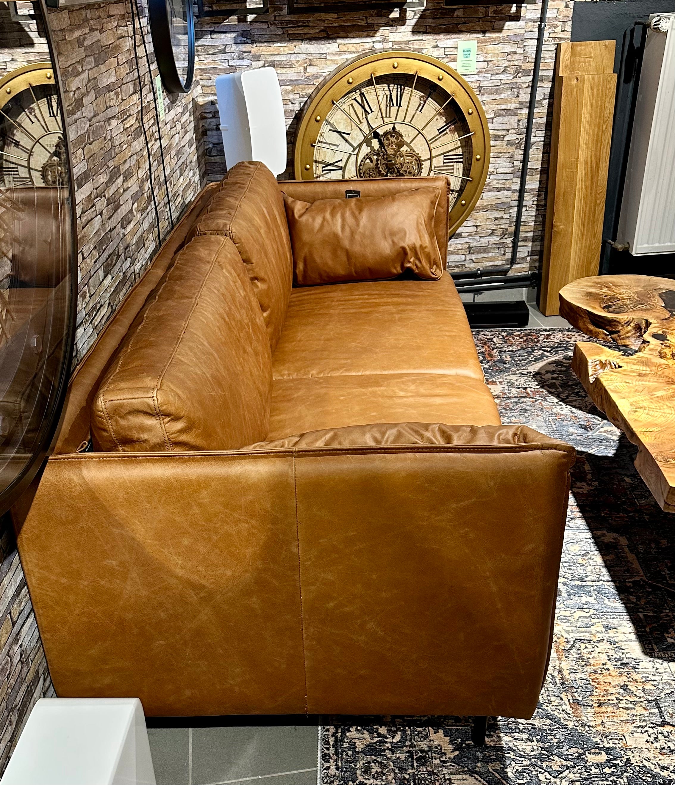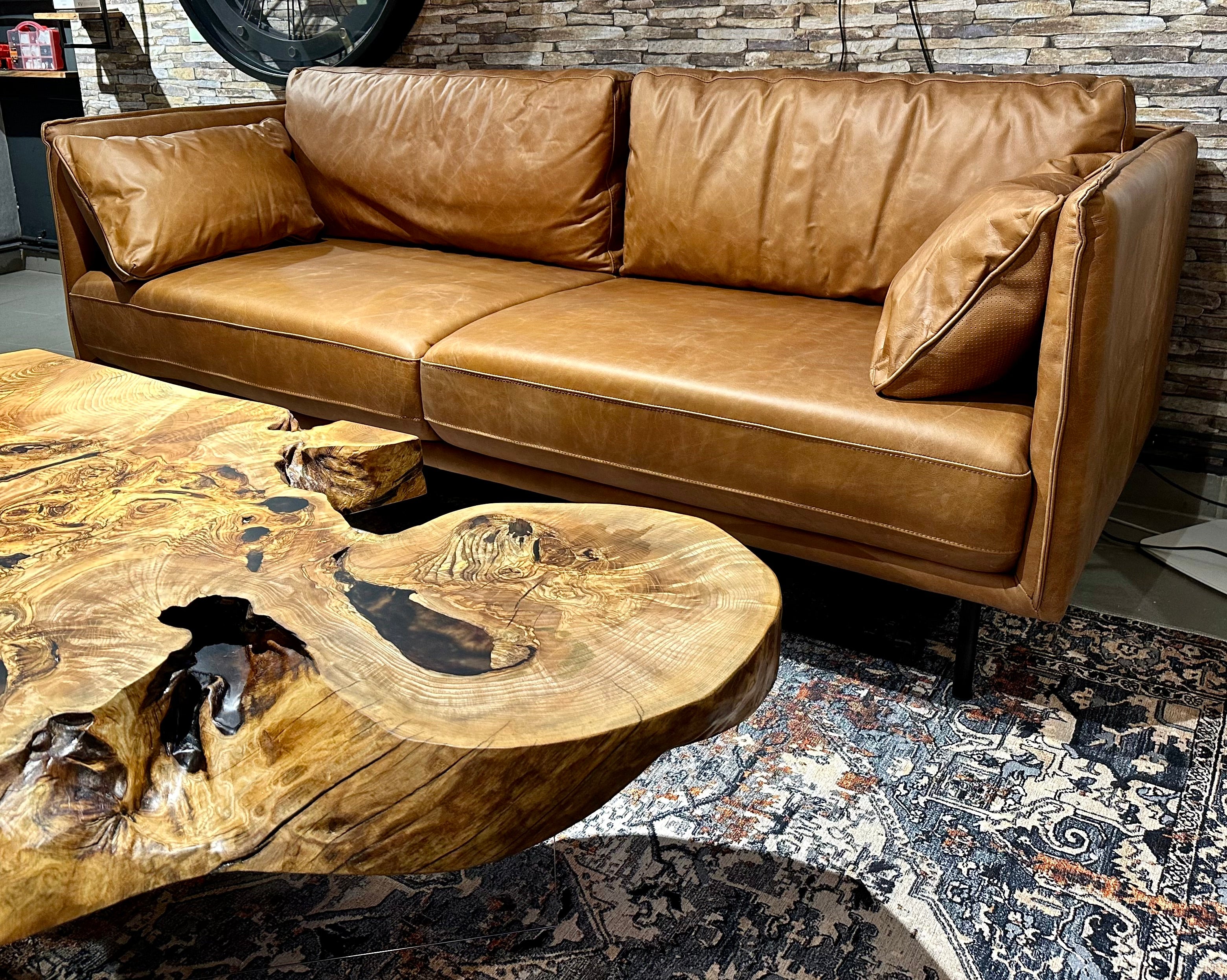 Eine tolle und sehr schöne Echtleder Couch im Vintage Look und aus feinstem Kamelleder in der Farbe Cognac braun.