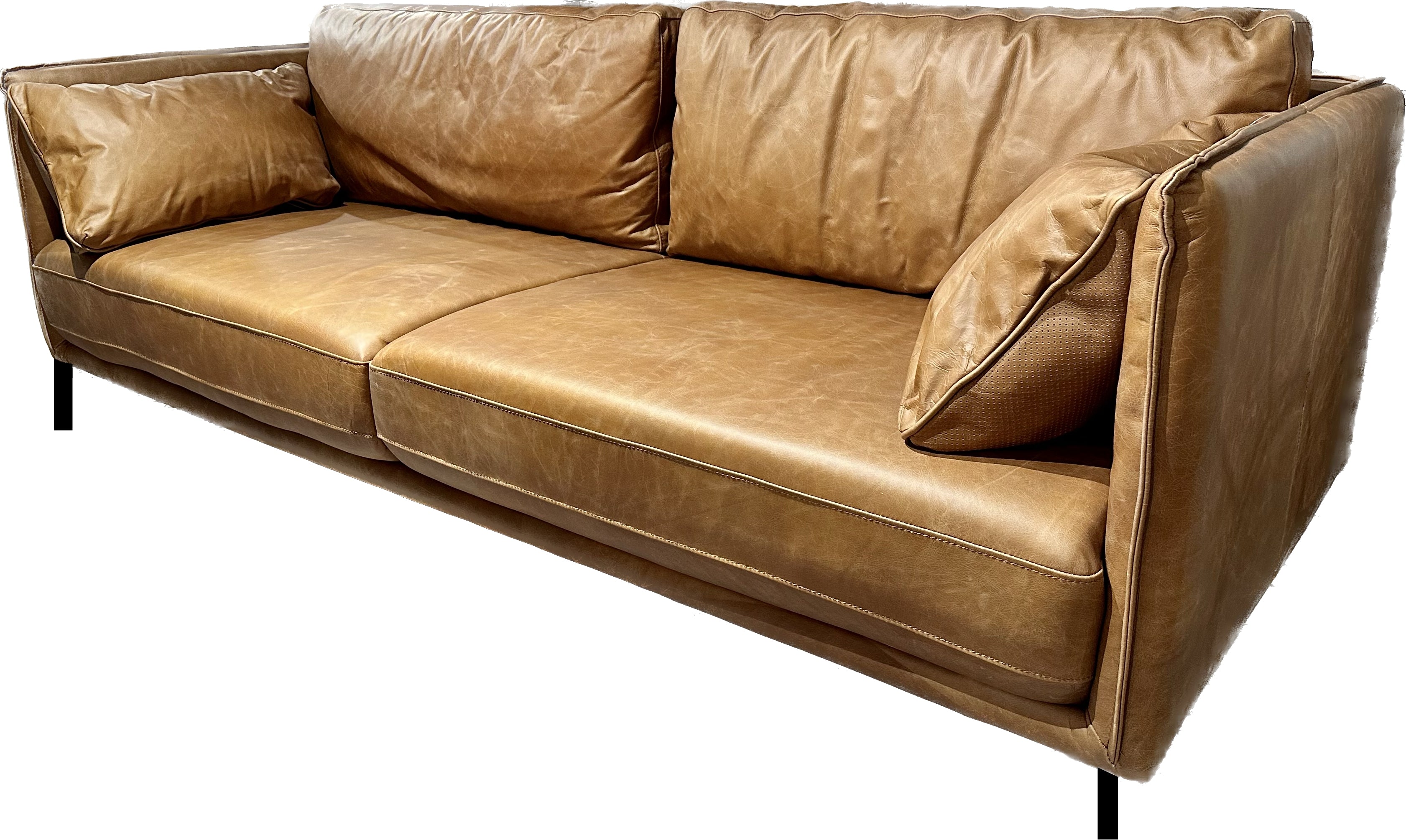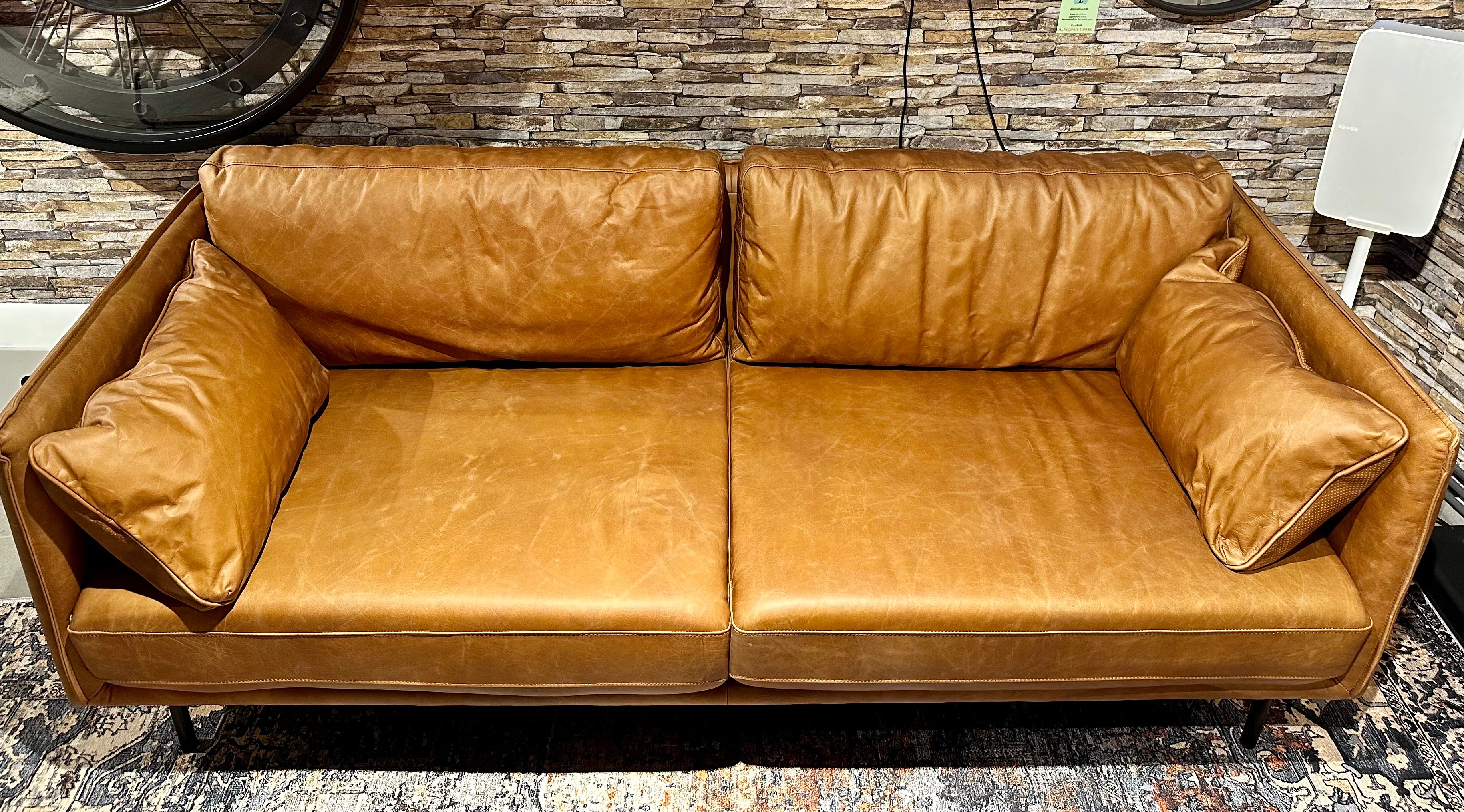 Vintage Sofa Keno Kamelleder 2,5 Sitzer Couch Echt Leder Cognac braun
